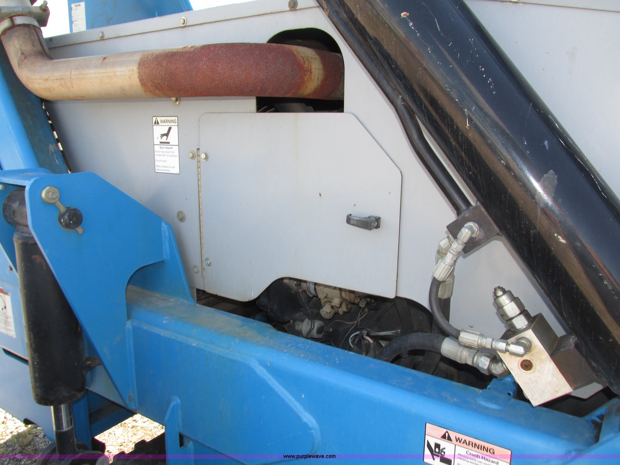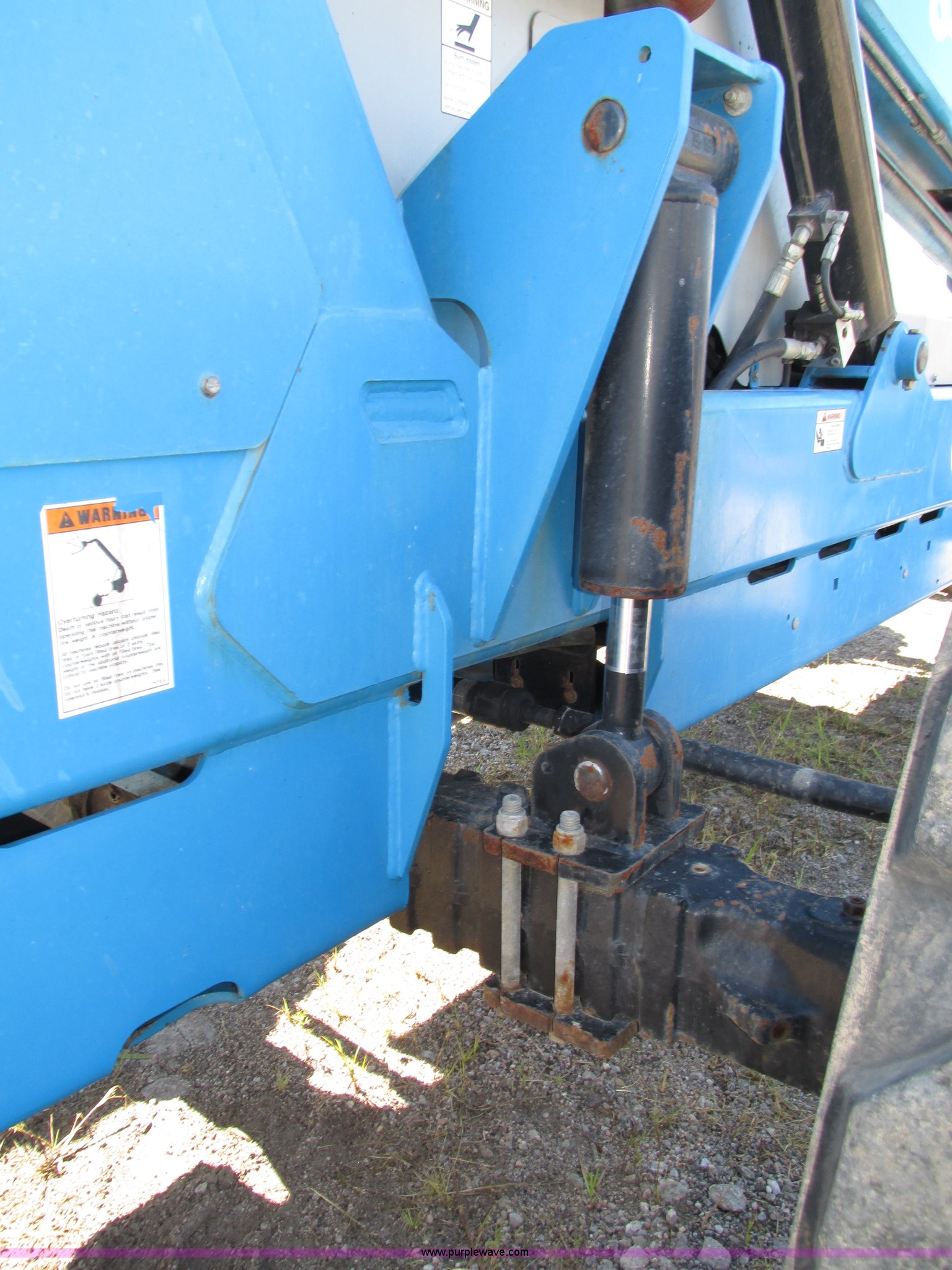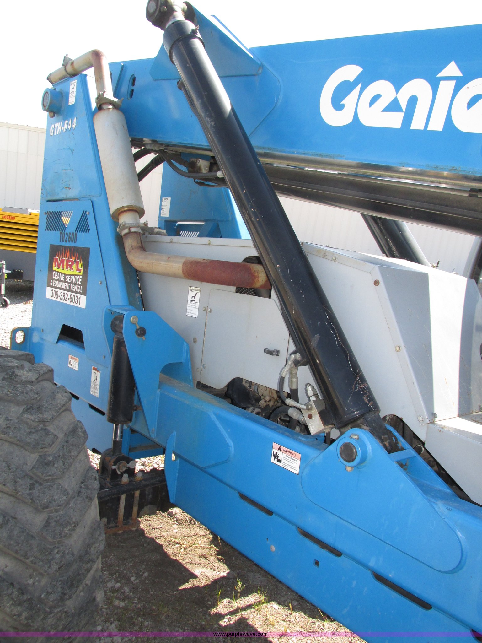 Purple Wave is selling a used Telehandler in Nebraska. This item is a 2007 Genie GTH844 telehandler with the following: 1,860 hours on meter, Hours may vary, unit is still in use, John Deere 4045TF270B 4.5L four cylinder turbo diesel engine, Block heater, Powershift transmission, 3F-3R gears, Differential lock, Four wheel drive, Crab steer, Circle steer, ROPS, 8,000 lbs maximum lift capacity, 6,000 lbs maximum lift capacity at 44' lift height, 24' maximum reach, 44' maximum lift height, Three boom sections, 60"L x 4"W forks, 48"W x 45.5"H carriage, 53"L x 2" diameter carriage bar, Auxiliary hydraulics, Hydraulic leveling, Load chart, Parking brake, 13.00-24 front pneumatic tires, 13.00-24 rear fluid filled tires, 22,320 lbs. base operating weight, Right mirror broken, Tires cut, Sidewall damage, Seat torn, Operation and safety manual, Serial GTH0807A11119