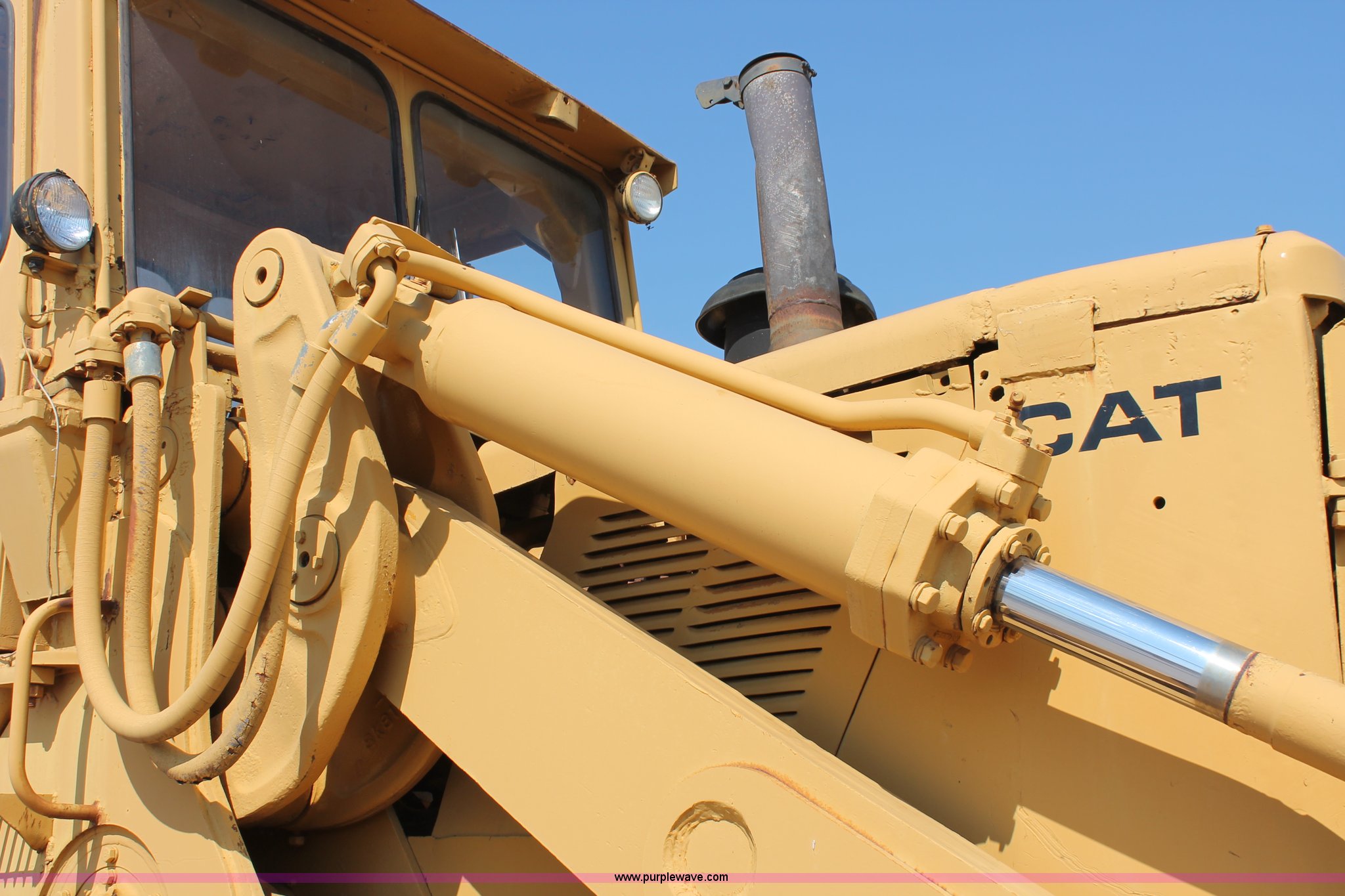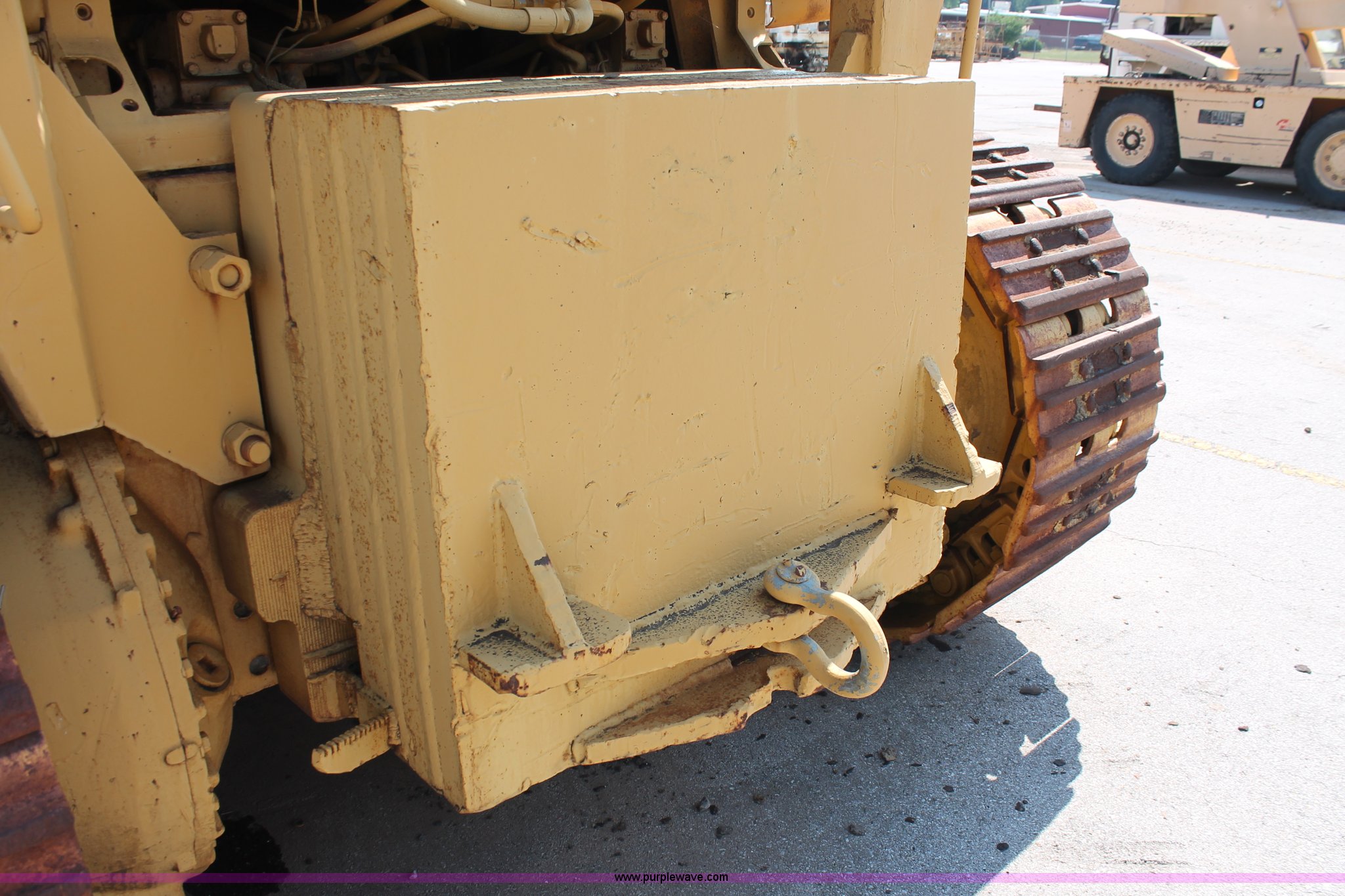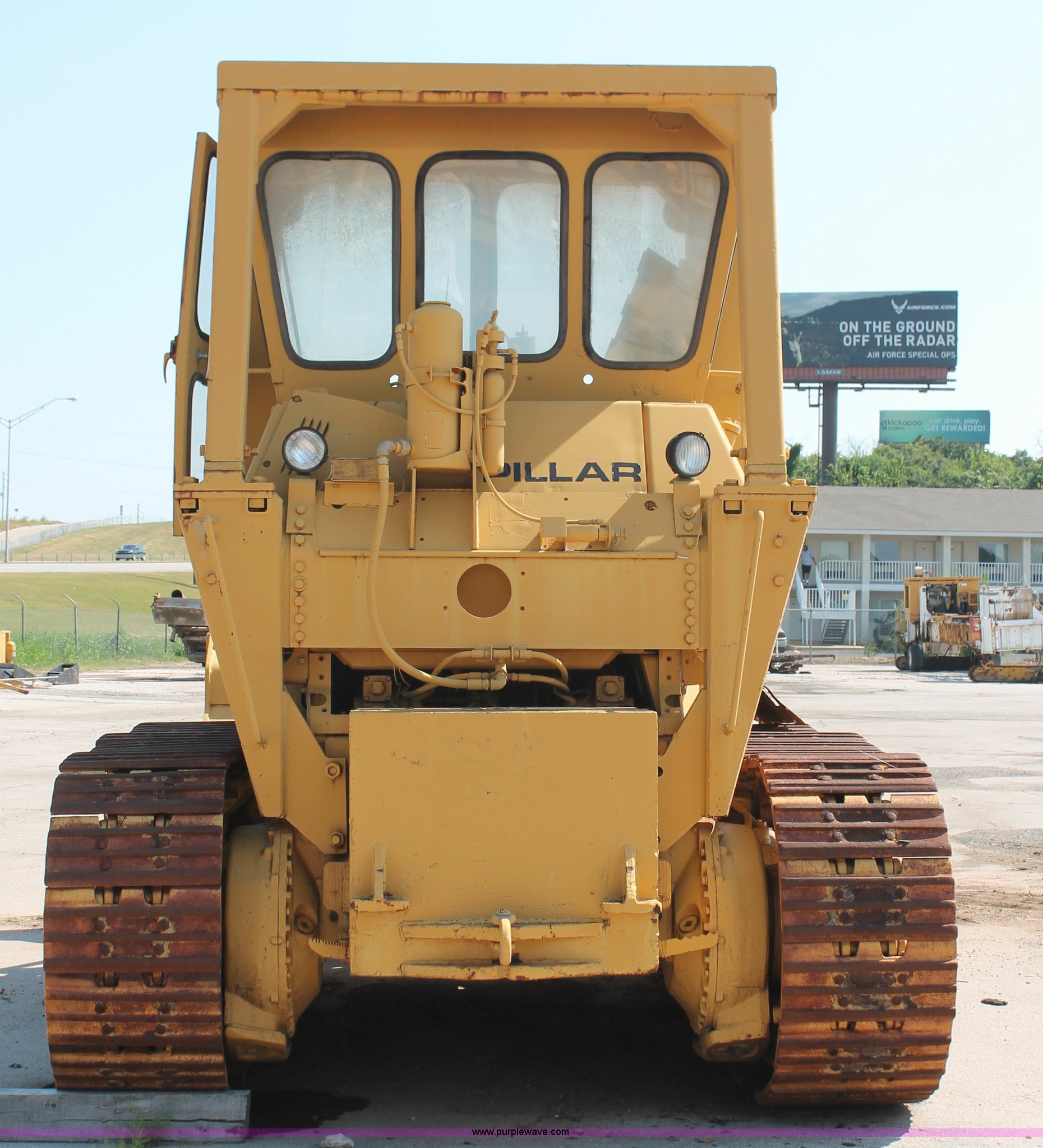 Purple Wave is selling a used Crawler Loader in Oklahoma. This item is a 1978 Caterpillar 983 track loader with the following: Caterpillar D343 six cylinder diesel engine, Serial 52K1338, Powershift transmission, 3F-3R gears, Cab, Two stick loader controls, Front and rear work lights, Front wipers, 118"W x 58"H bucket, (8) bolt-on teeth, Seven bottom rollers, 22"W triple grouser track pads, 69,880 lbs. base operating weight, Unknown running condition, Undiagnosed issues, Cab interior partially disassembled, Serial 38K1572