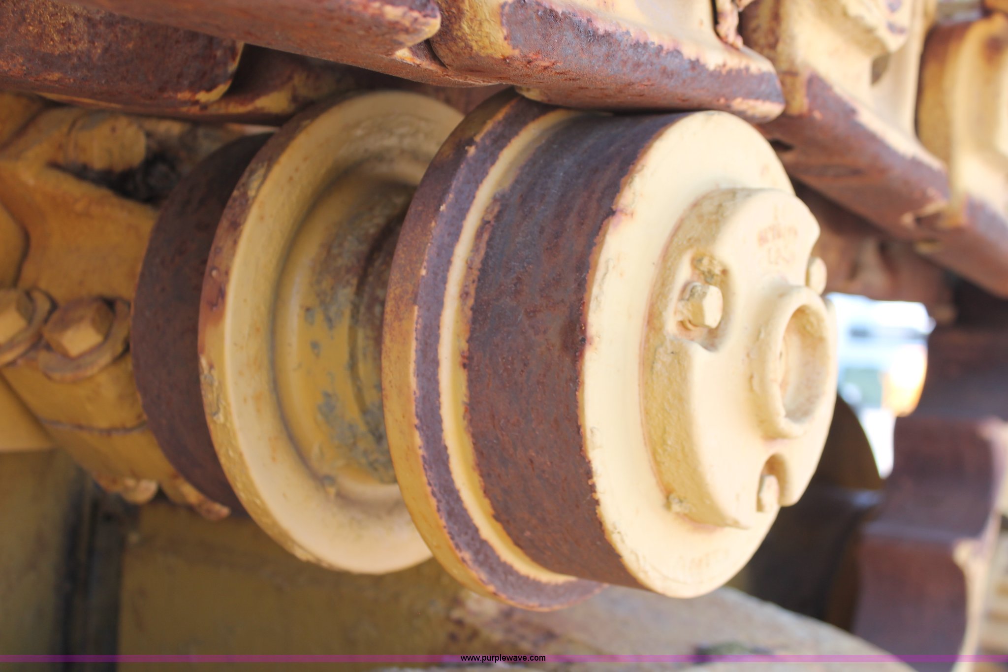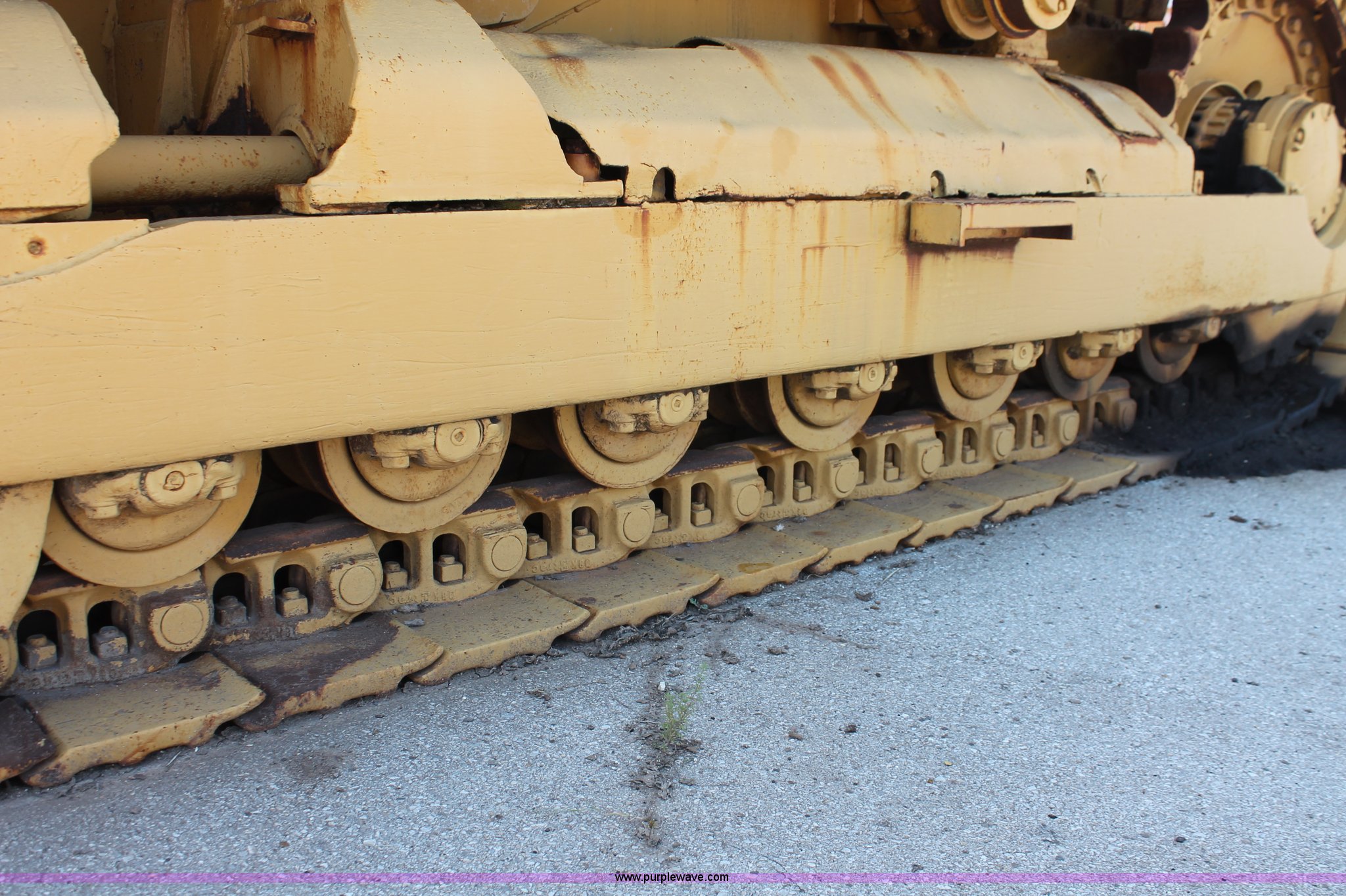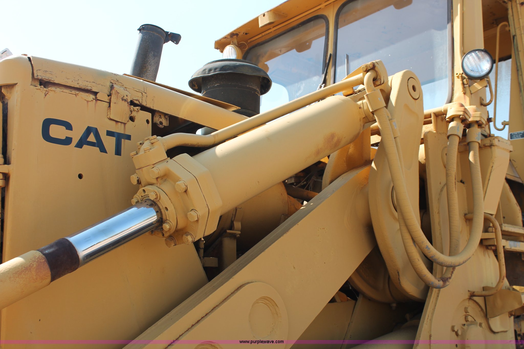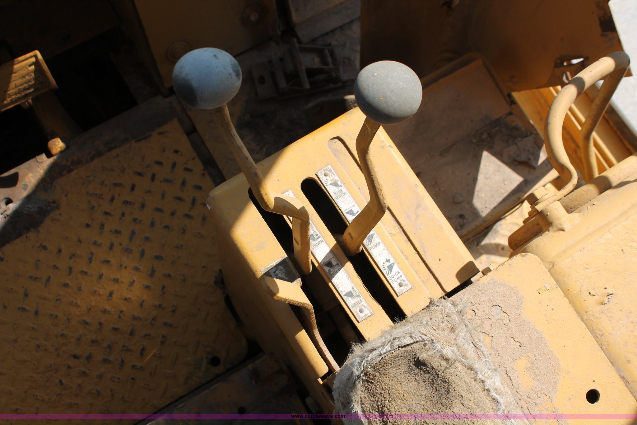 Purple Wave is selling a used Crawler Loader in Oklahoma. This item is a 1978 Caterpillar 983 track loader with the following: Caterpillar D343 six cylinder diesel engine, Serial 52K1338, Powershift transmission, 3F-3R gears, Cab, Two stick loader controls, Front and rear work lights, Front wipers, 118"W x 58"H bucket, (8) bolt-on teeth, Seven bottom rollers, 22"W triple grouser track pads, 69,880 lbs. base operating weight, Unknown running condition, Undiagnosed issues, Cab interior partially disassembled, Serial 38K1572