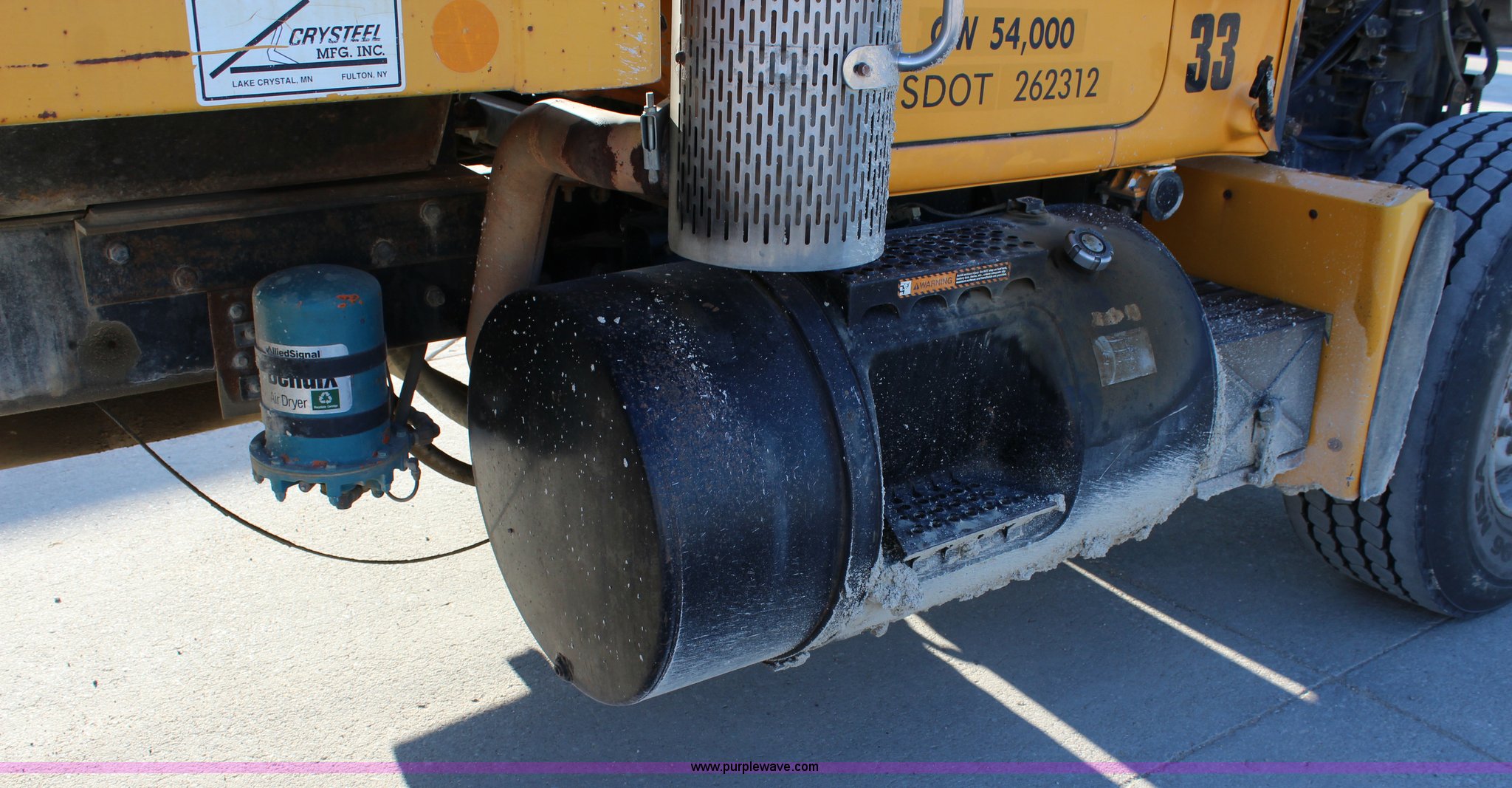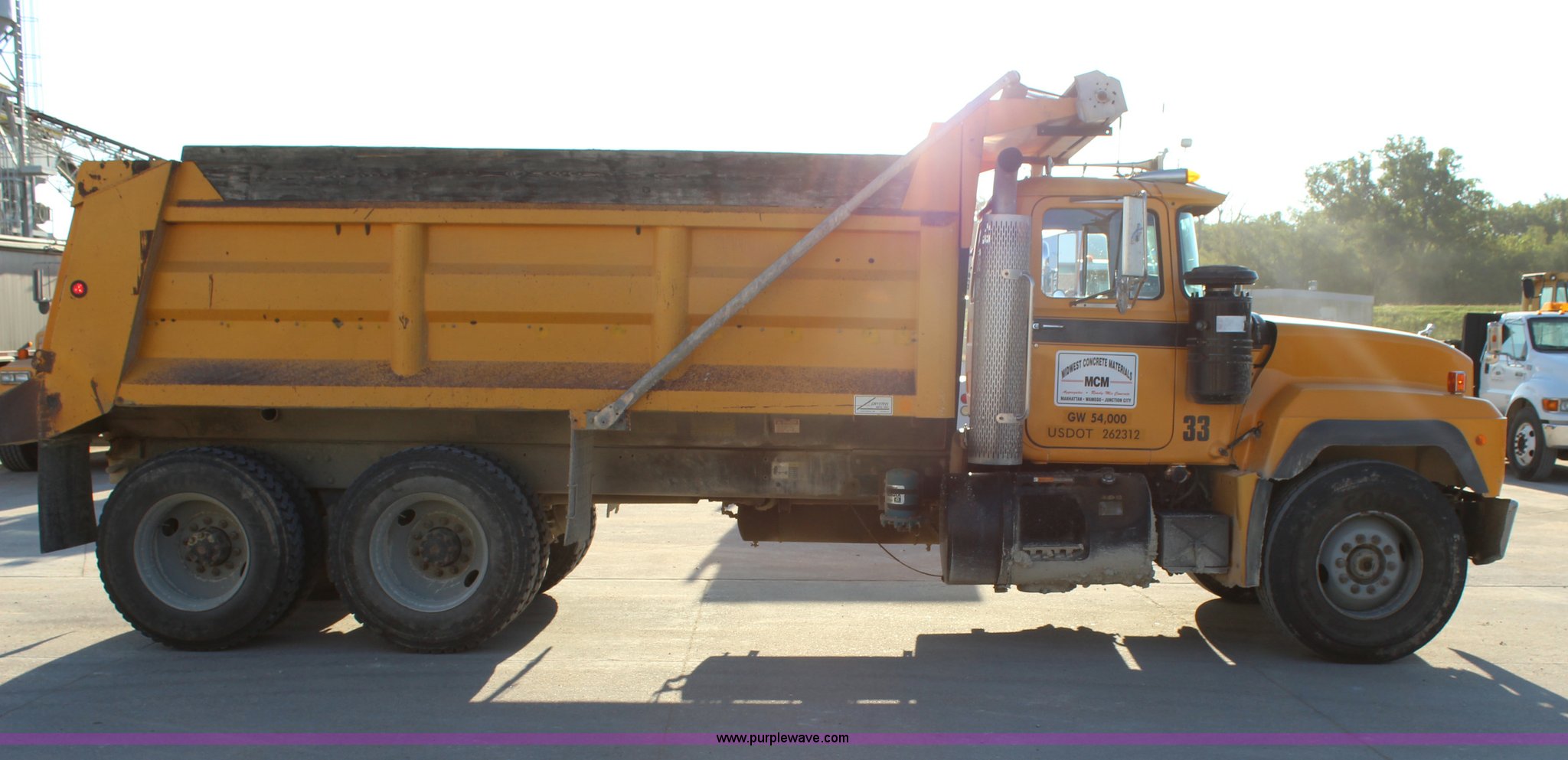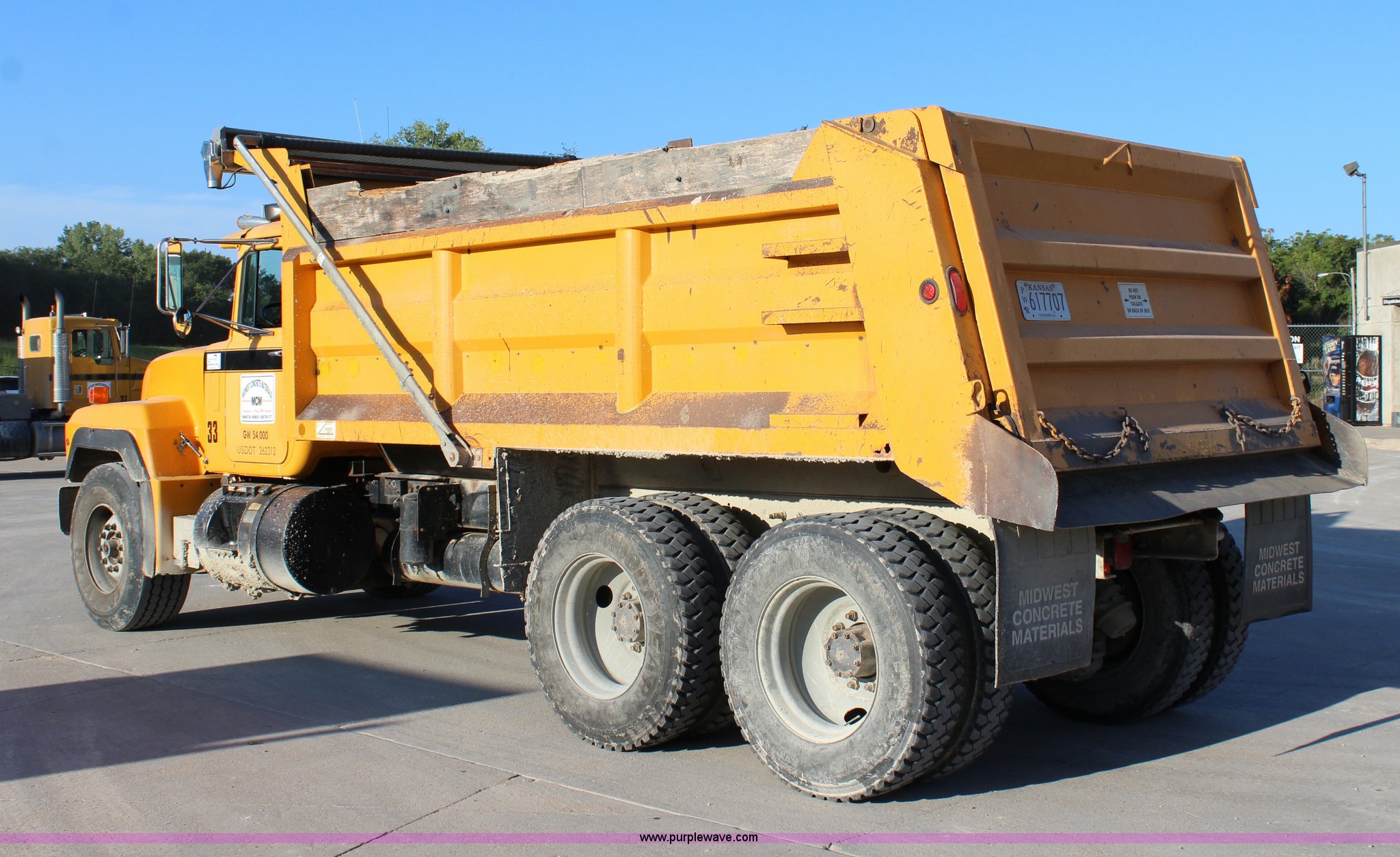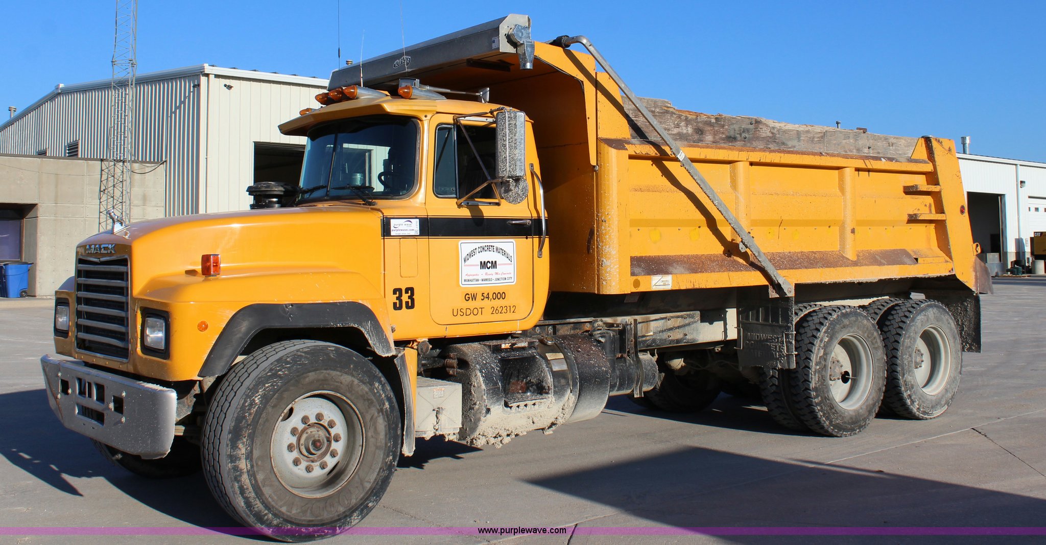Purple Wave is selling a used Construction Dump Truck in Kansas. This item is a 1993 Mack RD690S dump truck with the following: 395,259 miles on odometer, Miles and hours may vary, vehicle is still in use, 31,726 hours on meter, Mack E7 12.0L L6 diesel engine, 300 HP, Mack T2070 seven speed manual transmission, Inter-axle differential lock, AC and heat, AM/FM/cassette, Air suspension seat, PTO, Crysteel dump bed, 16'L x 96"W x 41"H, 12" side board height, Bed liner, Roll-over tarp, Single ram, Air operated end gate, Dual fuel tanks, 5:73 gear ratio, Spring suspension, Air brakes, 425/65R22.5 front tires, 11R24.5 rear tires, Contents are not included, Unit# 33