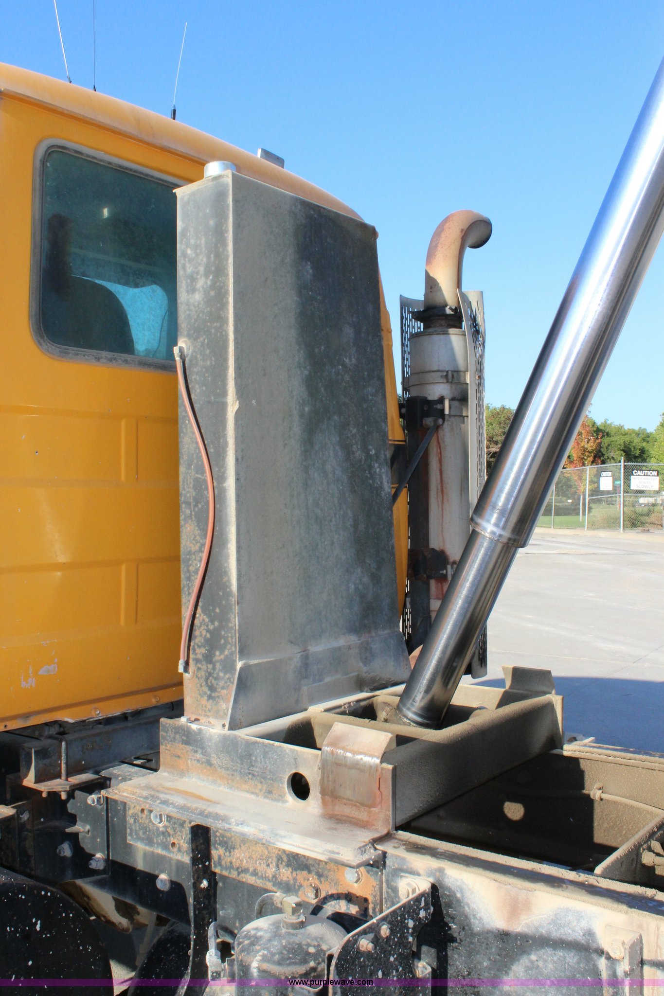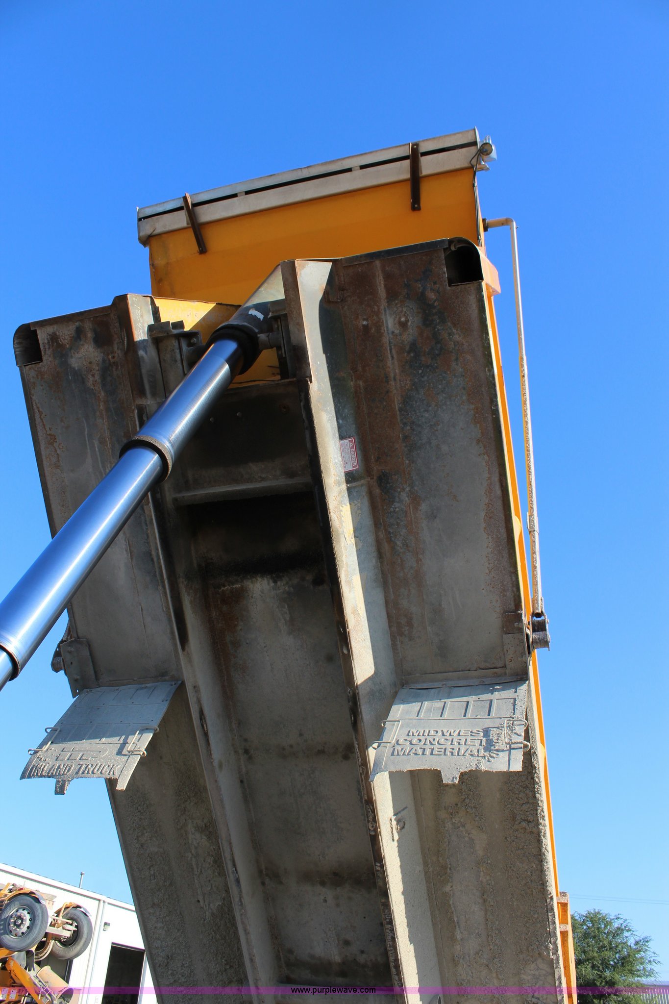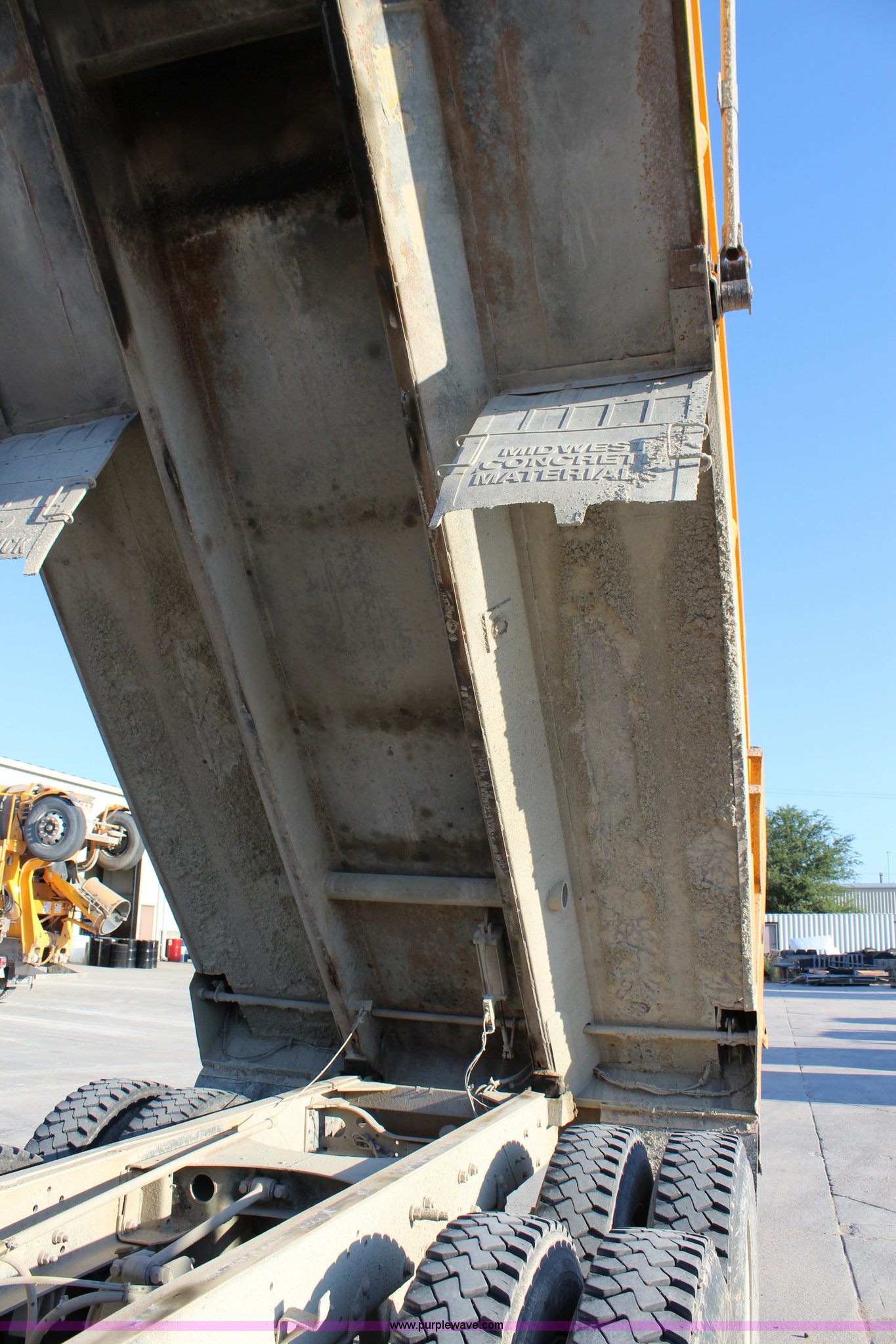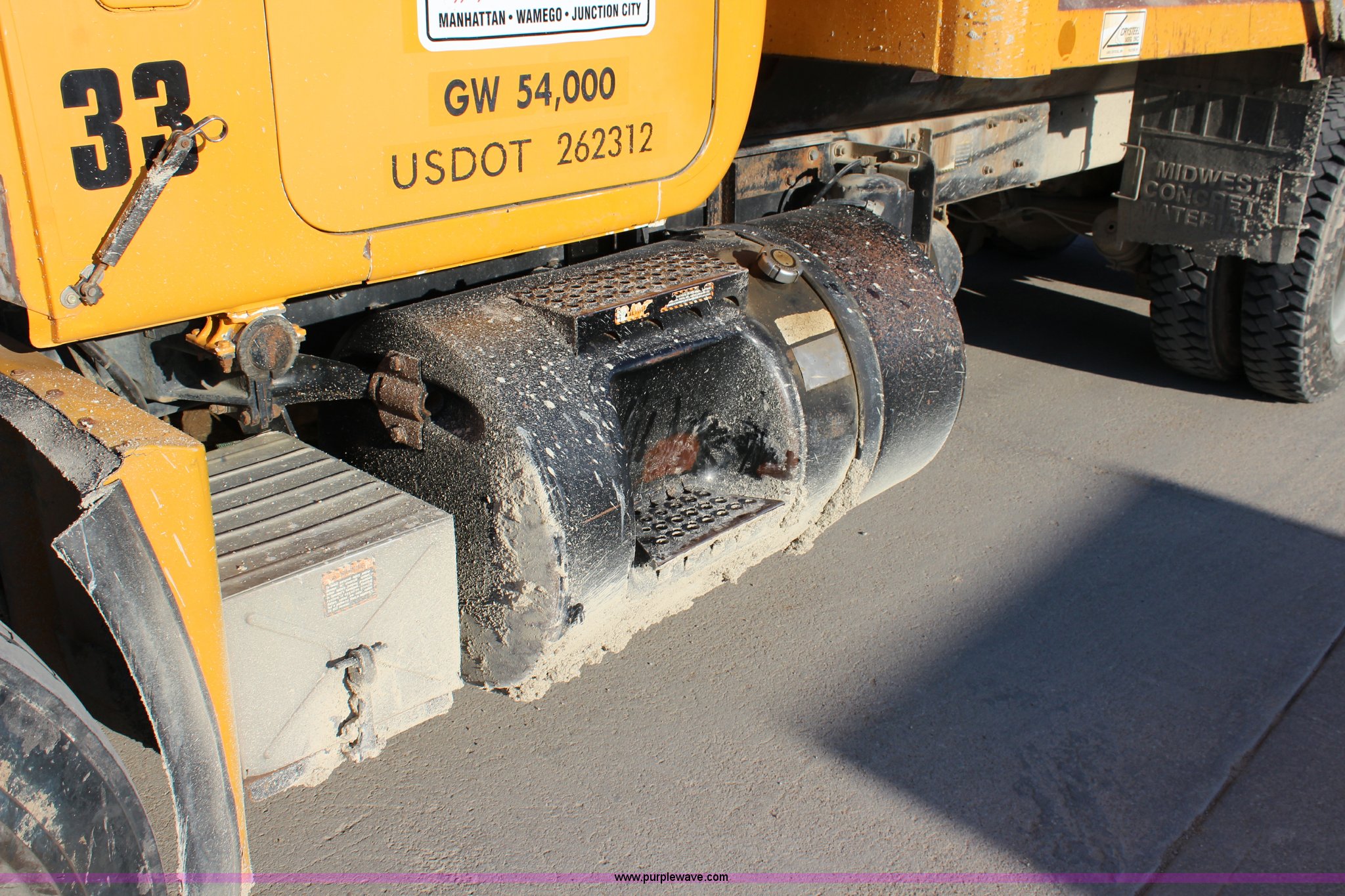 1993 Mack RD690S dump truck. 395,259 miles on odometer, Miles and hours may vary, vehicle is still in use, 31,726 hours on meter, Mack E7 12.0L L6 diesel engine 300 HP, Mack T2070 seven speed manual transmission, Inter-axle differential lock, AC and heat, AM/FM/cassette, Air suspension seat, PTO, Crysteel dump bed 16'L x 96"W x 41"H, 12" side board height, Bed liner, Roll-over tarp, Single ram, Air operated end gate, Dual fuel tanks, 5:73 gear ratio, Spring suspension, Air brakes, 425/65R22.5 front tires, 11R24.5 rear tires, Contents are not included, Unit# 33. 2M2P264Y6PC012874. Midwest Concrete Materials. 701 S. 4th Street. Manhattan, KS 66502
