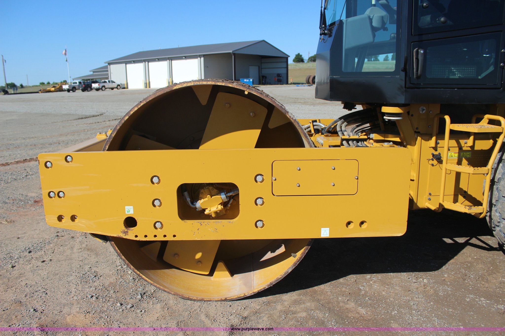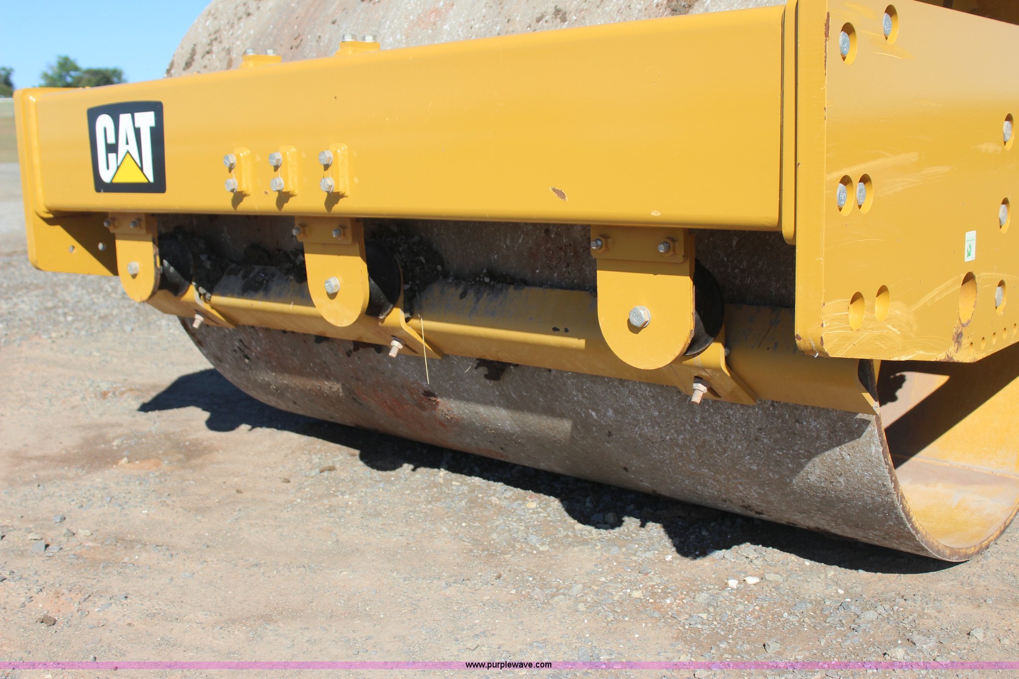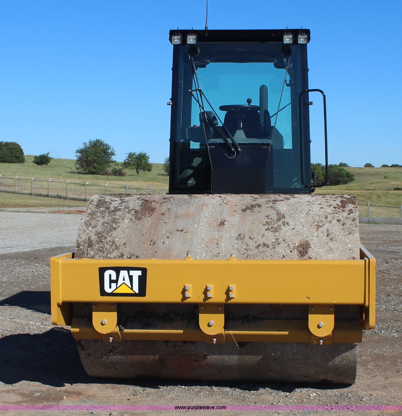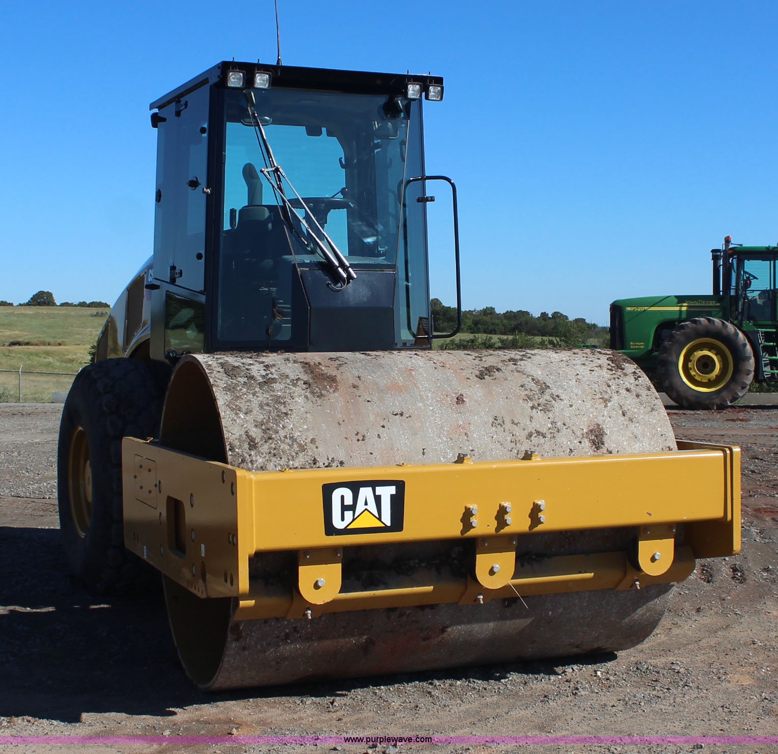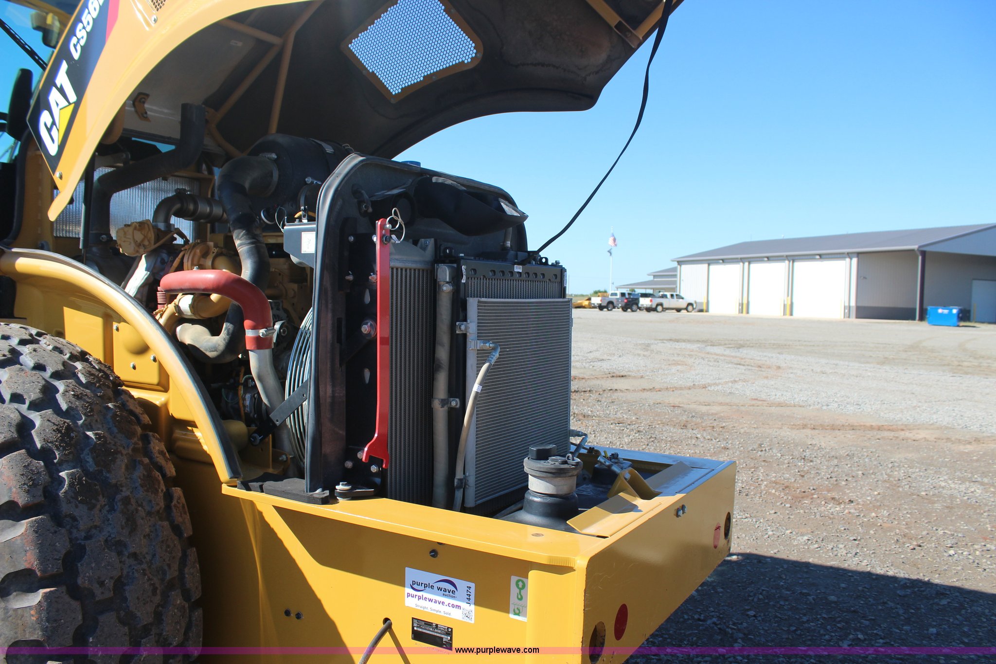 Purple Wave is selling a used Single Drum Roller Compactor in Oklahoma. This item is a 2013 Caterpillar CS56B single drum roller with the following: 917 hours on meter, Caterpillar C4.4 turbo diesel engine, Serial C7N08549, Hydrostatic transmission, Enclosed cab, ROPS, AC and heat, Tilt, Air suspension seat, Work lights, 84"W x 60" diameter smooth drum, Two speed vibratory system, 23.1 x 26 tires, Serial CATCS56BJL8H00527