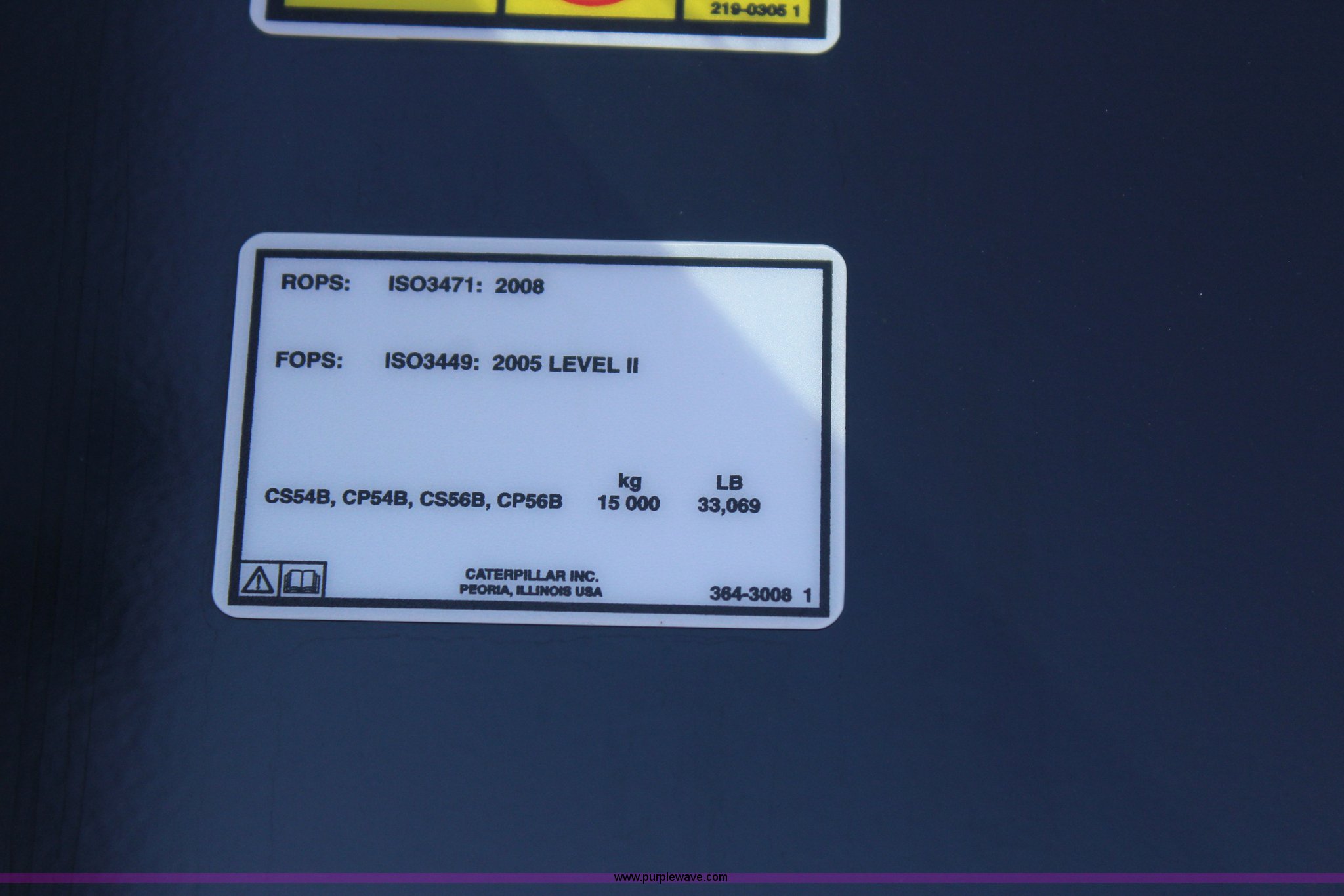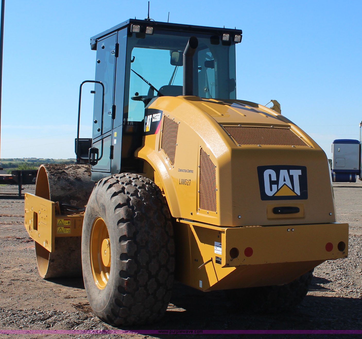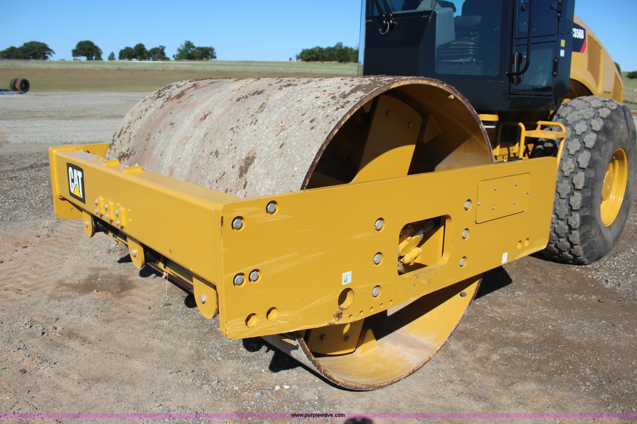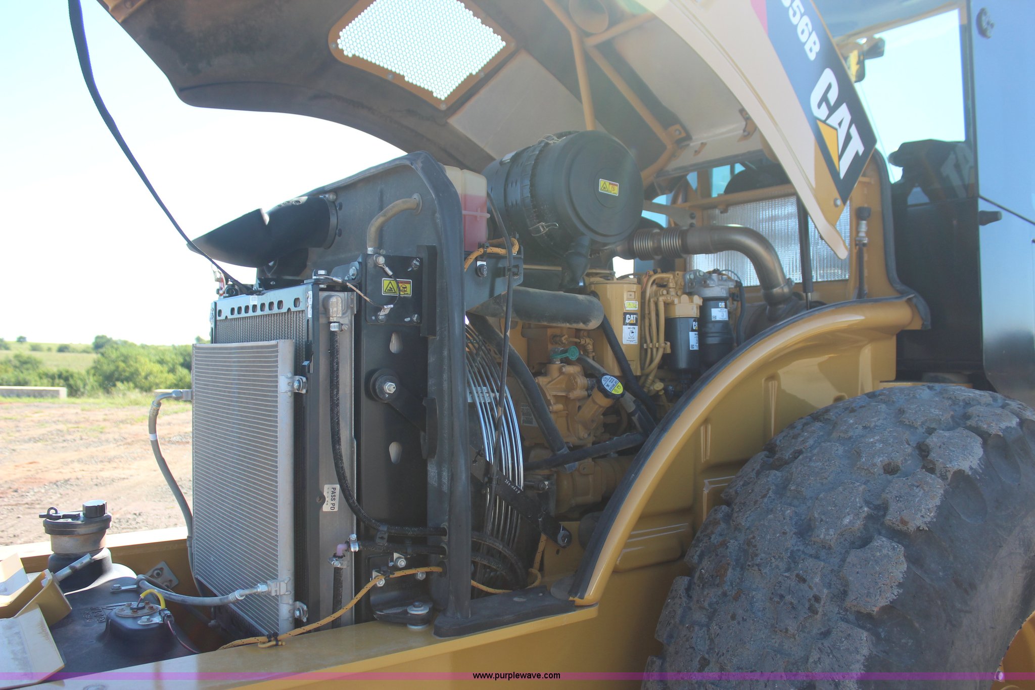 Purple Wave is selling a used Single Drum Roller Compactor in Oklahoma. This item is a 2013 Caterpillar CS56B single drum roller with the following: 917 hours on meter, Caterpillar C4.4 turbo diesel engine, Serial C7N08549, Hydrostatic transmission, Enclosed cab, ROPS, AC and heat, Tilt, Air suspension seat, Work lights, 84"W x 60" diameter smooth drum, Two speed vibratory system, 23.1 x 26 tires, Serial CATCS56BJL8H00527