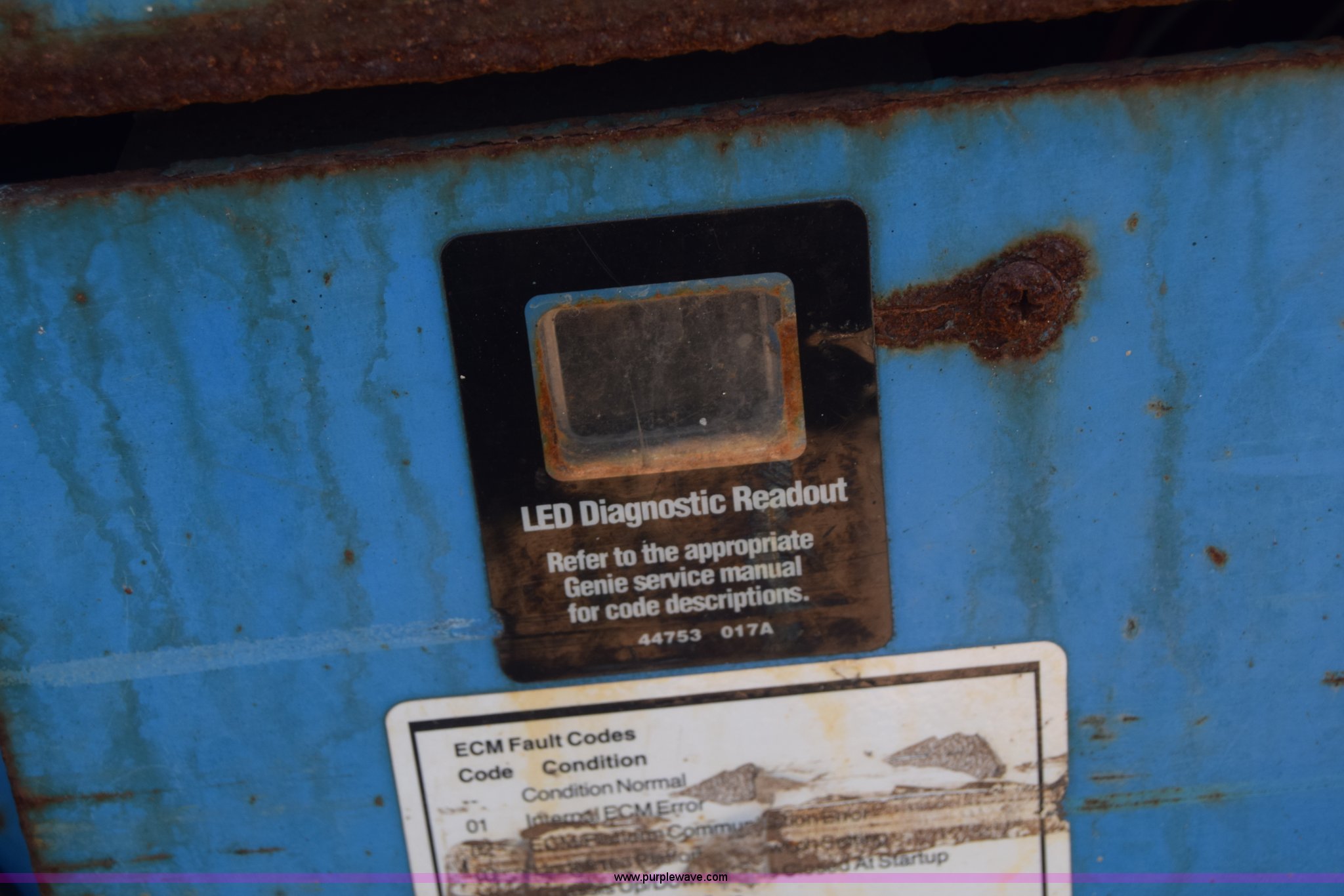 Genie GS-1930 scissor lift. 205 hours on meter, 24V system, 500 lbs maximum lift capacity, 19' maximum lift height, 62" x 29" x 40"H platform, LED diagnostic readout , 12 x 4 1/2 x 8" tires, 2,714 lbs. base operating weight, Last operated four months ago, Batteries removed, Controls removed. South Hutchinson, KS 67505
