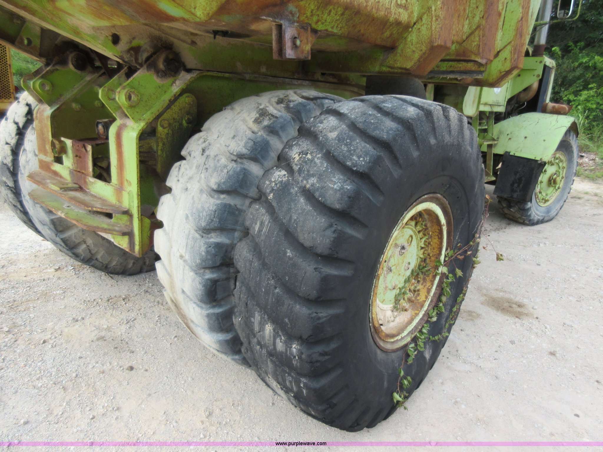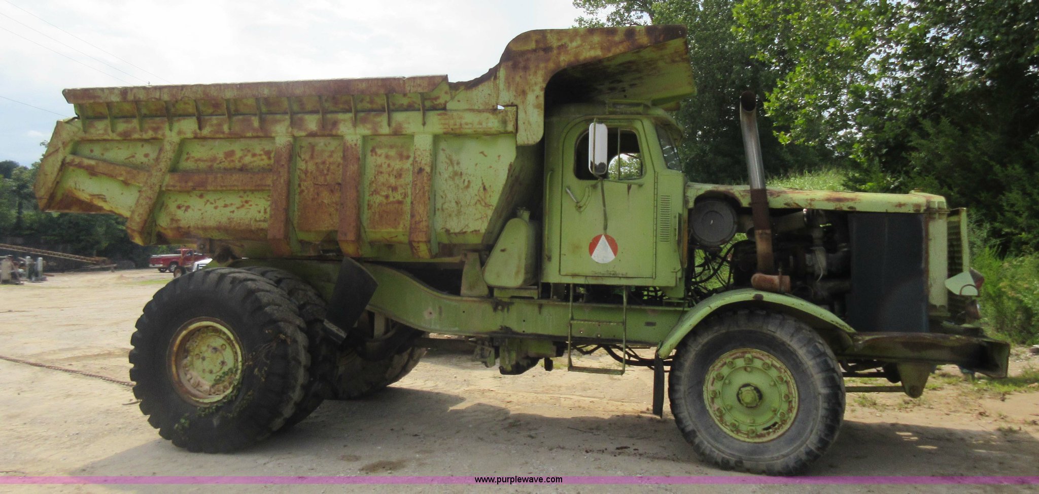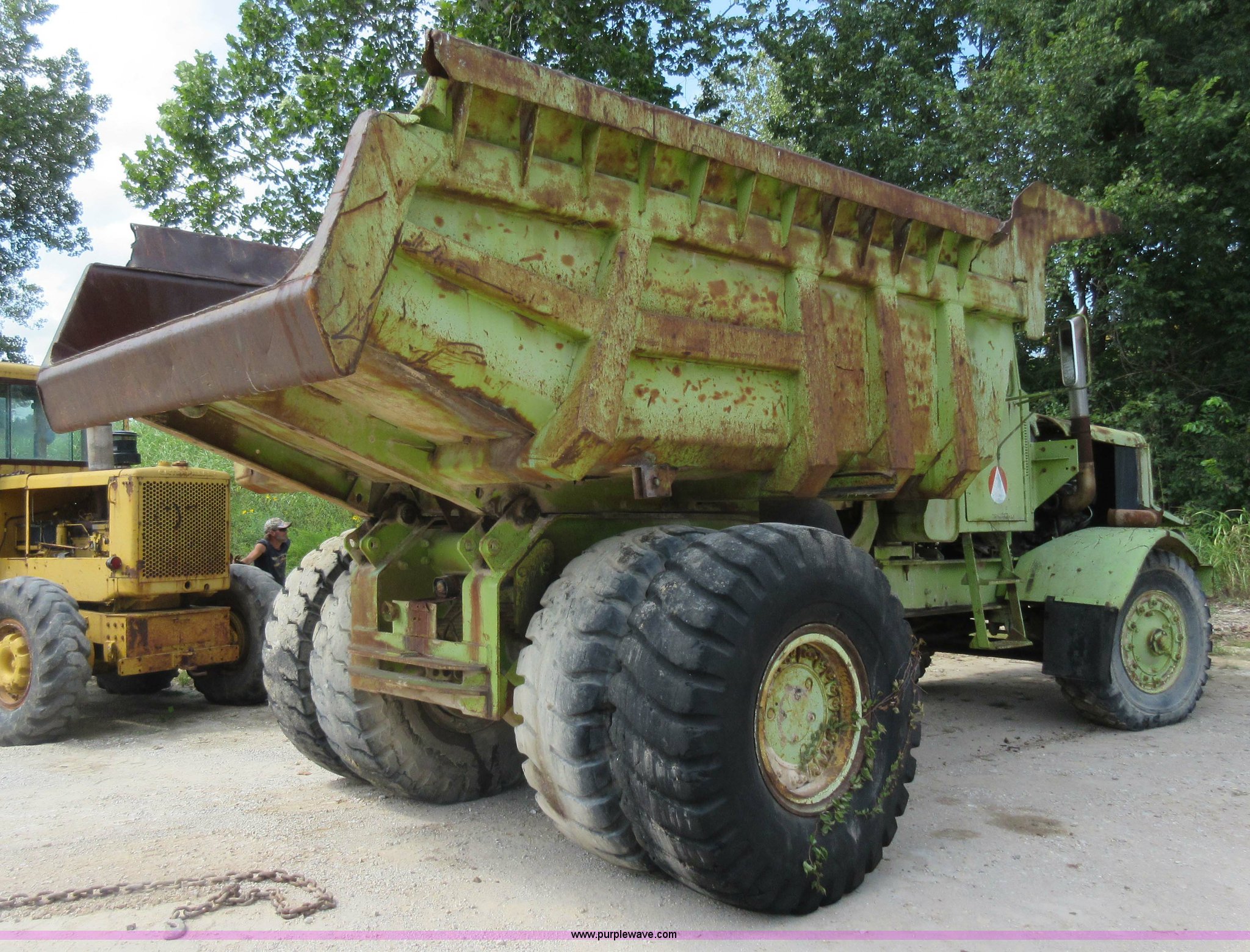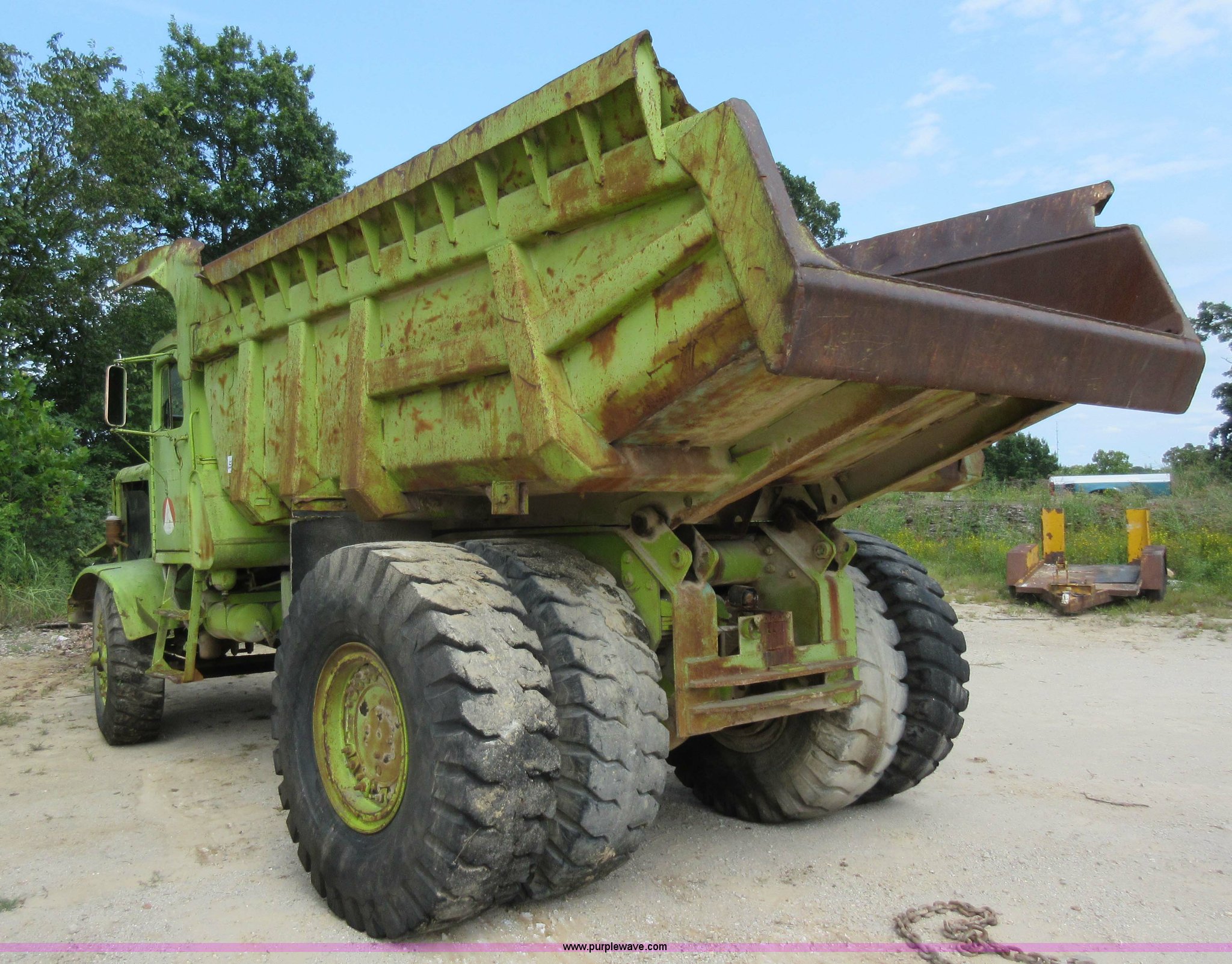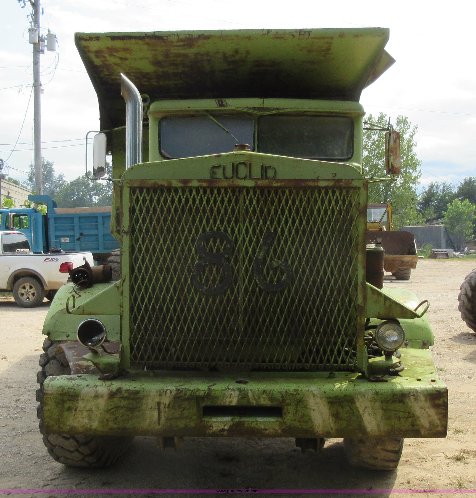 Purple Wave is selling a used Off Road Haul Truck in Missouri. This item is a Euclid haul truck with the following: Cummins six cylinder diesel engine, Three speed manual transmission, 15.5'L x 9.5'W dump bed, 44,010 maximum rated payload, Rear pin hitch, 14-24 front tires, 18-25 rear tires, Glass cracked, No batteries, Unknown operating condition
