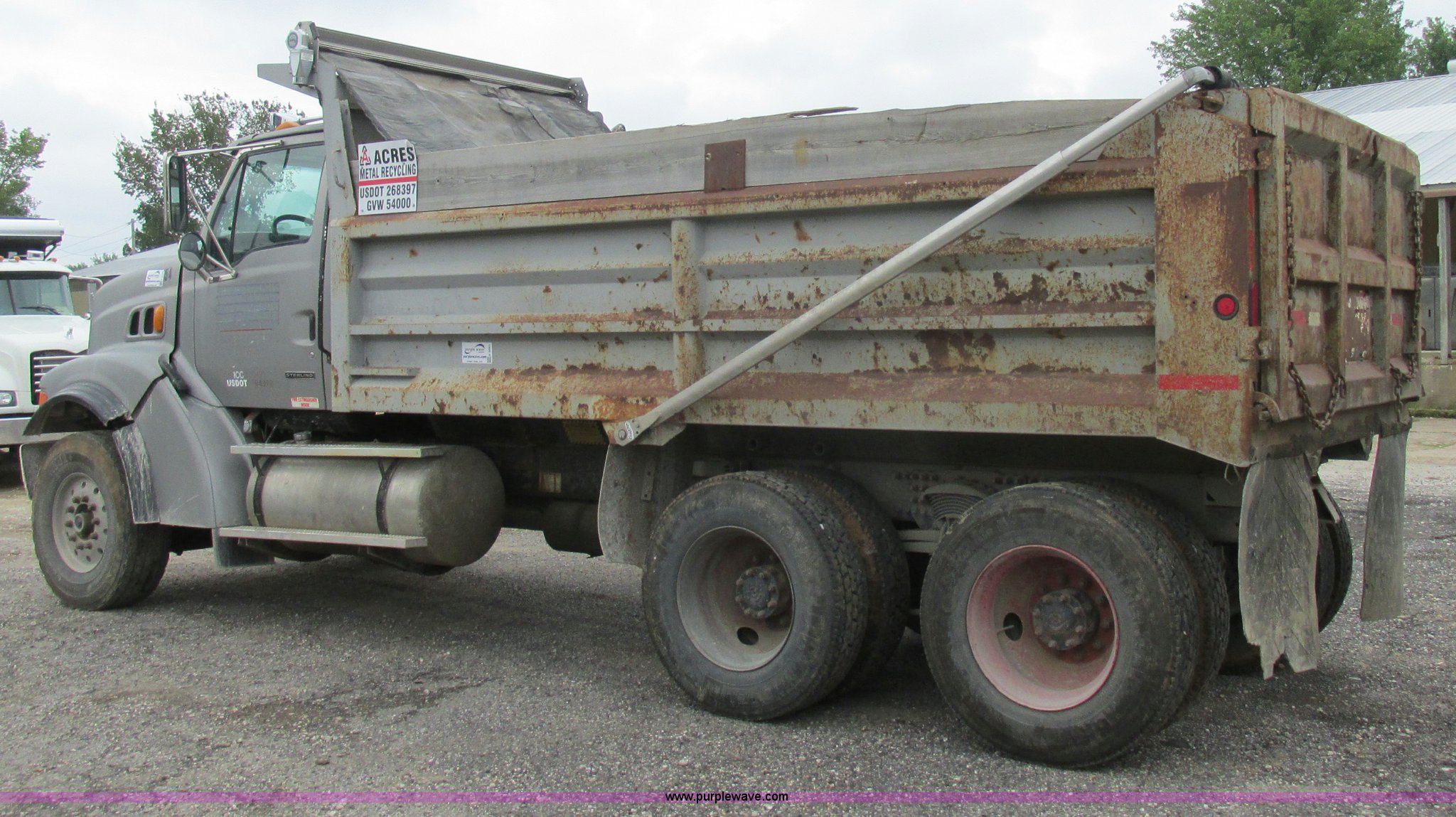 Purple Wave is selling a used Construction Dump Truck in Missouri. This item is a 2000 Sterling L8511 dump truck with the following: 342,505 miles on odometer, Caterpillar 3126 7.2L L6 turbo diesel engine, 275 HP, Serial 8YL16823, Eaton Fuller Road Ranger RTO-8LL eight speed manual transmission, AC and heat, AM/FM, Heated mirrors, Air suspension seat, Exterior visor, PTO, 15.5'L x 8'W steel dump bed, 36"H sideboards, Single ram three stage hoist, Air operated end gate, Electric roll-over tarp, 24" x 18" x 18" aluminum toolbox, Axle lock, Wheel lock, Single fuel tank, Tandem axle, Spring suspension, Air brakes, 315/80R22.5 front tires, 295/70R22.5 rear tires, GVWR 58,000 lbs, FAWR 18,000 lbs, IAWR 20,000 lbs, RAWR 20,000 lbs