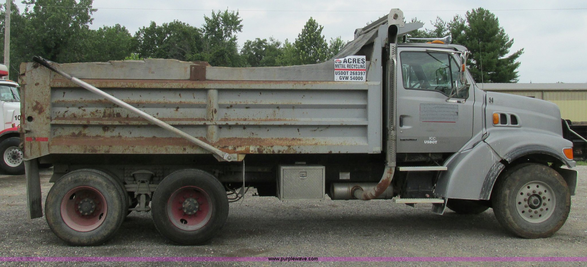 2000 Sterling L8511 dump truck. 342,505 miles on odometer, Caterpillar 3126 7.2L L6 turbo diesel engine 275 HP, Serial 8YL16823, Eaton Fuller Road Ranger RTO-8LL eight speed manual transmission, AC and heat, AM/FM, Heated mirrors, Air suspension seat, Exterior visor, PTO, 15.5'L x 8'W steel dump bed 36"H sideboards, Single ram three stage hoist, Air operated end gate, Electric roll-over tarp, 24" x 18" x 18" aluminum toolbox, Axle lock, Wheel lock, Single fuel tank, Tandem axle, Spring suspension, Air brakes, 315/80R22.5 front tires, 295/70R22.5 rear tires, GVWR 58,000 lbs, FAWR 18,000 lbs, IAWR 20,000 lbs, RAWR 20,000 lbs. Title distribution may be delayed up to 14 days from verification of funds. 2FZNDJBB7YAB59456. View equipment video. Acres Metal Recycling. 5316 Hunning Road. High Ridge, MO 63049