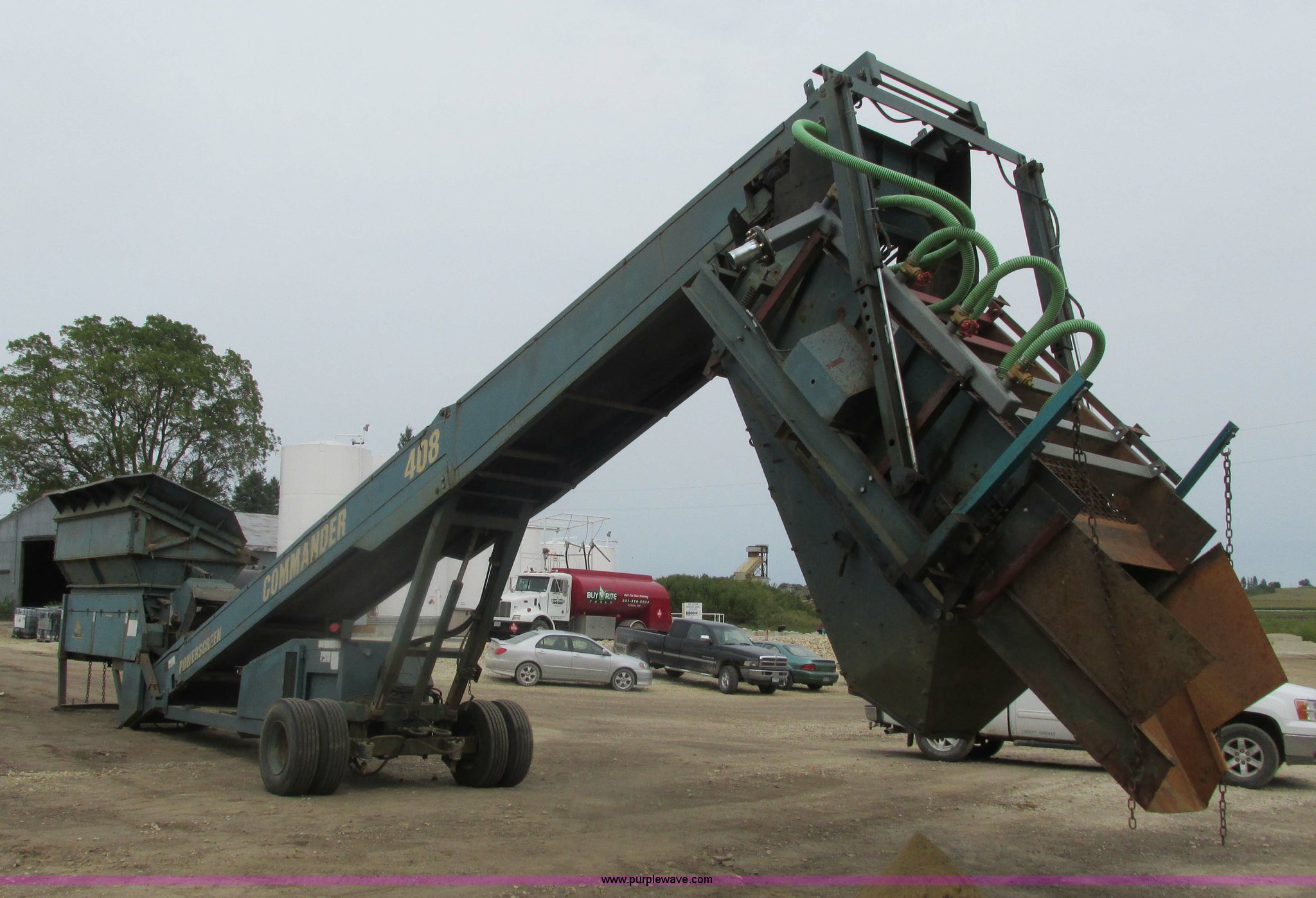 Purple Wave is selling a used Screen or Screening Plant in Minnesota. This item is a Power Screen Commander 408 screen with the following: 6,374 hours on meter, Duetz four cylinder turbo diesel engine, 4' x 8' double deck vibrating screen, Additional screens, Wash kit, 40'L x 30"W conveyor, 24"W hydraulic shredder/pulverizer, 12'L x 6'W feed hopper, Remote power grizzley, Hydraulic leveling, Hydraulic raise/lower screen deck, Auxiliary hydraulics, Draw bar hitch, Fifth wheel hitch, 10R17.5 tires, Serial 6702197