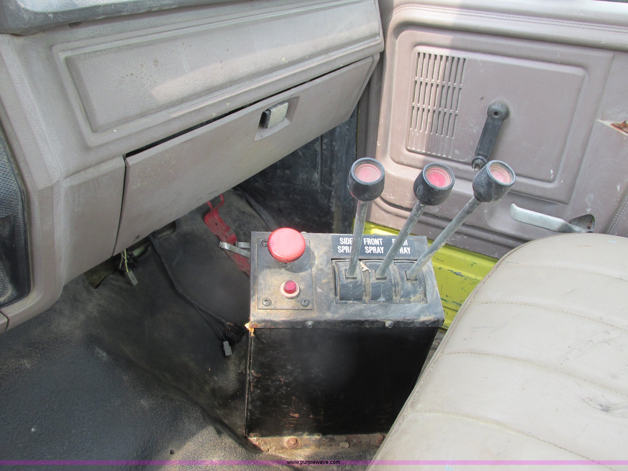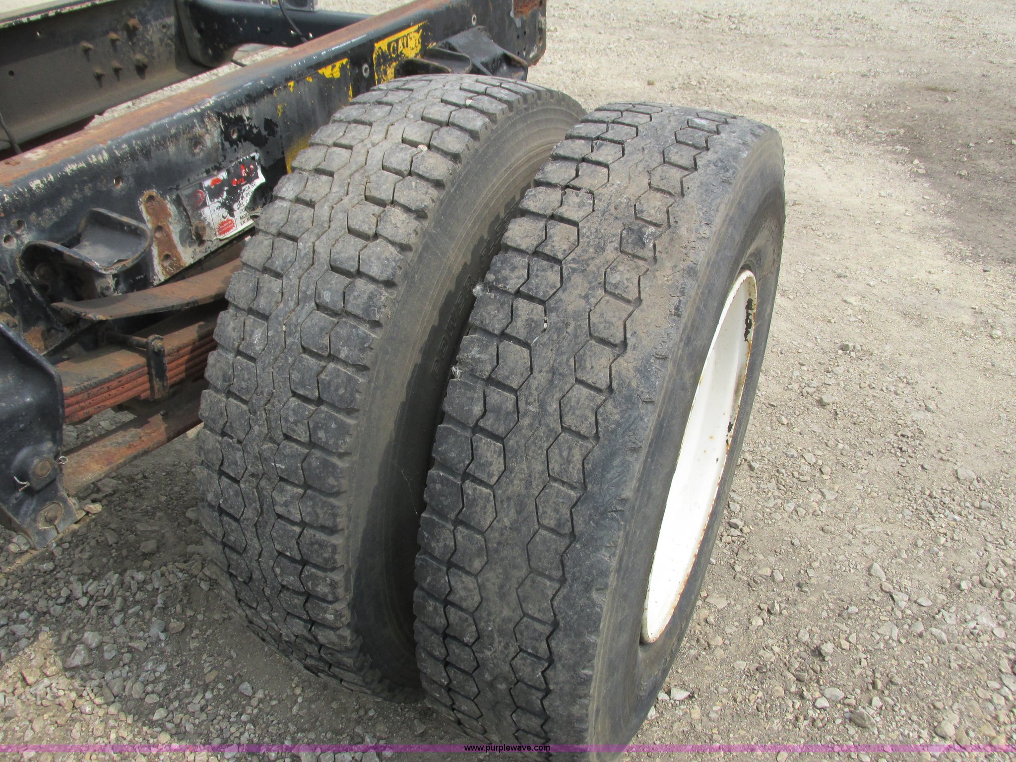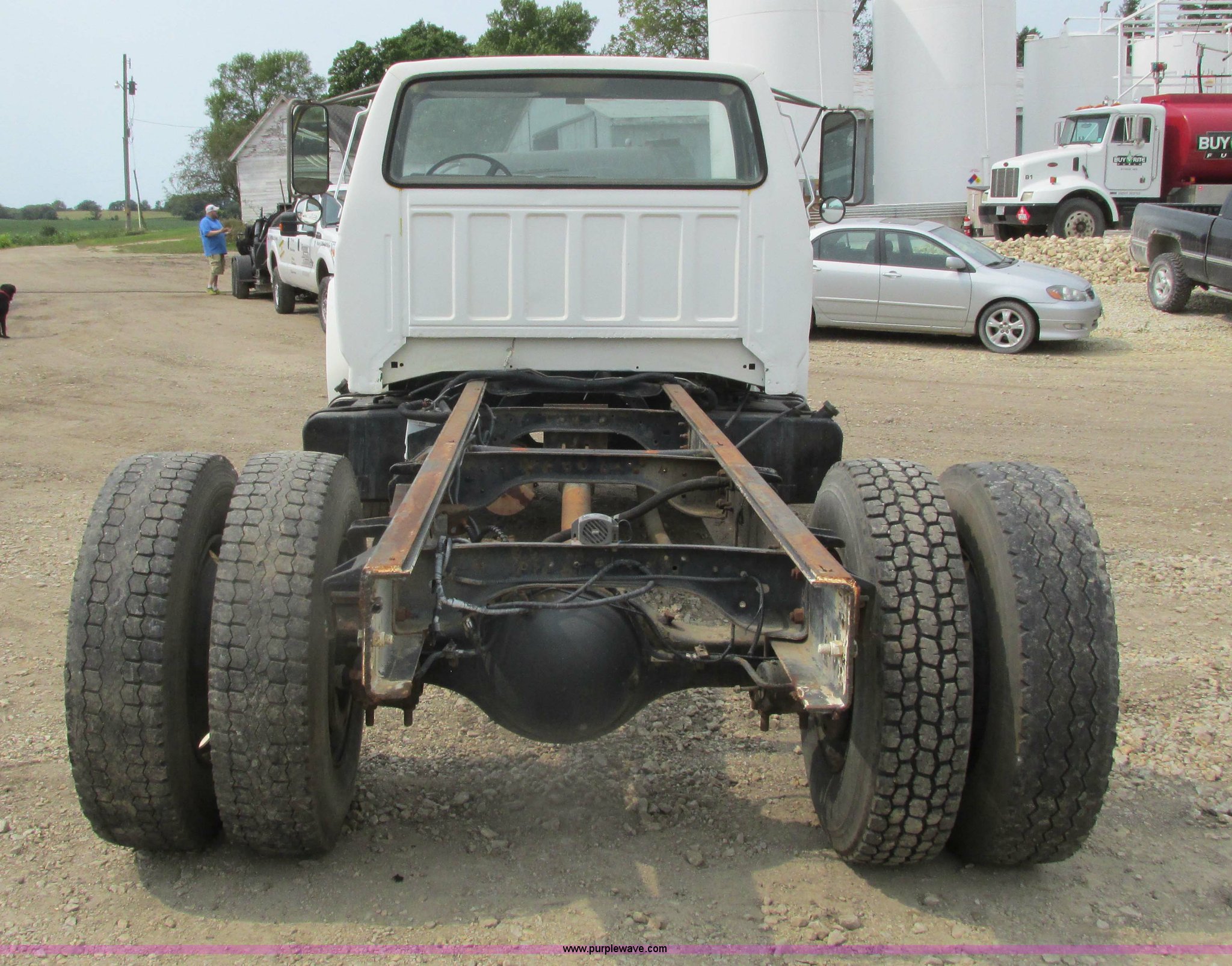 Purple Wave is selling a used Truck Chassis in Minnesota. This item is a 1995 Ford F700 cab and chassis with the following: 153,402 miles on odometer, 7.0L V8 gas engine, Five speed manual transmission, Heat, Vinyl interior, Spring suspension, Hydraulic brakes, 225" wheelbase, 11R22.5 tires, Runs rough, Battery weak