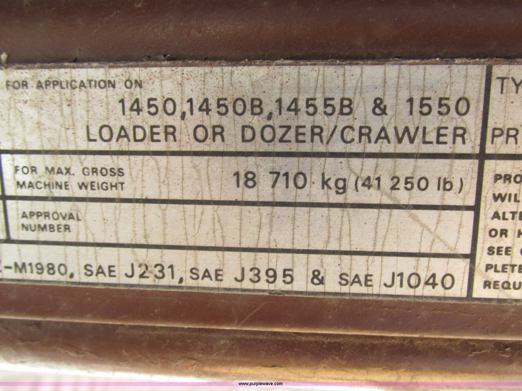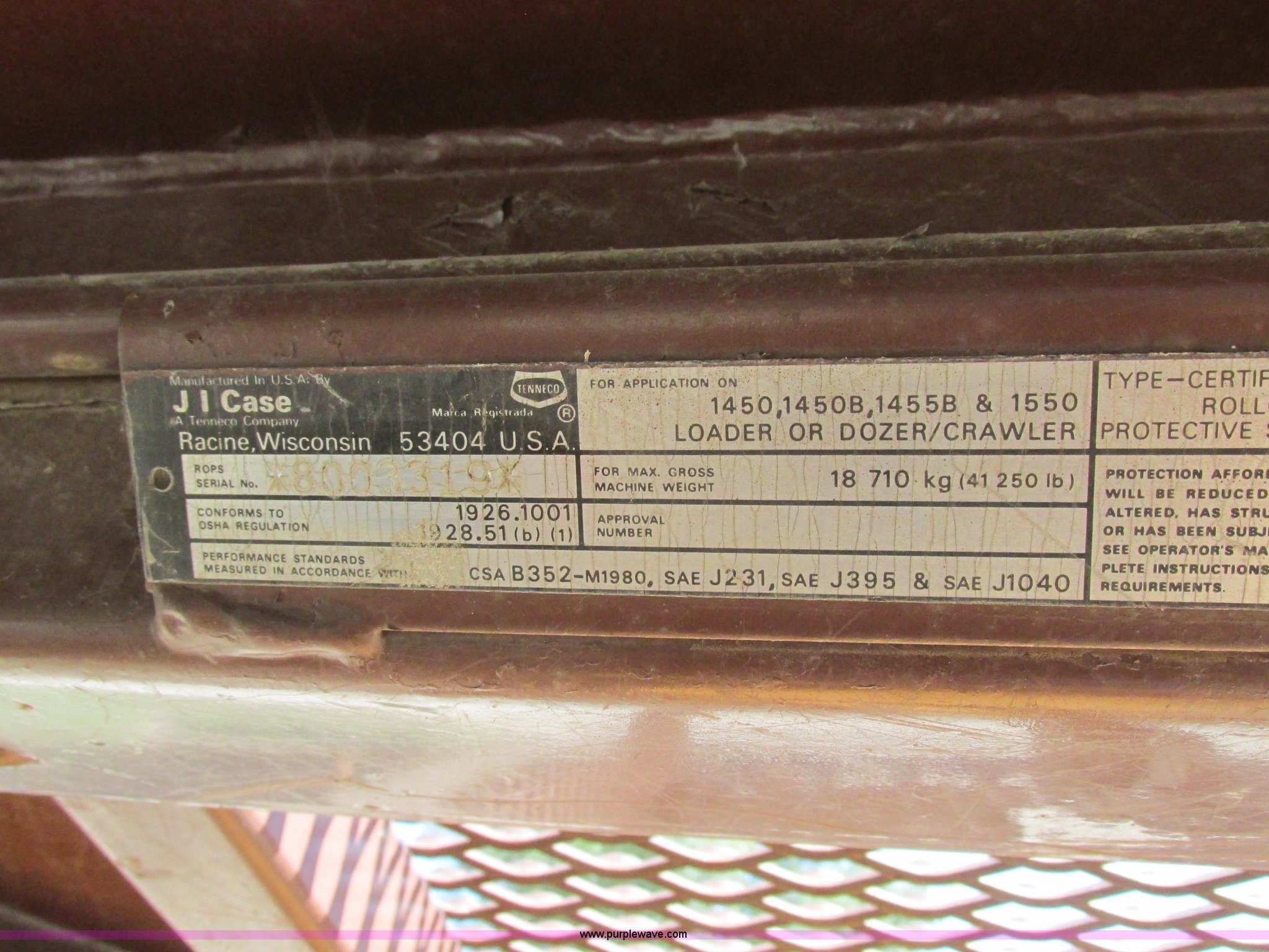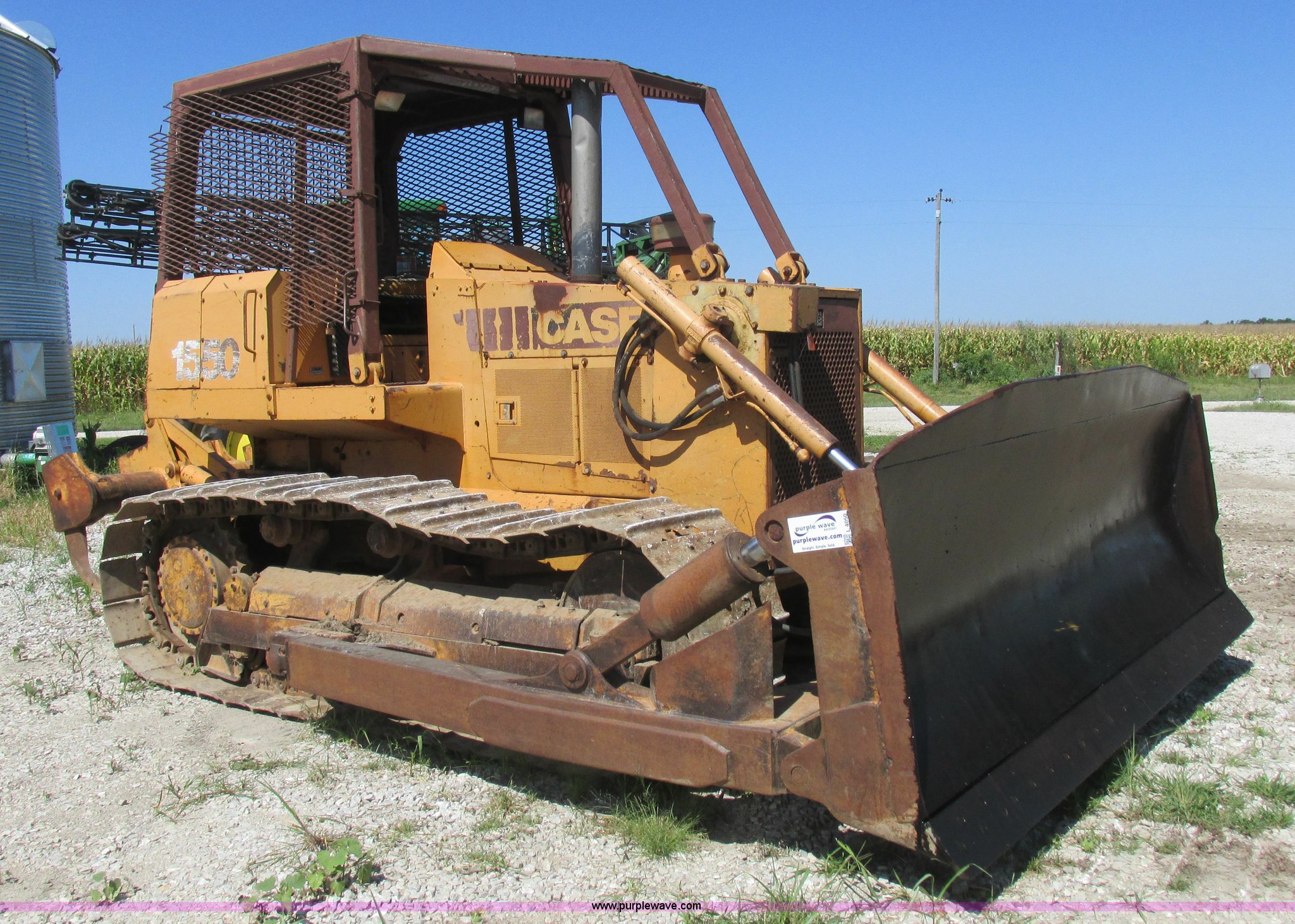 Purple Wave is selling a used Crawler Dozer in Missouri. This item is a 1989 Case 1550 dozer with the following: 9,475 hours on meter, Cummins 6CT six cylinder turbo diesel engine, Hydrostatic transmission, Canopy, Serial 8003319, Suspension seat, 11'4" Semi-U dozer blade, Hydraulic angle blade, Ripper, (5) shank capacity, (3) shanks included, Seven bottom rollers, 24"W triple grouser track pads, 27,937 lbs. base operating weight, Serial JAK0010750