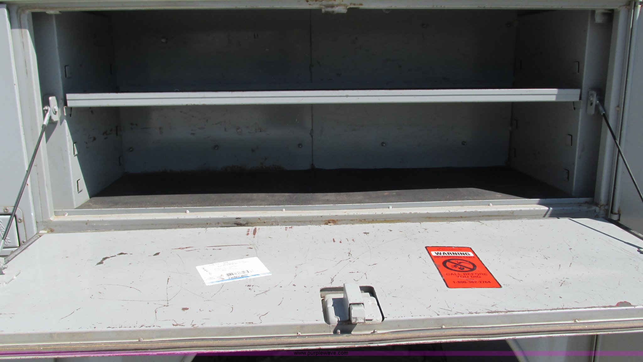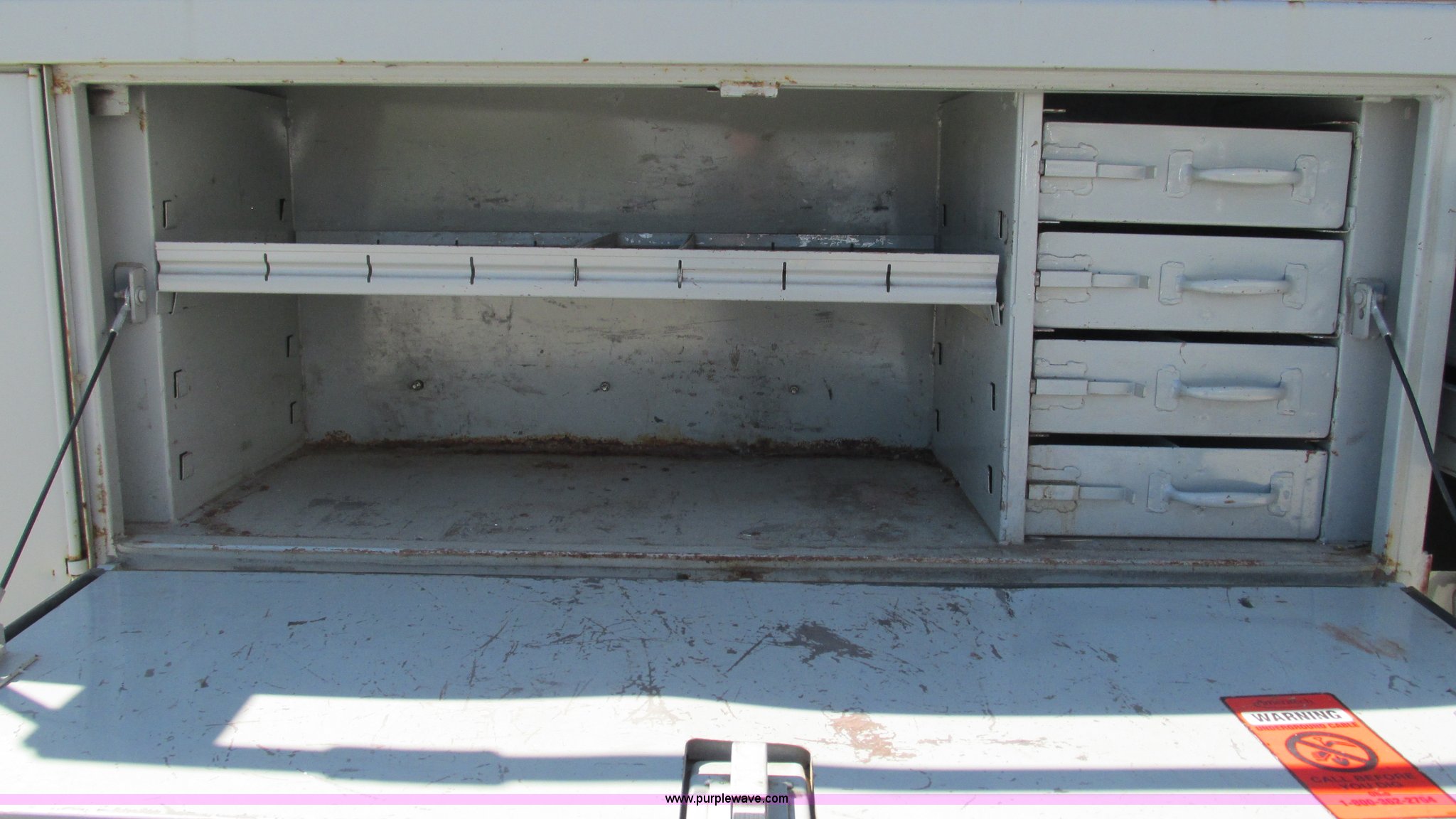 Purple Wave is selling a used Bucket Truck in Missouri. This item is a 2002 Chevrolet Silverado 3500HD bucket truck with the following: 152,936 miles on odometer, 8.1L V8 OHV 16V gas engine, Automatic transmission, AC and heat, AM/FM/CD, Steelweld 108AL service bed, Serial 2108M071, Shelving, Slide-out drawers, Altec boom, 30.5' maximum lift height, 350 lbs maximum lift capacity, 10.5' vertical height, Telescopic boom, Boom rotation, Man basket, Bucket controls, Non insulated boom, Beacon light, Single fuel tank, Pintle hitch, Spring suspension, Hydraulic brakes, 225/70R19.5 tires, Rust, Interior/exterior cosmetic damage