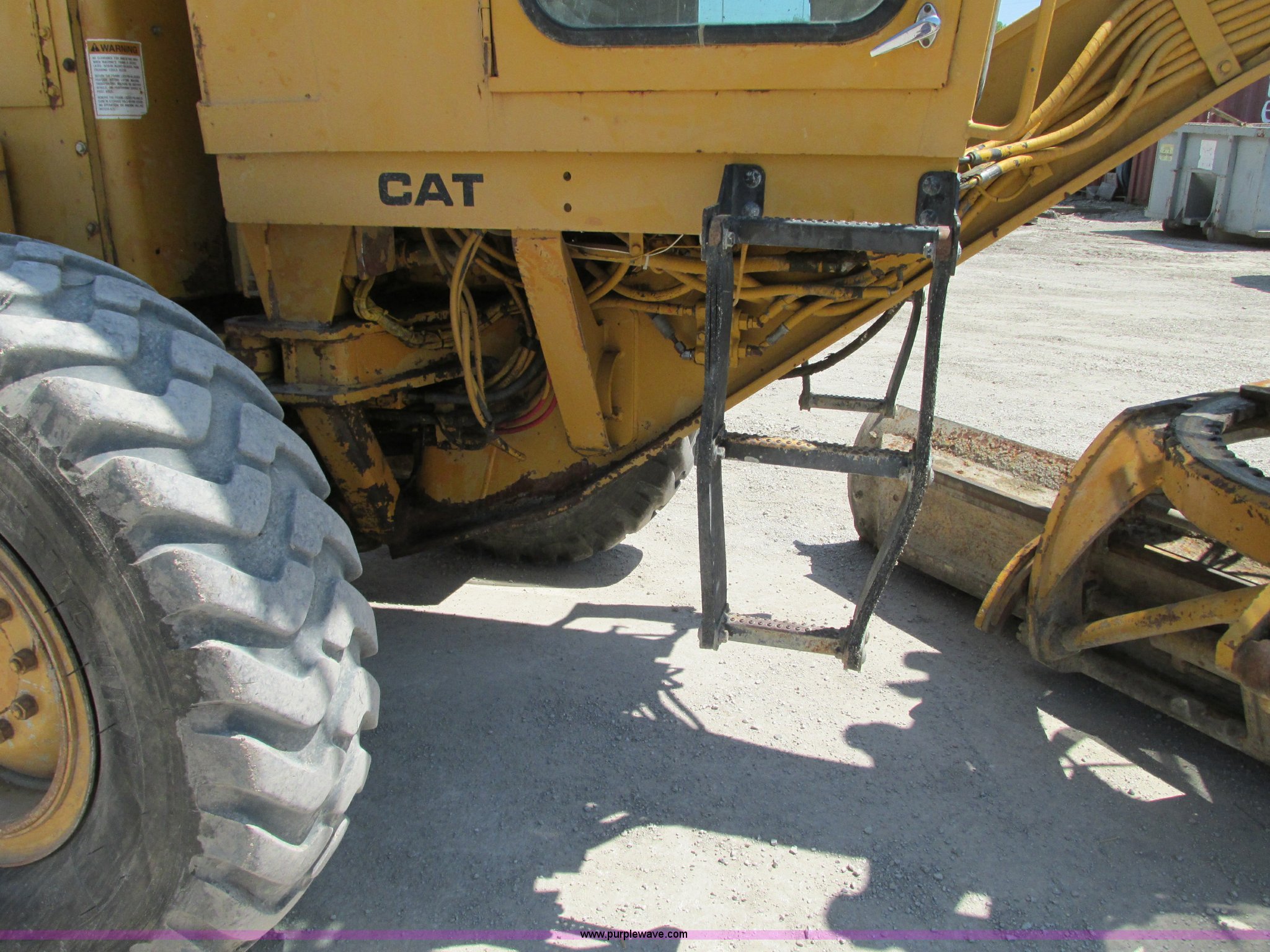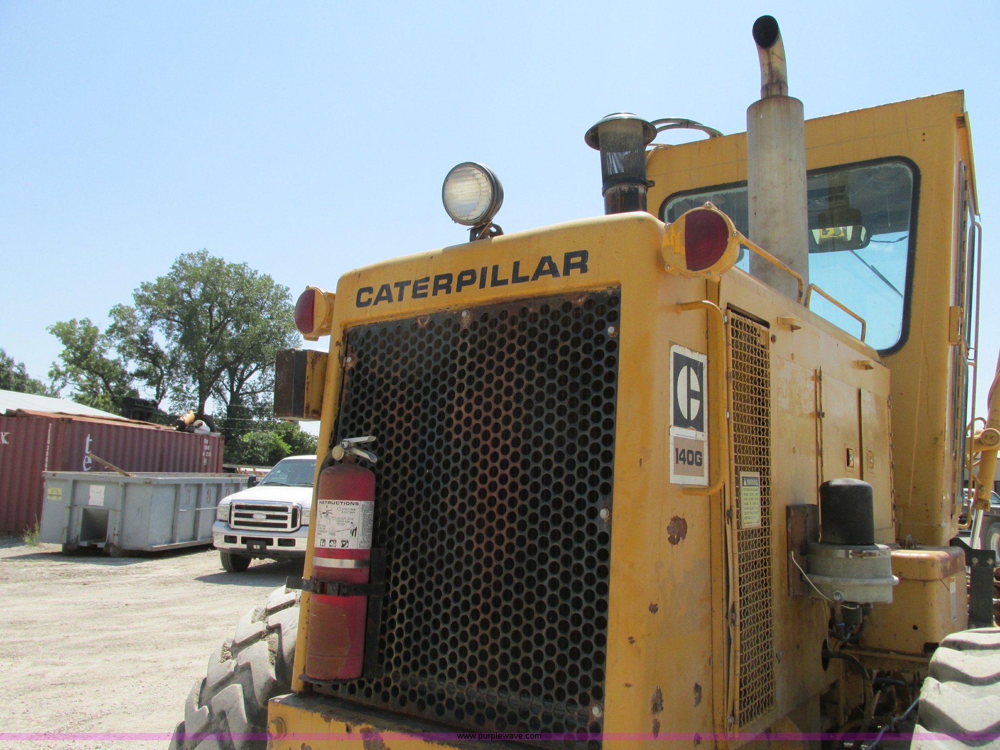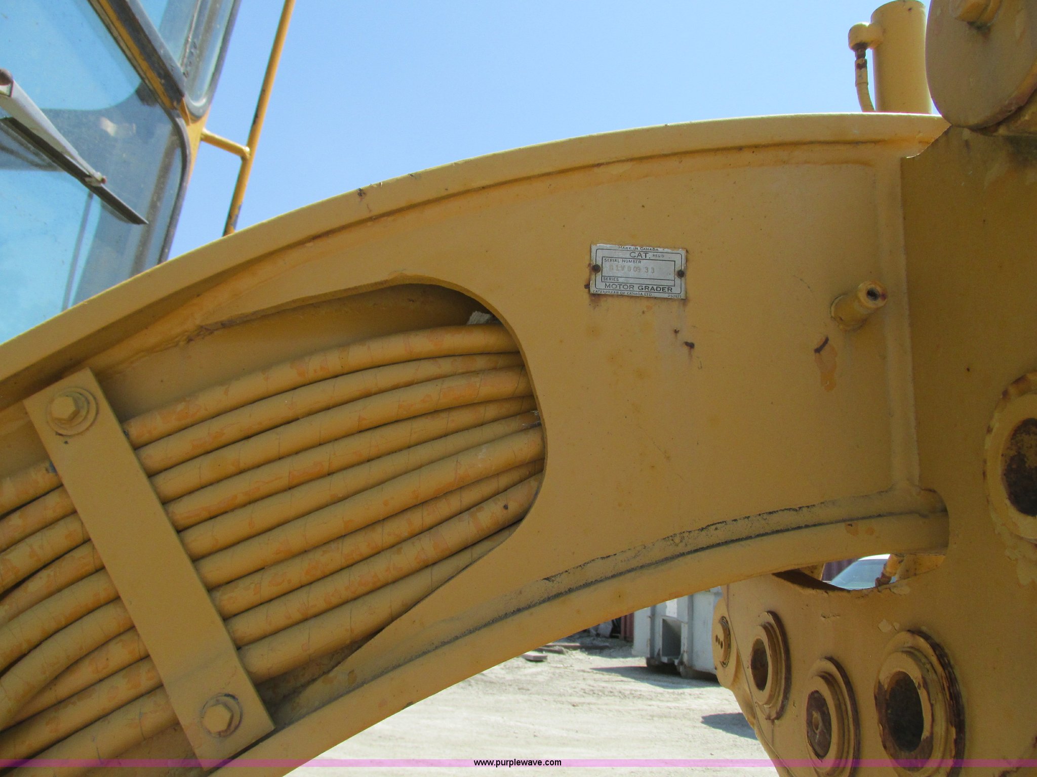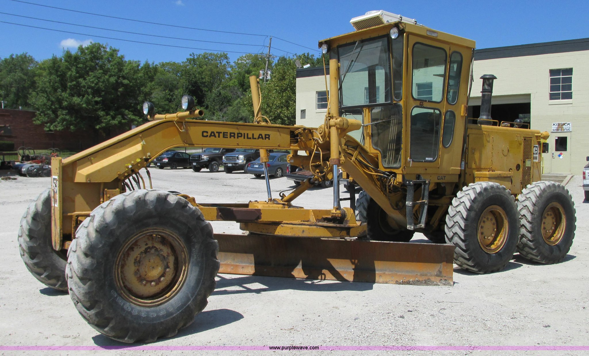 Purple Wave is selling a used Motor Grader in Missouri. This item is a 1979 Caterpillar 140G motor grader with the following: 2,931 hours on meter, Hour meter has been replaced, Caterpillar 3306 six cylinder diesel engine, 150 HP, Direct-drive transmission, Differential lock, Four wheel drive, Caterpillar enclosed cab, AC and heat, Front and rear work lights, Glow plugs, 14'W moldboard, Tip control, Side shift, (10) control valves, Front mounted lift group, 14.00-24 tires, 29,175 lbs. base operating weight, Oil in antifreeze, Air compressor replaced 2014, Turbo replaced, Serial 81V00933