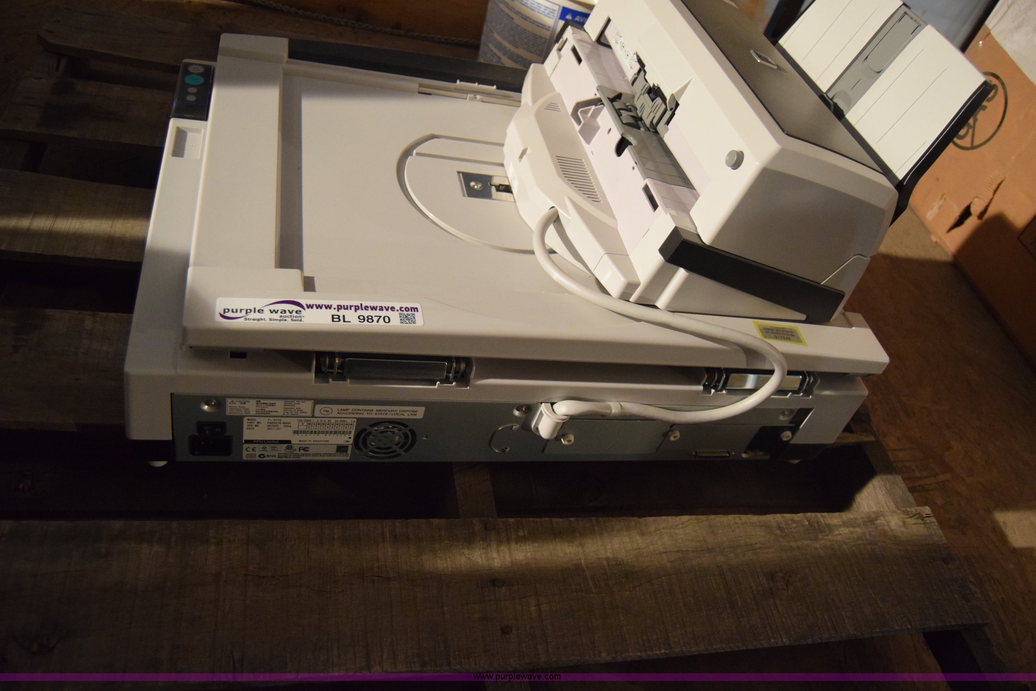 Purple Wave is selling a used Electronics in Kansas. This item is a Fijitsu FI-6770 image scanner with the following: Serial 007925, KDOT ID 917948