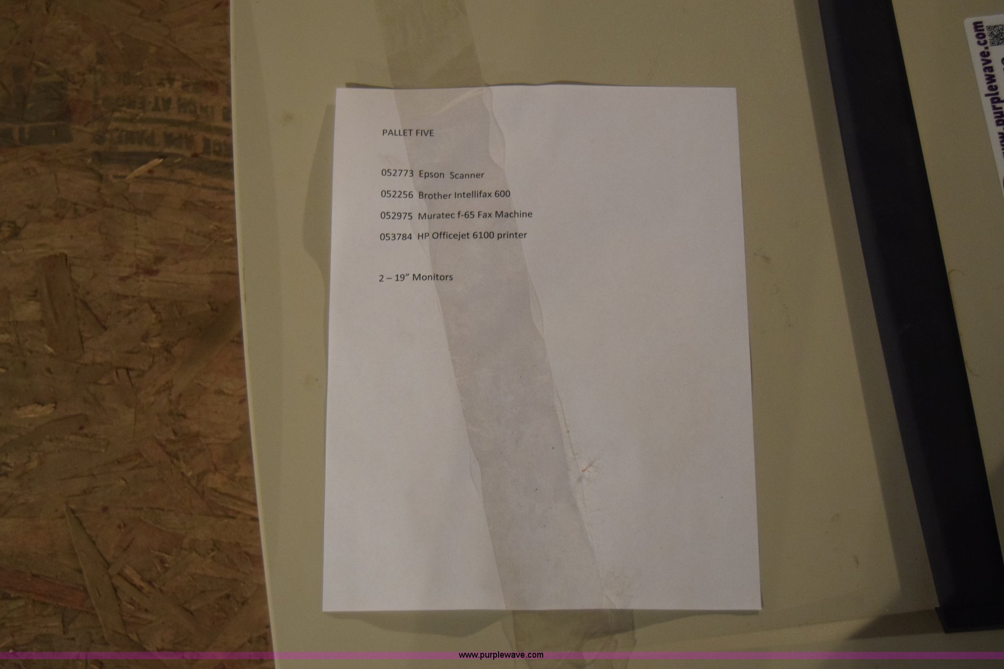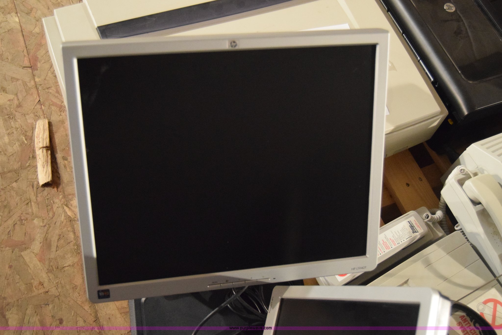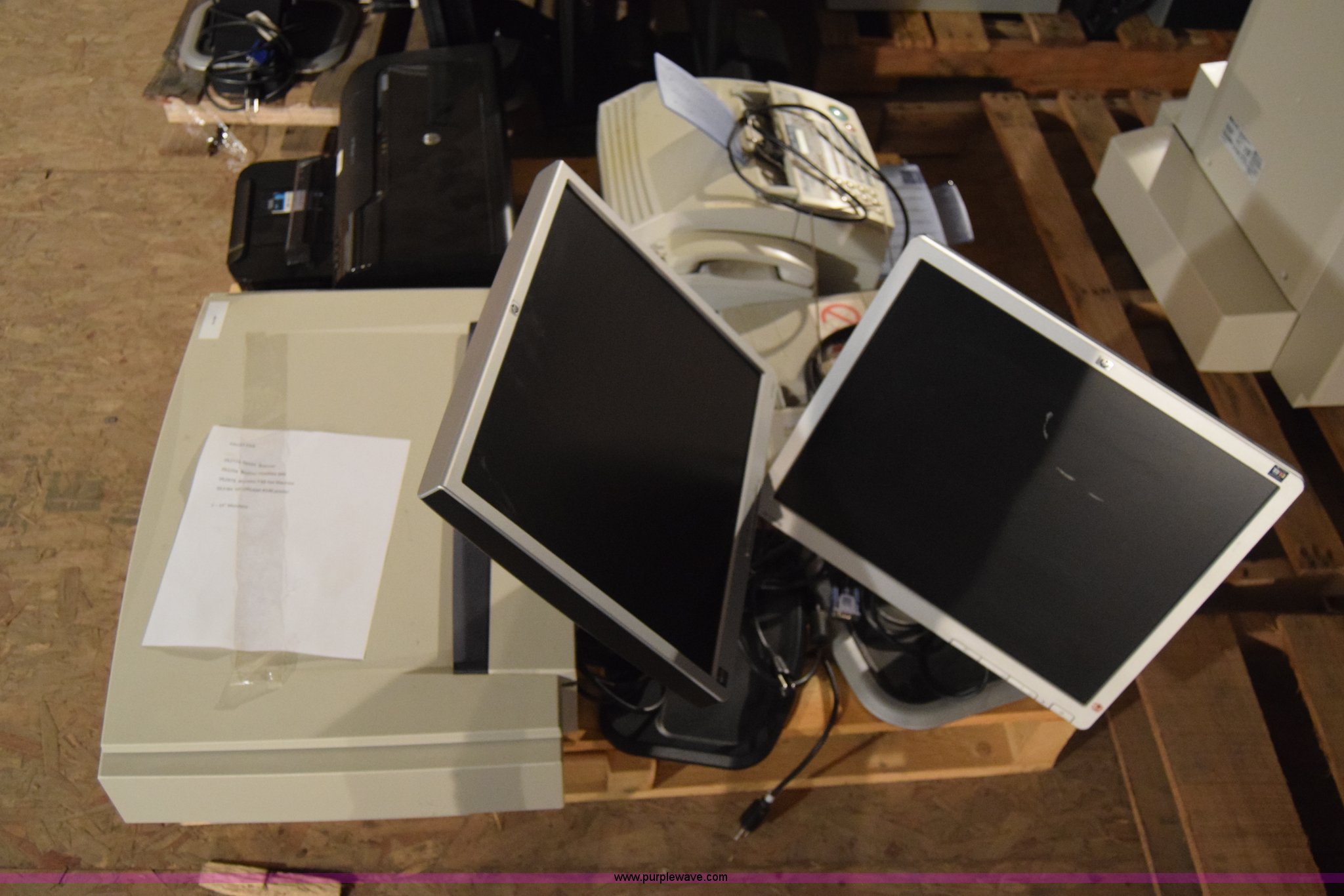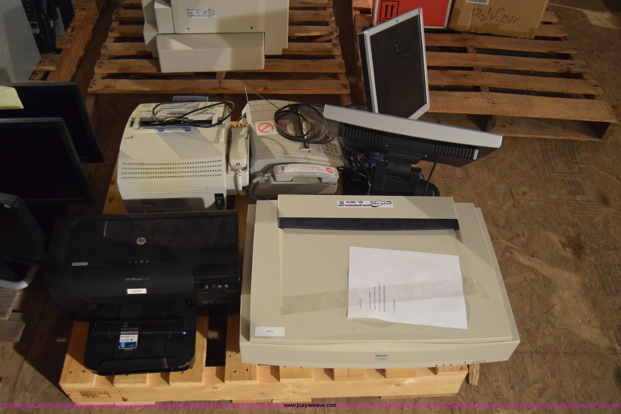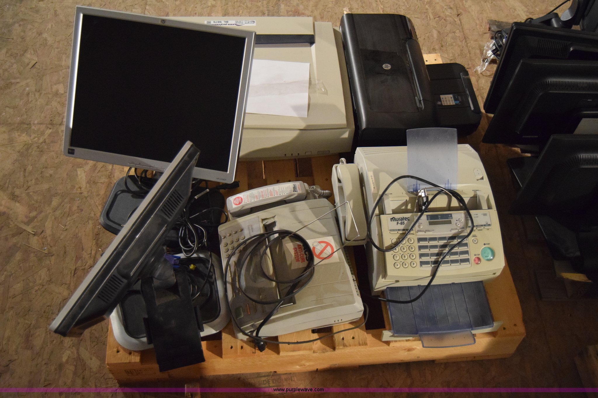 Purple Wave is selling a used Electronics in Kansas. This item is a Assorted electronics with the following: (2) HP flat screen monitors, 19", Epson Expression 836XL scanner, (2) Muratec F-65 fax machine, HP OfficeJet 6100 printer, Unknown operating condition, KDOT ID 15073009, 15073010, 052773, 052975, 052977, 053784