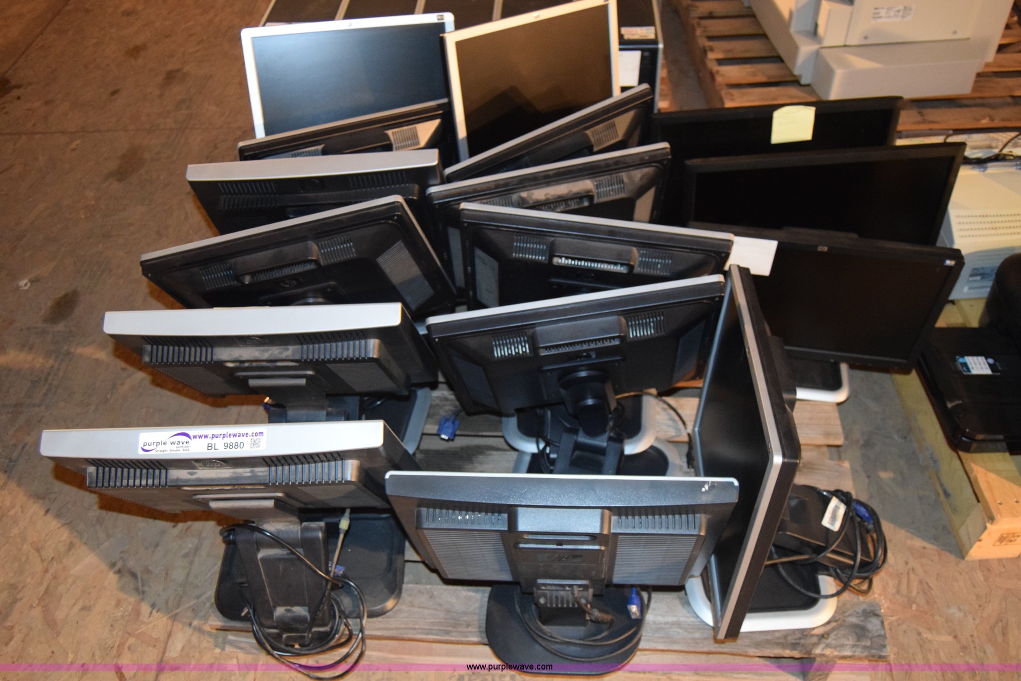 Purple Wave is selling a used Computers in Kansas. This item is a (16) HP flat screen computer monitors with the following: (14) 19", (2) 20", Unknown operating condition, KDOT ID 15072901, 15072902, 15072903, 15072904, 15072904, 15072905, 15072906, 15072907, 15072908, 15073001, 15073002, 15073003, 15073004, 15073005, 15073006, 15073007, 15073008