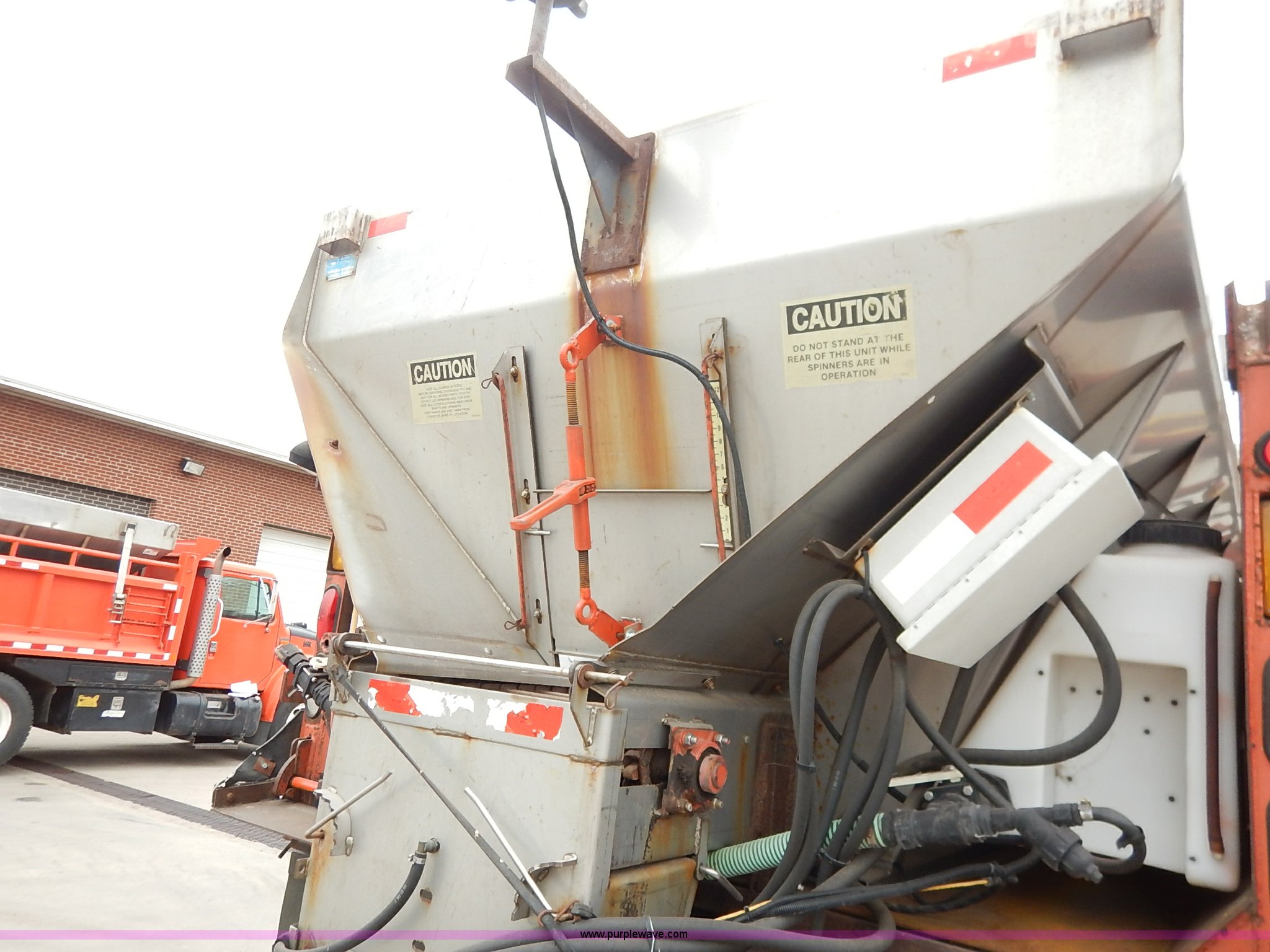 2001 Sterling LT7500 dump truck. 176,560 miles on odometer, 8,726 hours on meter, Caterpillar 3126 7.2L L6 turbo diesel engine 250 HP, Serial 8YL94850, Tandem axle, AC and heat, Cruise, AM/FM, Heated mirrors, Block heater, Front mounted PTO, Warren WFL650-13 steel dump bed 13'L x 8'W, Toolboxes, Roll-over tarp frame No tarp, Flink reversible snow plow 11'L, Warren V-box stainless steel spreader Nine cubic yard capacity, 200 gallon pre-wet tanks, Gresen spreader controls, 15' wheelbase, 295/75R22.5 front tires, GVWR 53,200 lbs, FAWR 13,200 lbs, RAWR 20,000 lbs, Paint faded, Dents and scratches, Rust, Engine oil leaks, KDOT ID 263-6040. Titles will be distributed after confirmation of payment and removal. 2FZHATAK71AH88871. View equipment video. Kansas Department of Transportation - Garden City. 121 N. Campus Drive. Garden City, KS 67846