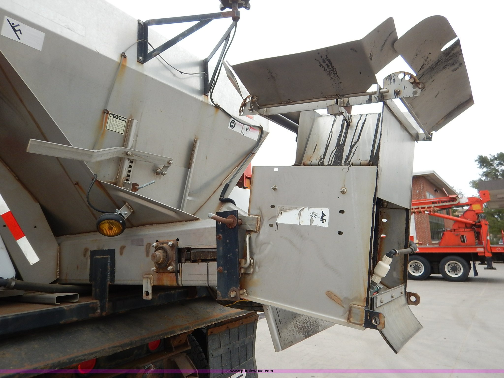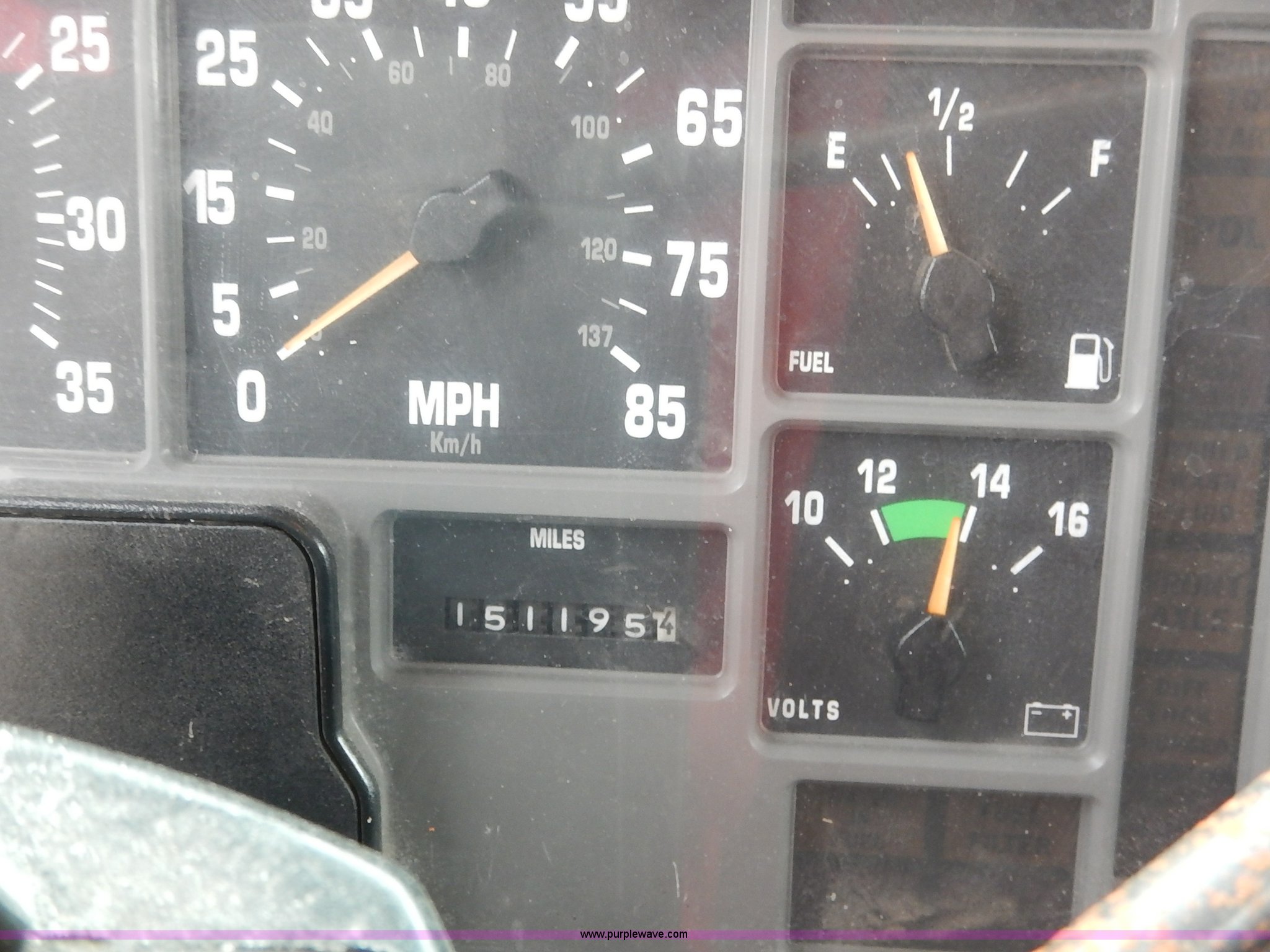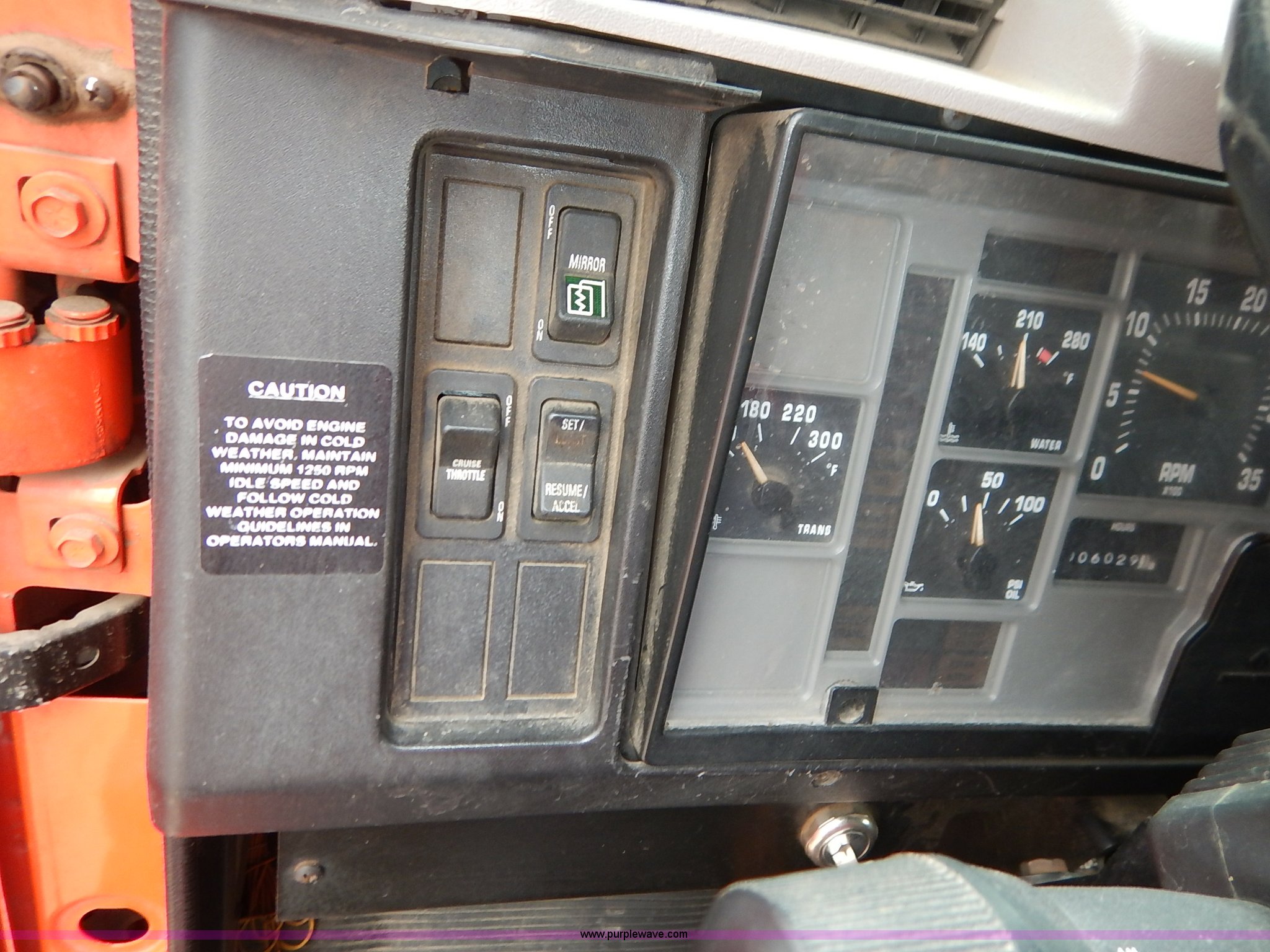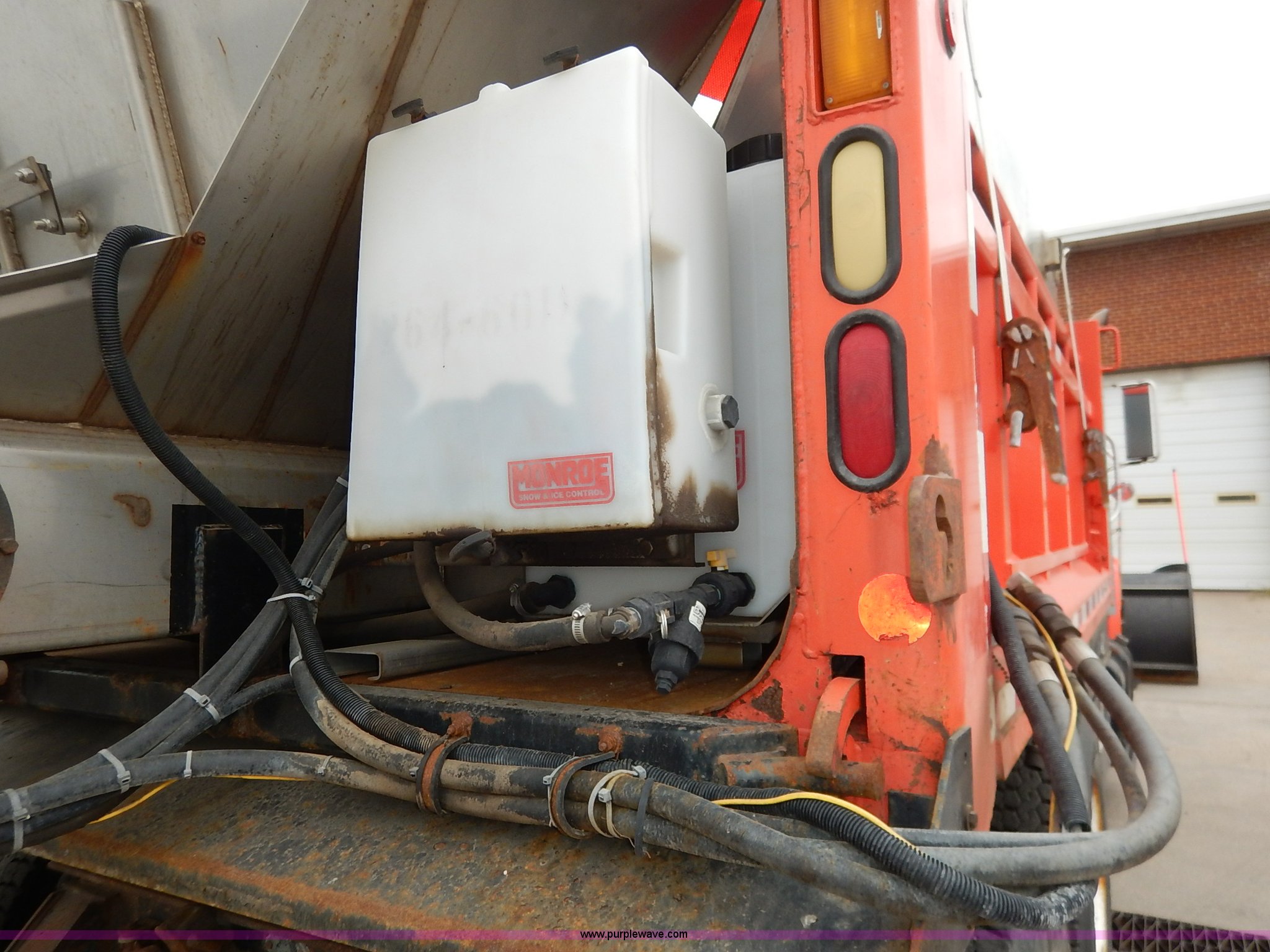 Purple Wave is selling a used Construction Dump Truck in Kansas. This item is a 1999 International 4900 dump truck with the following: 151,195 miles on odometer, 6,029 hours on meter, International DT530 8.7L L6 turbo diesel engine, Allison MD3060 automatic transmission, Tandem axle, Inter-axle differential lock, Heat, Cruise, AM/FM/cassette, Heated mirrors, Air suspension seat, Block heater, PTO, 13'L x 8'W steel dump bed, Toolboxes, Reversible snow plow, 11'W, Warren V-box stainless steel spreader, Nine cubic yard capacity, 200 gallon pre-wet tanks, Force SSC1500 spreader controls, Pintle hitch, Trailer wiring, 15' wheelbase, Spring suspension, Air brakes, 295/75R22.5 front tires, Strobe lights will be removed prior to auction, Seat damaged, Paint faded, Dents and scratches, KDOT ID 264-6018