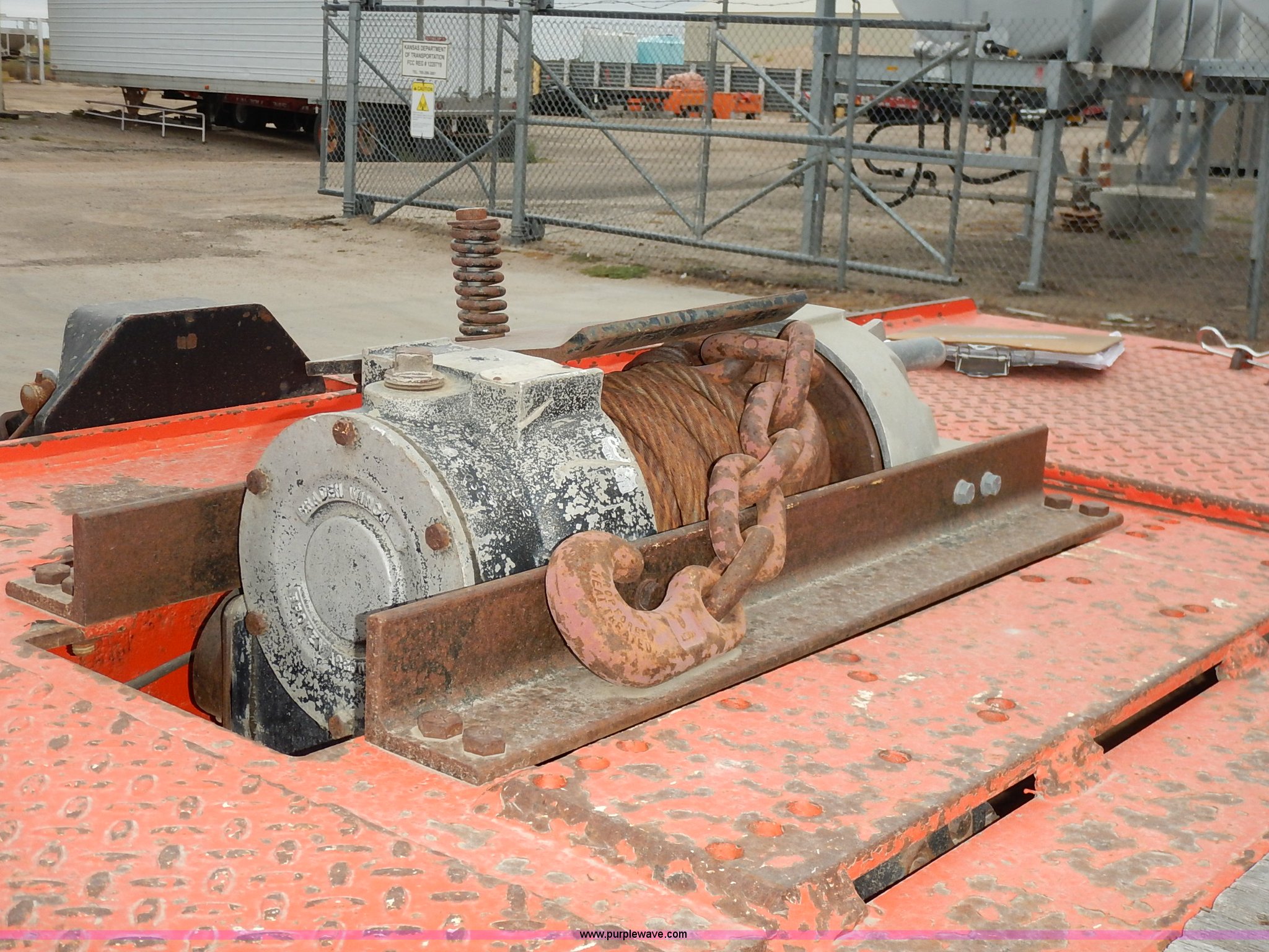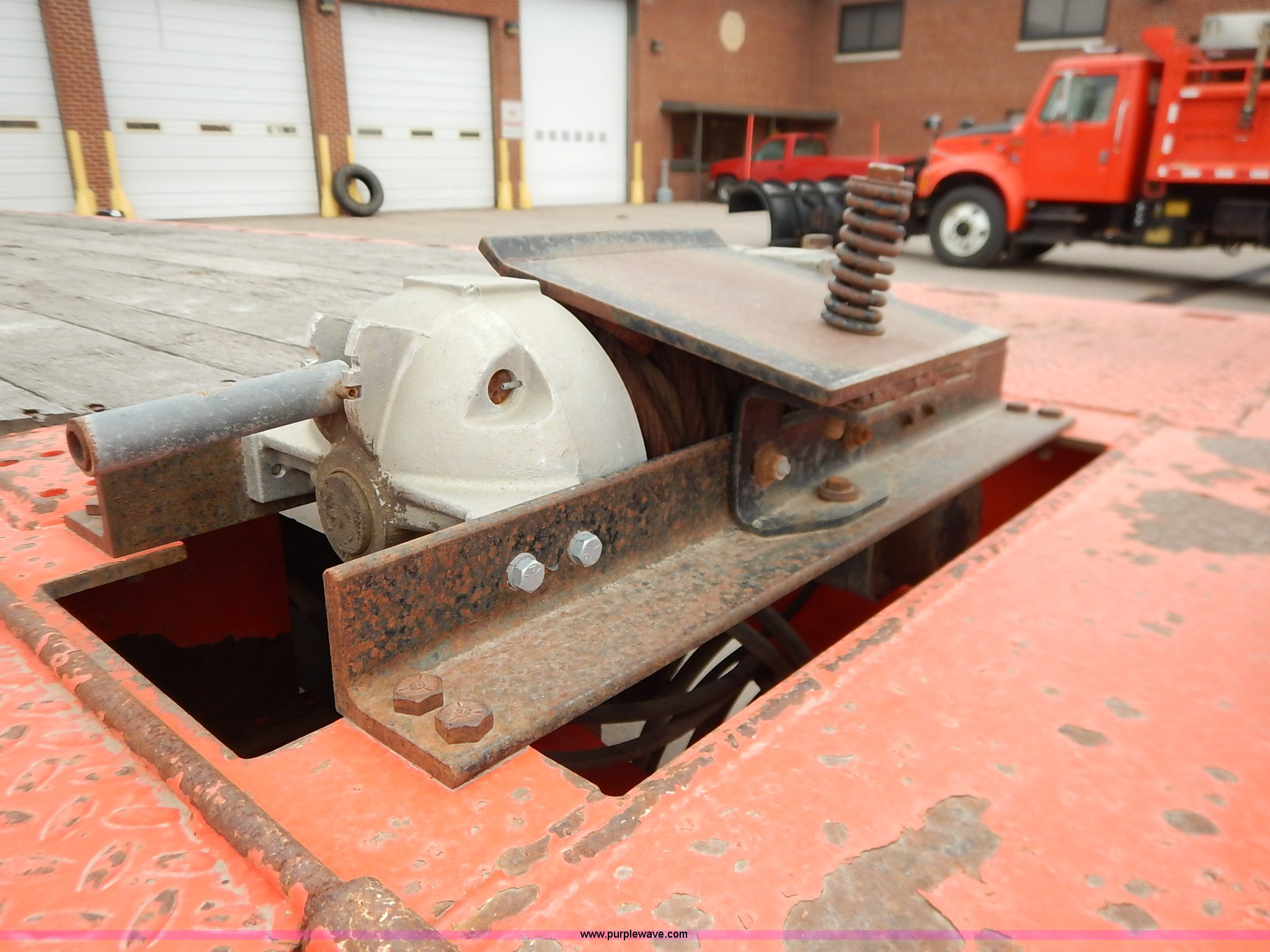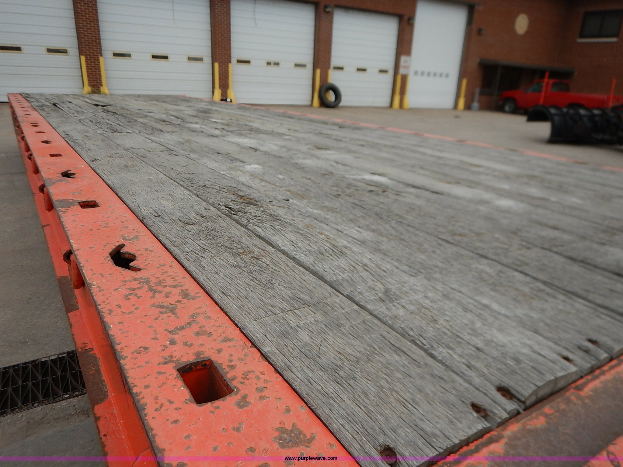 Purple Wave is selling a used Equip. Trailer in Kansas. This item is a 1998 Landoll 345B tilt deck trailer with the following: 31'L x 102"W, 15 ton capacity, Wood deck, D-ring tie downs, Winch, Hydraulics, Safety chains, Tandem slide axle, Pintle hitch, Hydraulic brakes, 10R17.5 tires, GVWR 50,000 lbs, GAWR 17,640 lbs, Rust, KDOT ID 777-6028