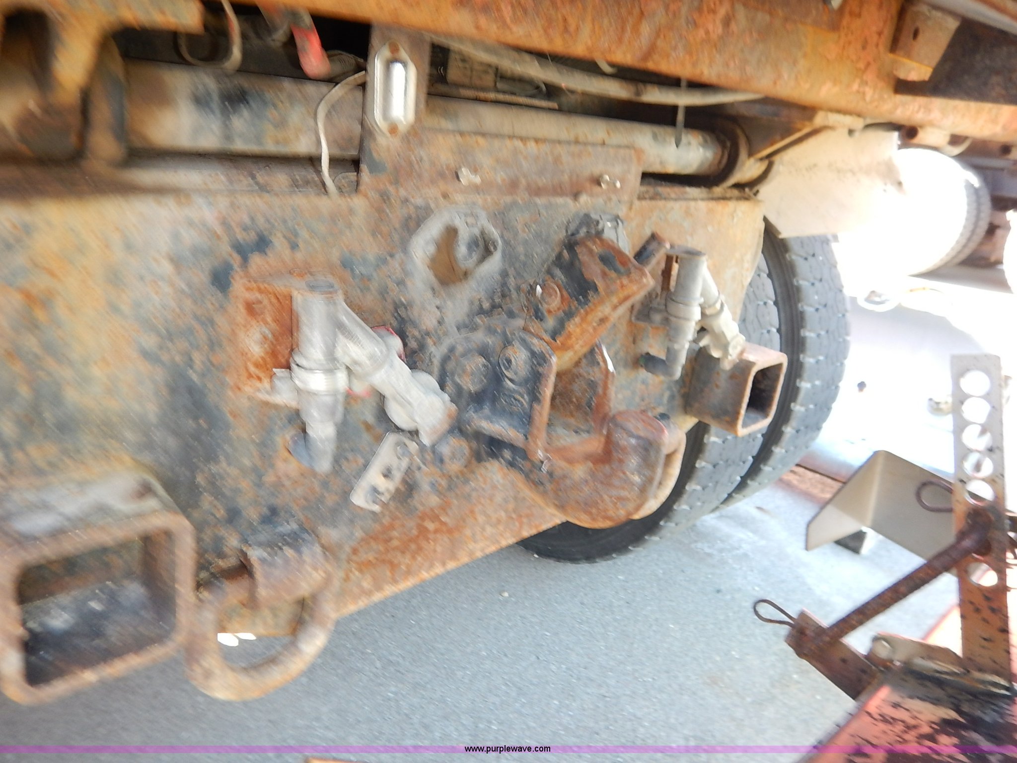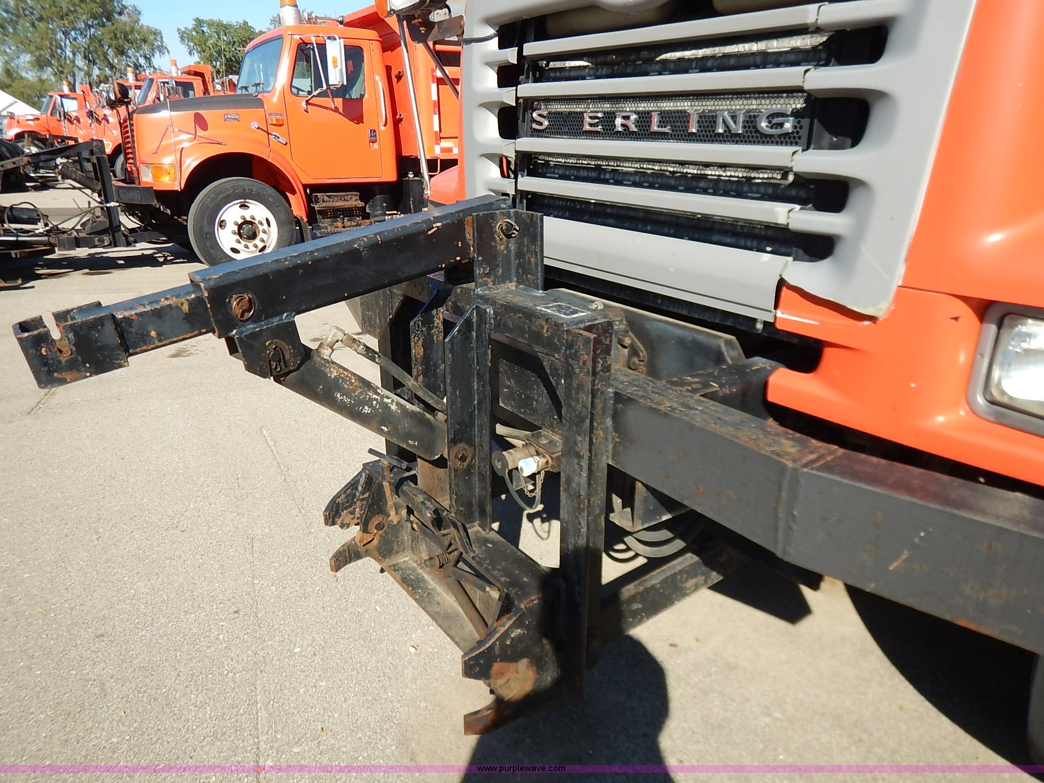 Purple Wave is selling a used Construction Dump Truck in Kansas. This item is a 2001 Sterling LT7501 dump truck with the following: 197,213 miles on odometer, 8,991 hours on meter, Caterpillar 3126 7.2L L6 turbo diesel engine, 250 HP, Bad valve, Eaton Fuller RTO-107108-AS Smart shift transmission, Tandem axle, AC and heat, Cruise, AM/FM, Heated mirrors, Air suspension seat, Block heater, Front mounted PTO, Warren steel dump bed, 15'L x 8'W, 9 to 11 cubic yard capacity, Roll-over tarp, Toolboxes, Flink rotating trip snow plow, 11'W, Henki trip style wing plow, 8'W, Rusted, Warren V-Box spreader, Stainless steel construction, 9 cubic yard capacity, 200 gallon pre-wet side tanks, Electric controlled hydraulic system, Strobe lights, Front work lights, Backup alarm, Force SSC5100 spreader controls, Pintle hitch, Trailer wiring, Spring suspension, Air brakes, 6:43 gear ratio, 295/75R22.5 tires, Meritor RT-40-145 differentials, GVWR 53,200 lbs, FAWR 13,200 lbs, RAWR 20,000 lbs, Engine oil leak, Dents and scratches, KDOT ID 263-2130