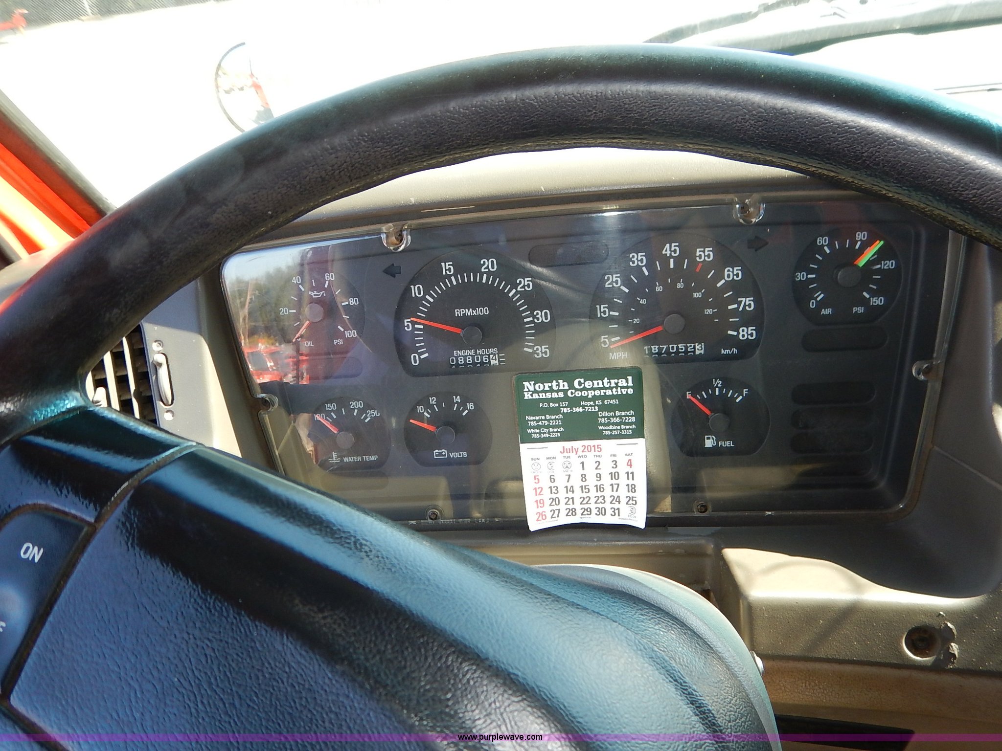 Purple Wave is selling a used Construction Dump Truck in Kansas. This item is a 2001 Sterling LT7501 dump truck with the following: 187,052 miles on odometer, 8,806 hours on meter, Caterpillar 3126 7.2L L6 turbo diesel engine, 250 HP, Serial 8YL92974, Allison MD3060P automatic transmission, Tandem axle, AC and heat, Cruise, AM/FM, Heated mirrors, Air suspension seat, Block heater, Front mounted PTO, Warren WFL650-13 steel dump bed, 15'L x 8'W, 9 to 11 cubic yard capacity, Roll-over tarp, Toolboxes, Flink rotating trip snow plow, 11'W, Warren V-Box spreader, Stainless steel construction, 9 cubic yard capacity, 200 gallon pre-wet side tanks, Electric controlled hydraulic system, Strobe lights, Front work lights, Backup alarm, Gressen spreader controls, Pintle hitch, Trailer wiring, Spring suspension, Air brakes, 6:43 gear ratio, 295/75R22.5 tires, Meritor RT-40-145 differentials, GVWR 53,200 lbs, FAWR 13,200 lbs, RAWR 20,000 lbs, Dents and scratches, Paint faded, Oil and coolant needs added weekly, KDOT ID 263-2120
