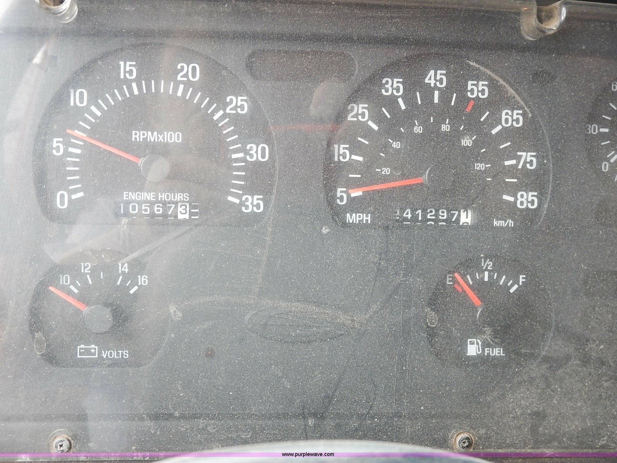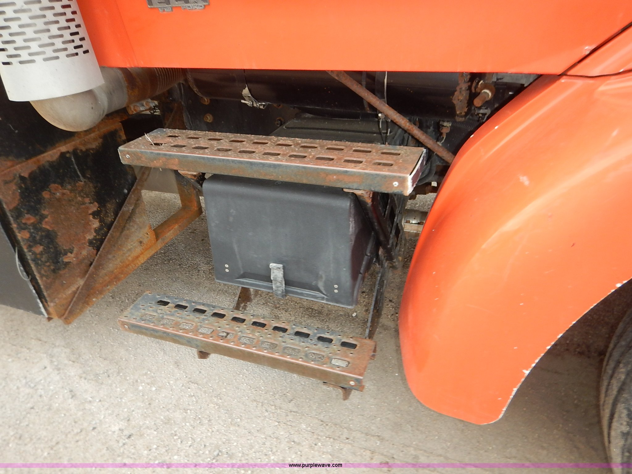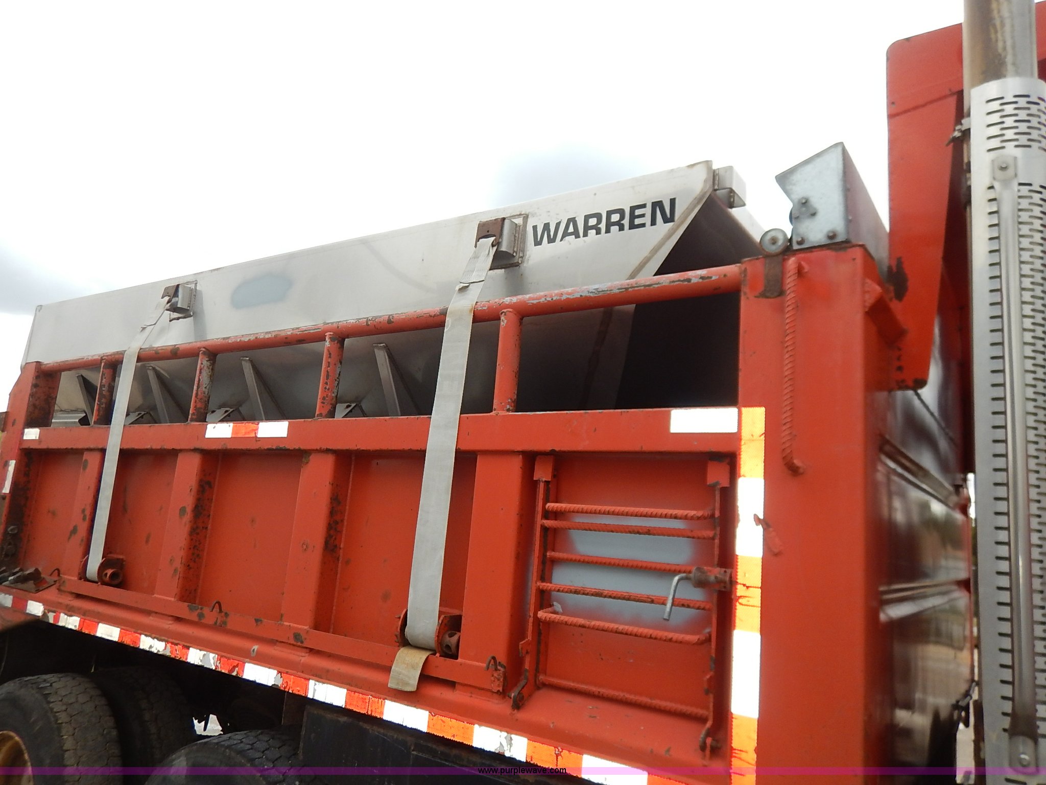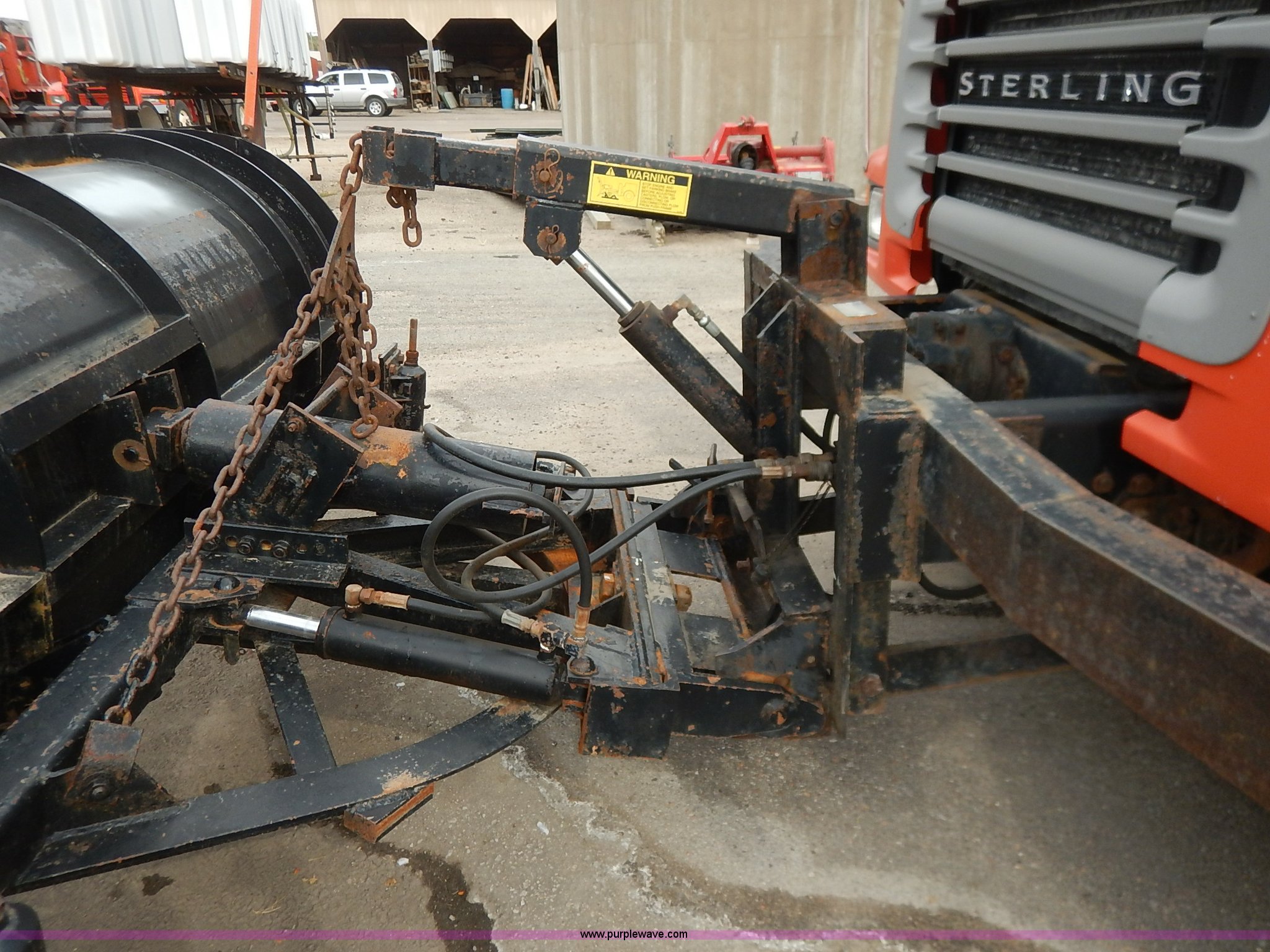 Purple Wave is selling a used Construction Dump Truck in Kansas. This item is a 2001 Sterling LT7501 dump truck with the following: 241,297 miles on odometer, 10,567 hours on meter, Caterpillar 3126 7.2L L6 turbo diesel engine, 250 HP, Serial 8YL87324, Allison automatic transmission, Tandem axle, AC and heat, Cruise, AM/FM, Heated mirrors, Air suspension seat, Block heater, Front mounted PTO, Warren 13'L x 8'W steel dump bed, Nine cubic yard capacity, Roll-over tarp, Flink snow plow, 11'W, Warren V-box stainless steel spreader, 13'L x 7'W, 200 pre-wet tanks, Greesen spreader controls, 1,900 gallon Varitec brine applicator, Model ACL420A, Serial 10126, Stand rusted, KDOT ID 762-3050, Strobe lights, Single fuel tank, Backup alarm, Spring suspension, Air brakes, 275/80R22.5 front tires, GVWR 53,200 lbs, FAWR 13,200 lbs, RAWR 20,000 lbs, Spreader and brine only operate in manual, Paint faded, Dents and scratches, Rust, Engine oil leaks, Hoist leaks, Front differential leaks, Lower cross plow piece missing, Plow and marker lights broken, KDOT ID 263-3100