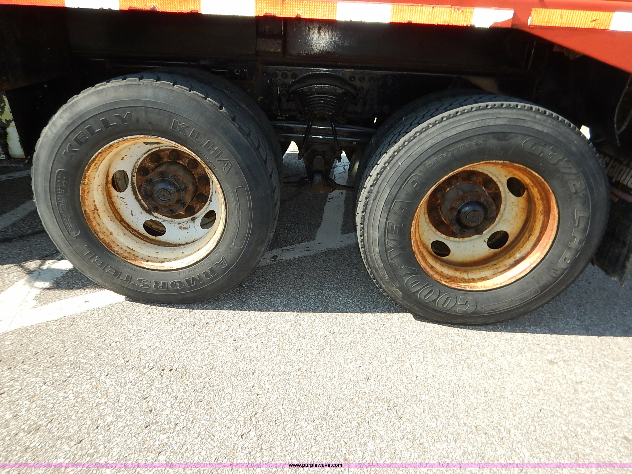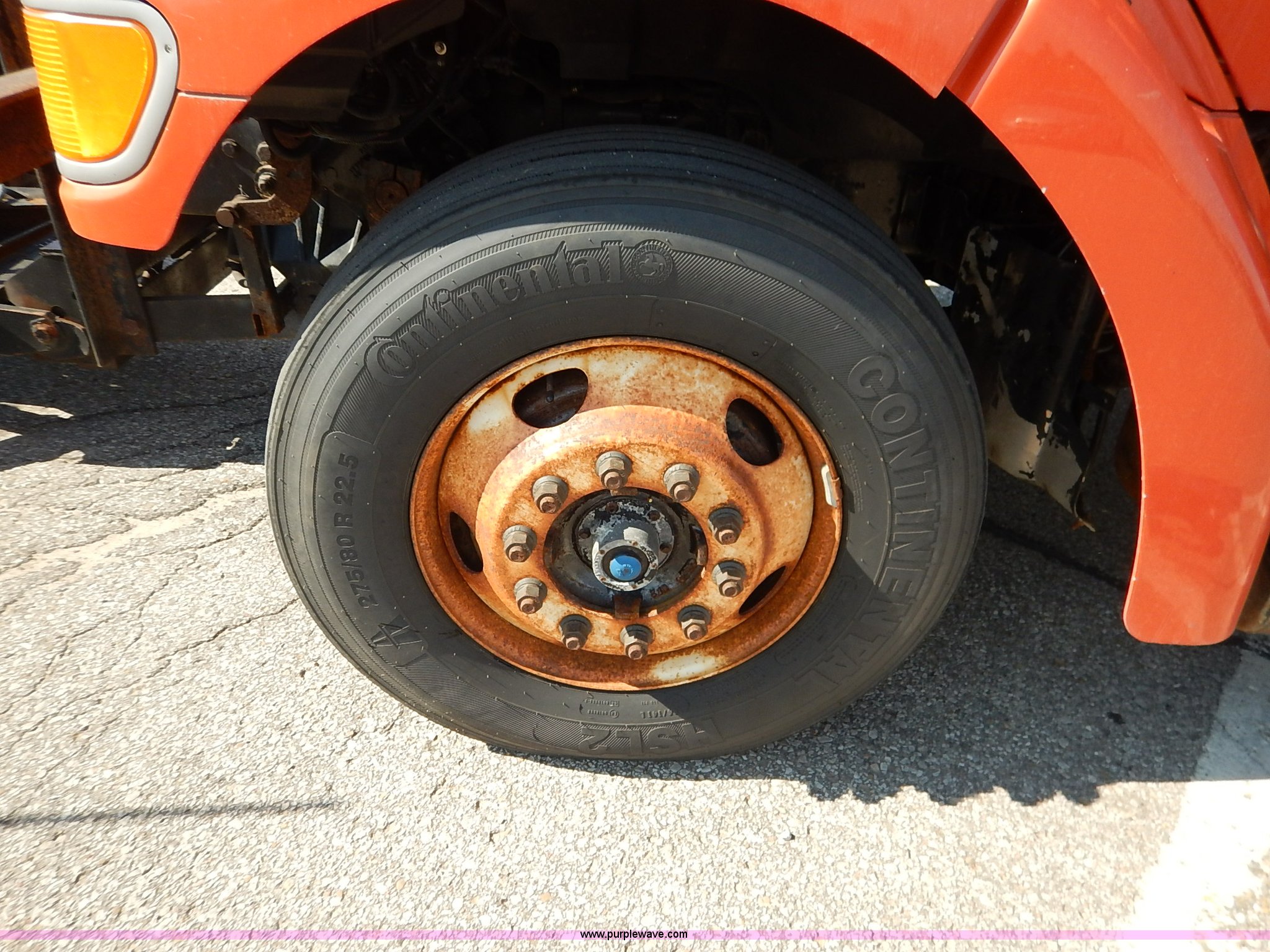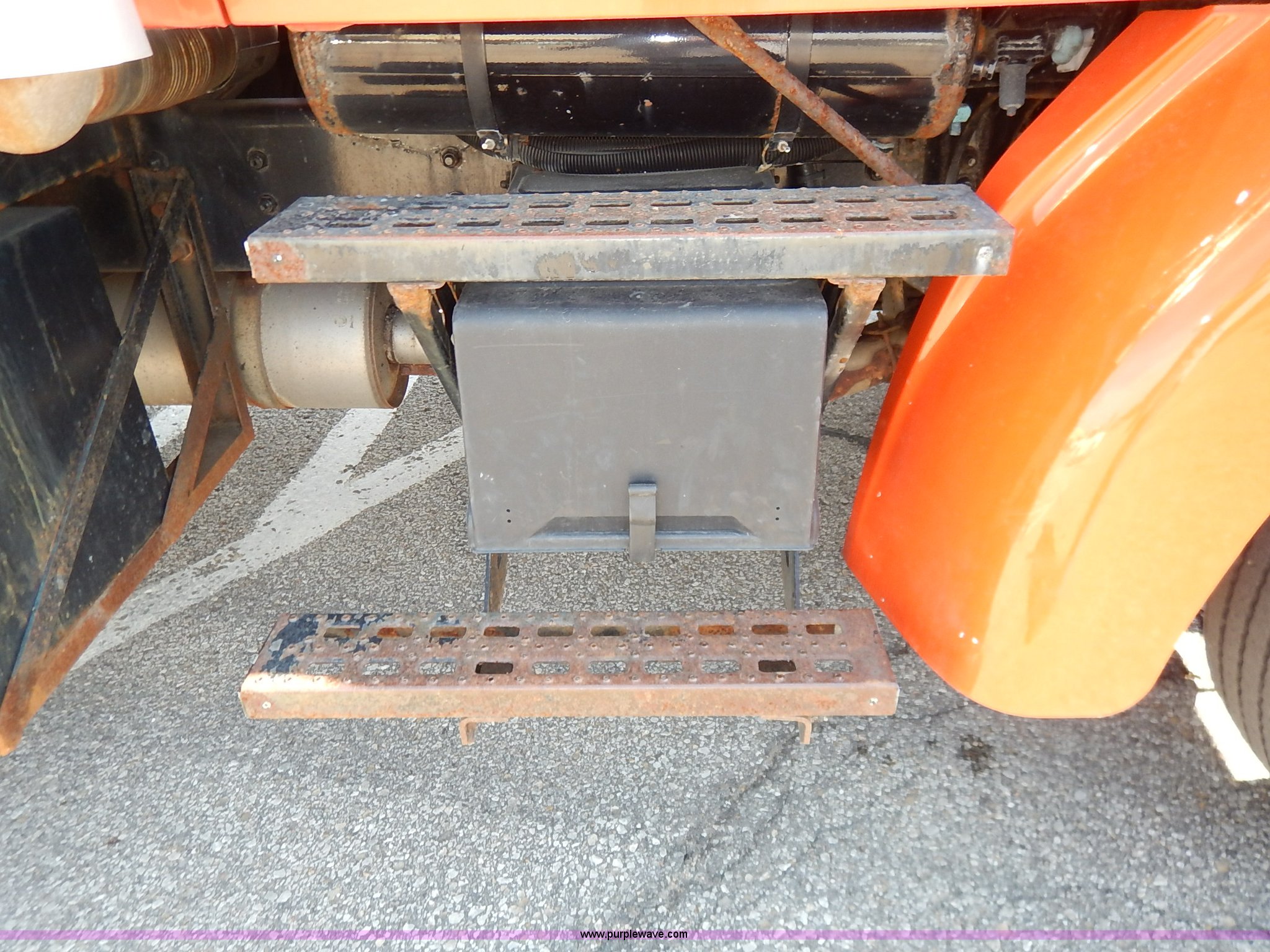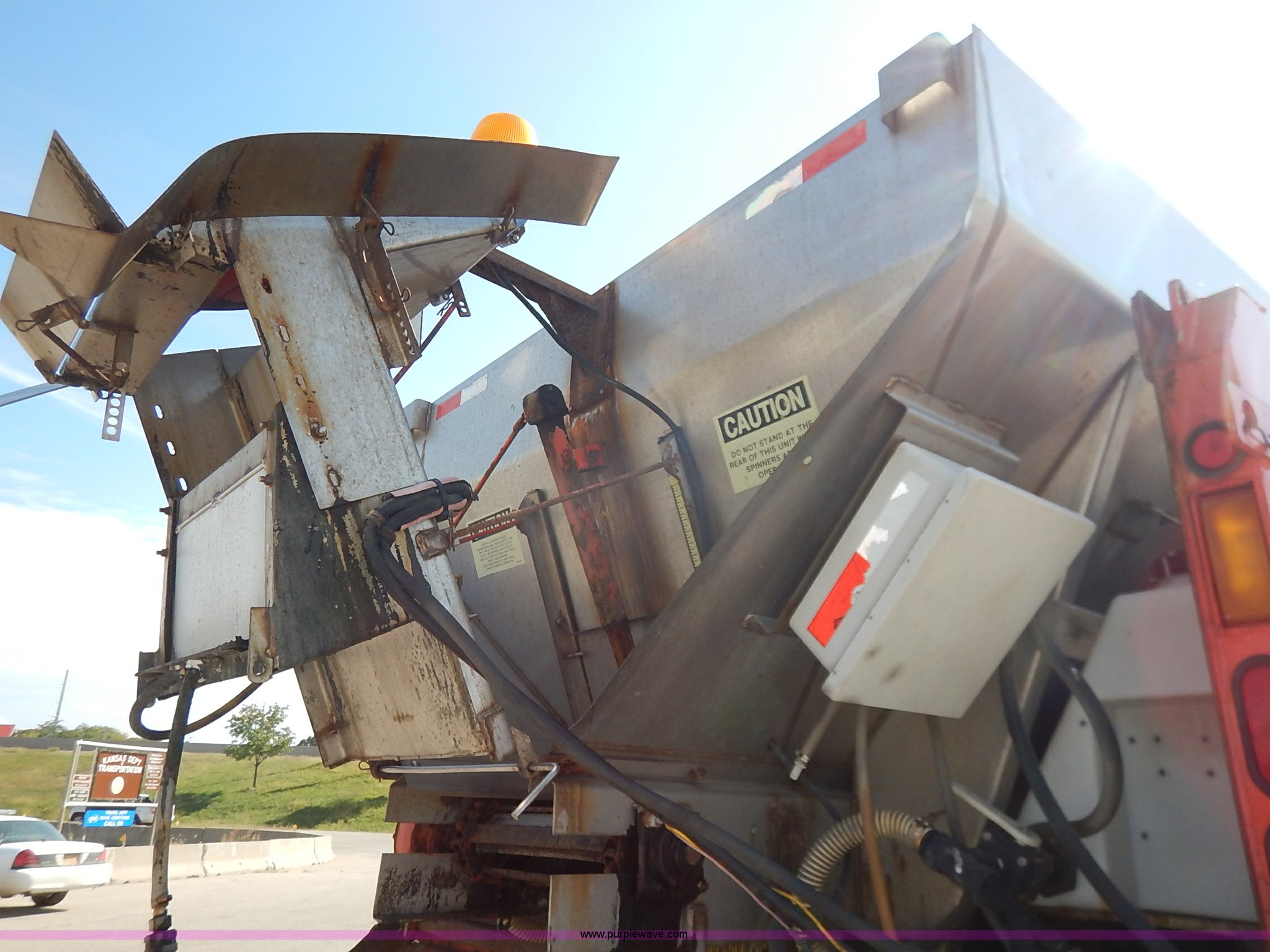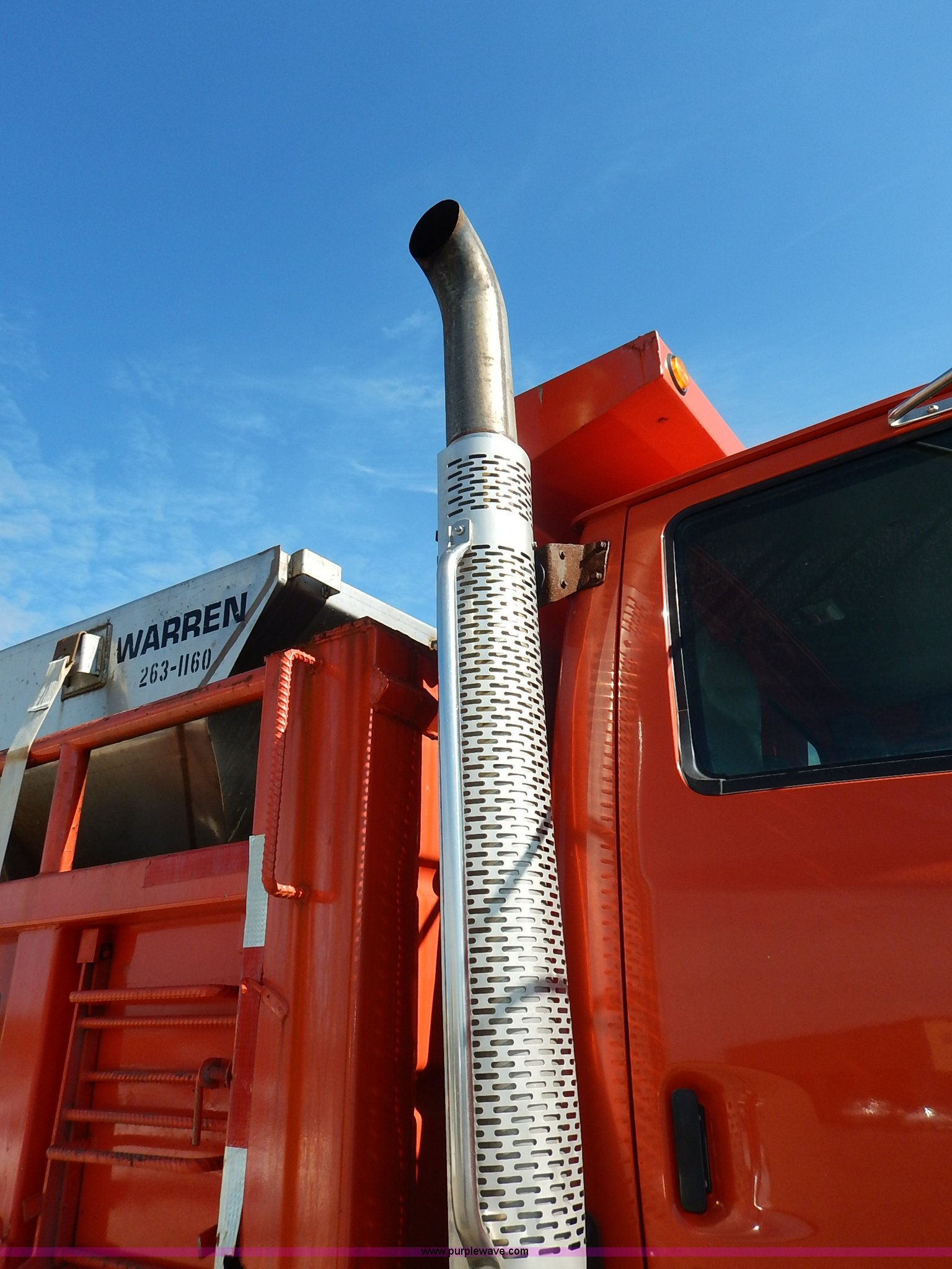Purple Wave is selling a used Construction Dump Truck in Kansas. This item is a 2001 Sterling LT7500 dump truck with the following: 115,740 miles on odometer, 11,176 hours on meter, Caterpillar 3126 7.2L L6 turbo diesel engine, 250 HP, Allison automatic transmission, Tandem axle, AC and heat, Cruise, AM/FM, Air suspension seat, Heated mirrors, Block heater, Strobe lights, Work lights, Air horn, Front mount PTO, Warren steel dump bed, 13'L x 8'W, Nine yard capacity, Flink 11'W plow, Reversible, Warren V-box spreader, 13' x 7', Stainless steel construction, 200 gallon pre-wet side tanks, Gresen spreader control, Toolboxes, Pintle hitch, Trailer wiring, Spring suspension, Air brakes, 15' wheelbase, 275/80R22.5 tires, GVWR 53,200 lbs, FAWR 13,200 lbs, RAWR 20,000 lbs, Paint faded, Dents, Scratches, Exhaust leak, Bed lift cylinder leaks, Rust, No end gate, KDOT ID 263-1160