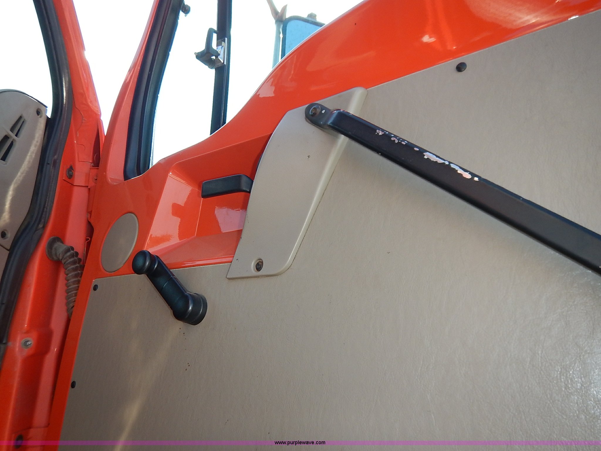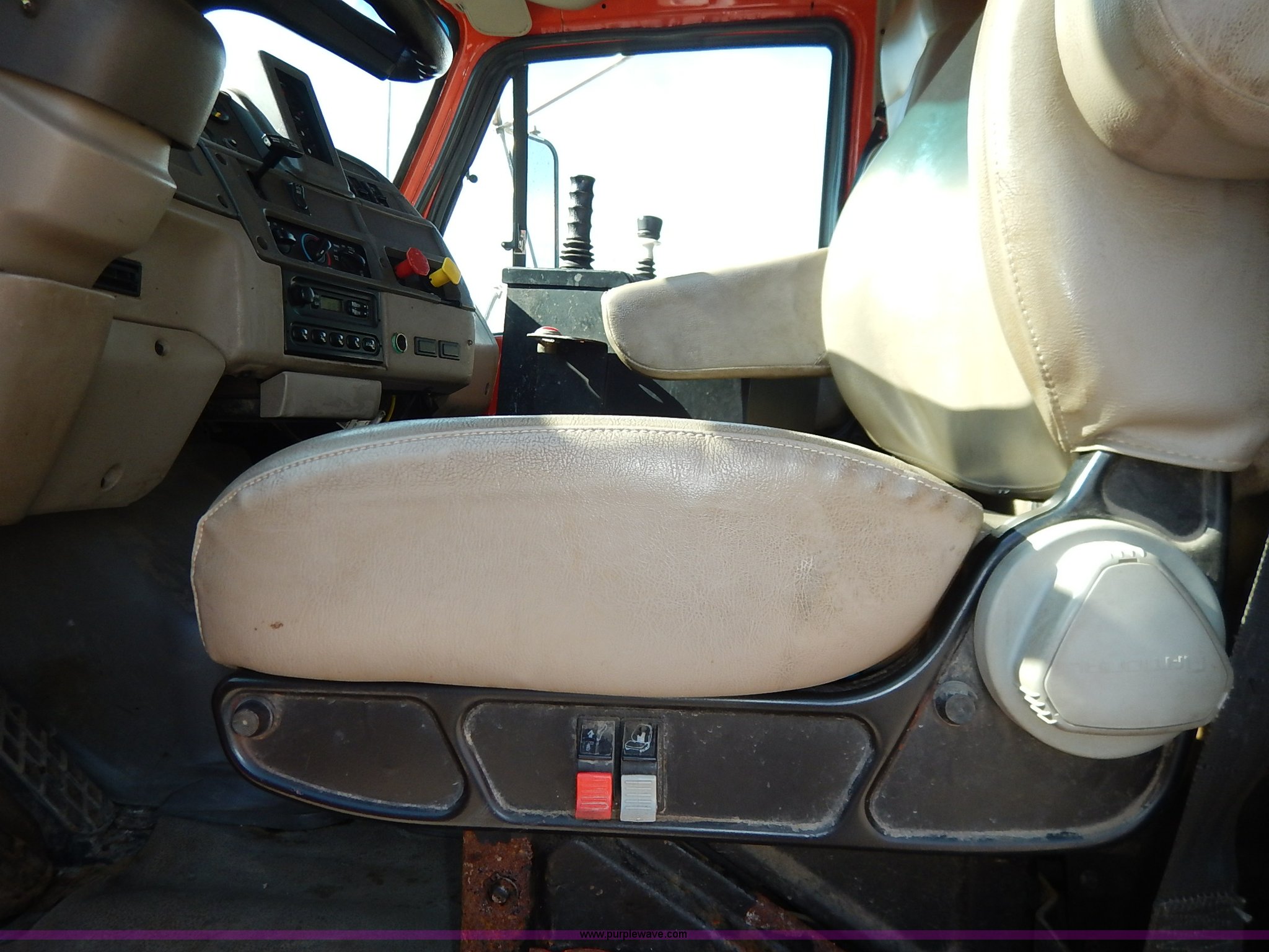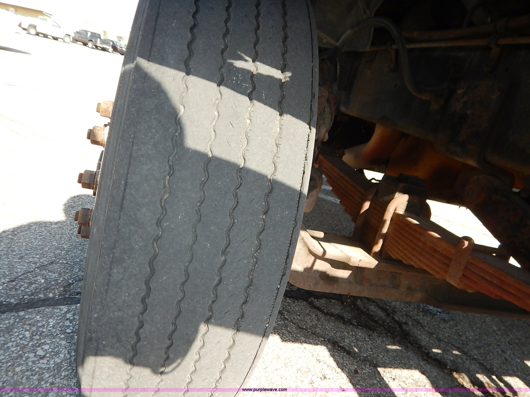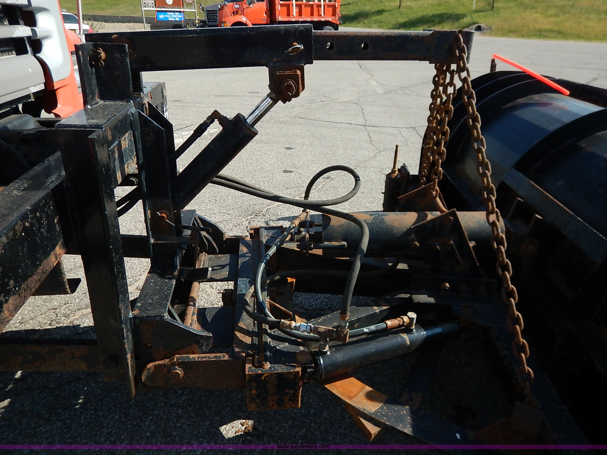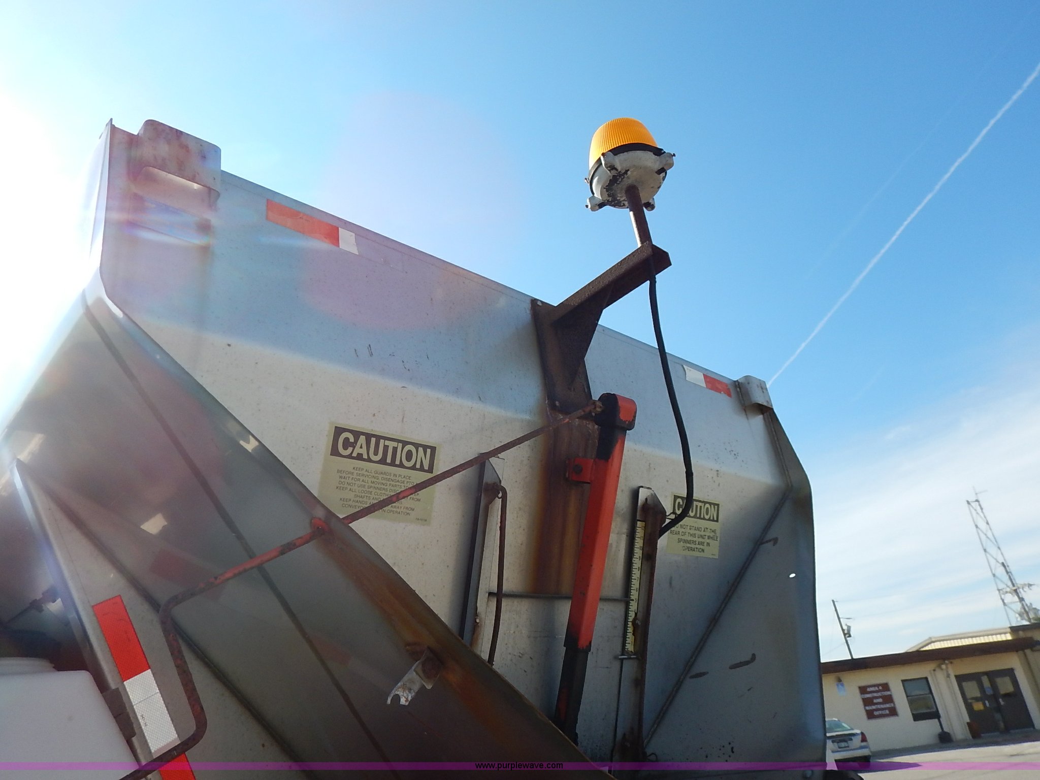 Purple Wave is selling a used Construction Dump Truck in Kansas. This item is a 2001 Sterling LT7500 dump truck with the following: 188,894 miles on odometer, 8,412 hours on meter, Caterpillar 3126 7.2L L6 turbo diesel engine, 250 HP, Allison automatic transmission, Tandem axle, AC and heat, Cruise, AM/FM, Air suspension seat, Heated mirrors, Block heater, Strobe lights, Work lights, Air horn, Front mount PTO, Warren steel dump bed, 13'L x 8'W, Nine yard capacity, Rollover tarp, Flink 11'W plow, Reversible, Warren V-box spreader, 13' x 7', Stainless steel construction, 200 gallon pre-wet side tanks, Force SSC1500 spreader controls, Toolboxes, Pintle hitch, Trailer wiring, Spring suspension, Air brakes, 15' wheelbase, 275/80R22.5 tires, GVWR 53,200 lbs, FAWR 13,200 lbs, RAWR 20,000 lbs, Dents, Scratches, Dead battery, Driver side front mirror broken, Paint faded, Wiring issues, Cosmetic damage to front fender, Rust, End gate missing, KDOT ID 263-1140