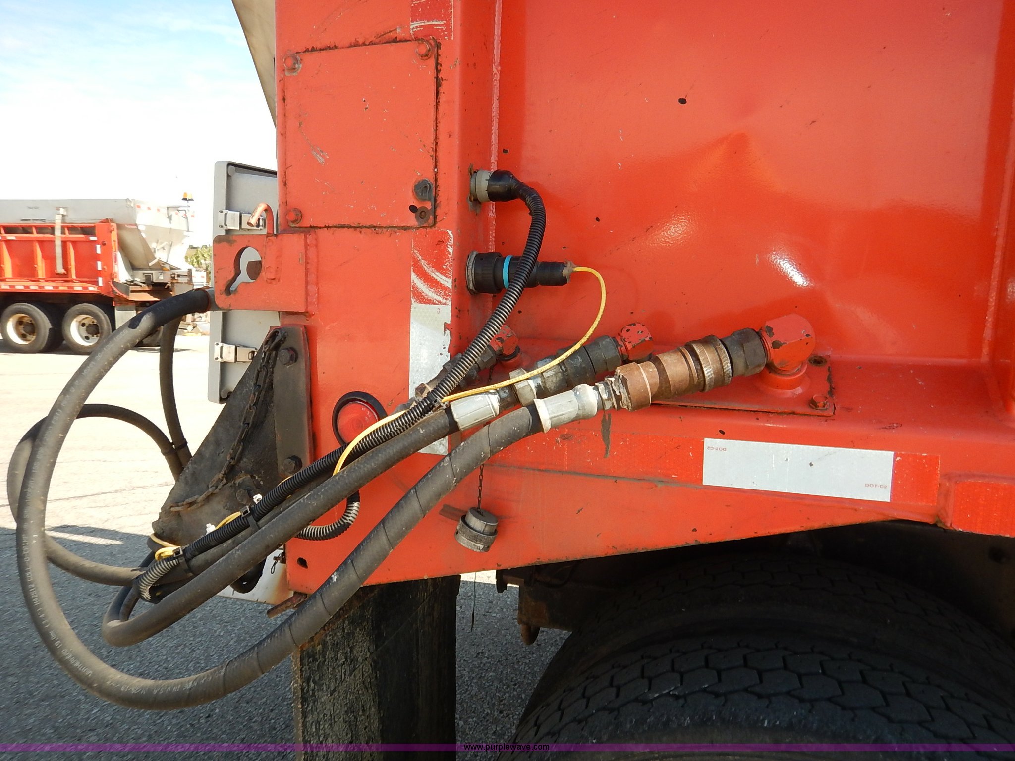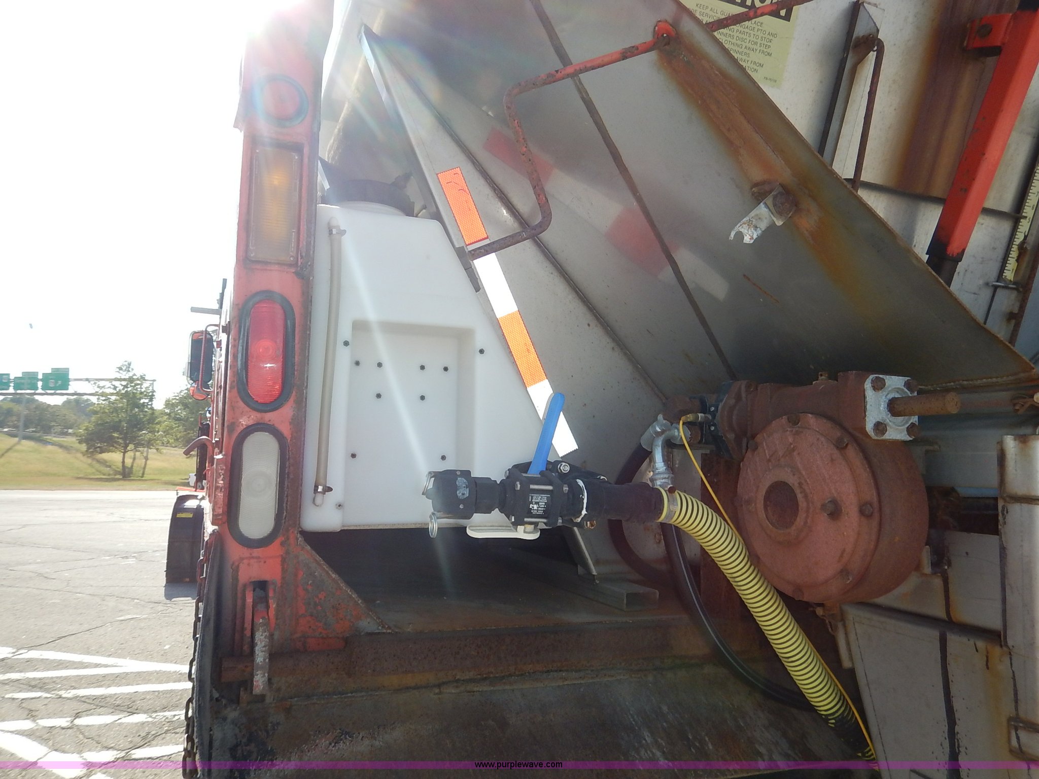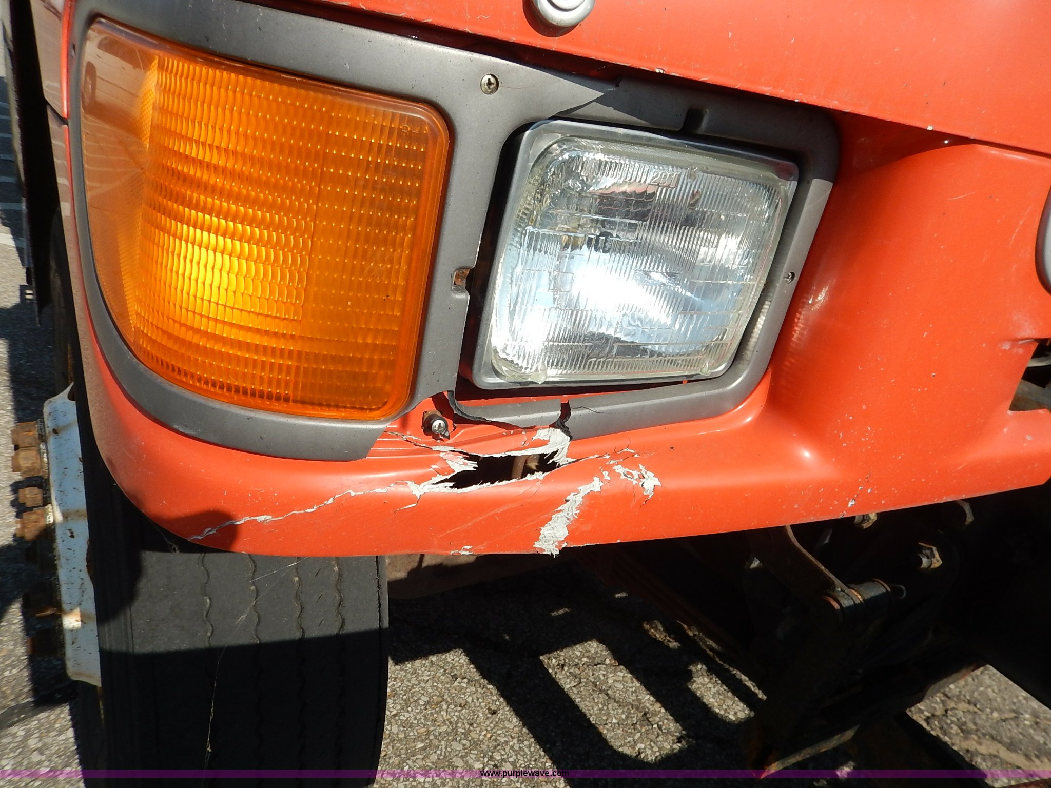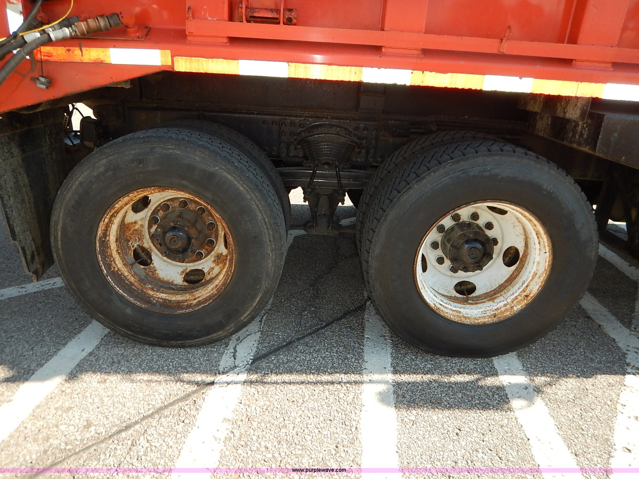 Purple Wave is selling a used Construction Dump Truck in Kansas. This item is a 2001 Sterling LT7500 dump truck with the following: 188,894 miles on odometer, 8,412 hours on meter, Caterpillar 3126 7.2L L6 turbo diesel engine, 250 HP, Allison automatic transmission, Tandem axle, AC and heat, Cruise, AM/FM, Air suspension seat, Heated mirrors, Block heater, Strobe lights, Work lights, Air horn, Front mount PTO, Warren steel dump bed, 13'L x 8'W, Nine yard capacity, Rollover tarp, Flink 11'W plow, Reversible, Warren V-box spreader, 13' x 7', Stainless steel construction, 200 gallon pre-wet side tanks, Force SSC1500 spreader controls, Toolboxes, Pintle hitch, Trailer wiring, Spring suspension, Air brakes, 15' wheelbase, 275/80R22.5 tires, GVWR 53,200 lbs, FAWR 13,200 lbs, RAWR 20,000 lbs, Dents, Scratches, Dead battery, Driver side front mirror broken, Paint faded, Wiring issues, Cosmetic damage to front fender, Rust, End gate missing, KDOT ID 263-1140