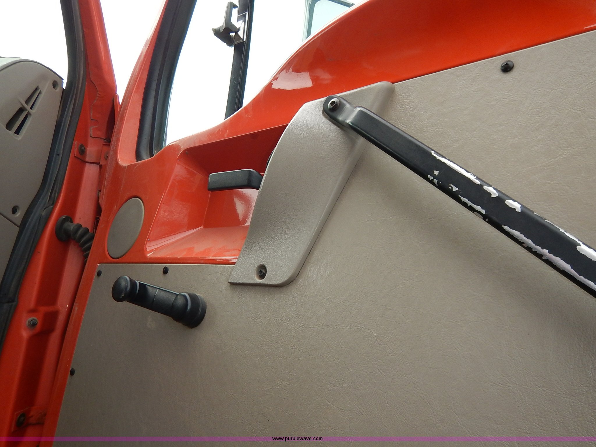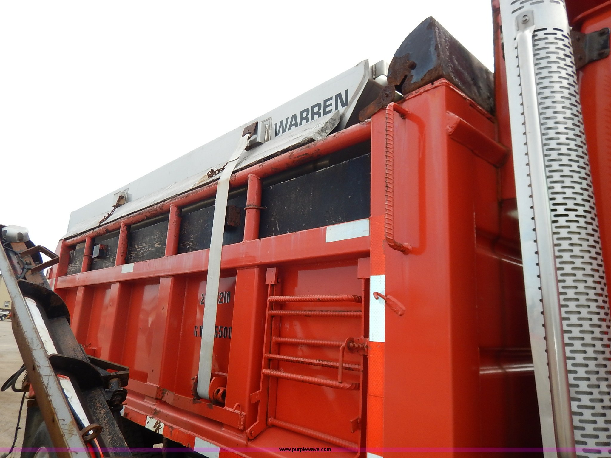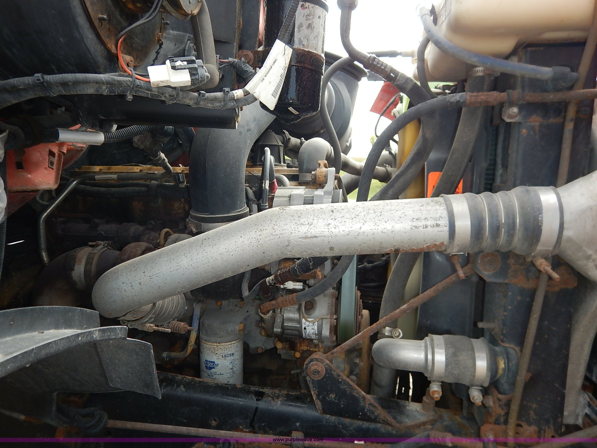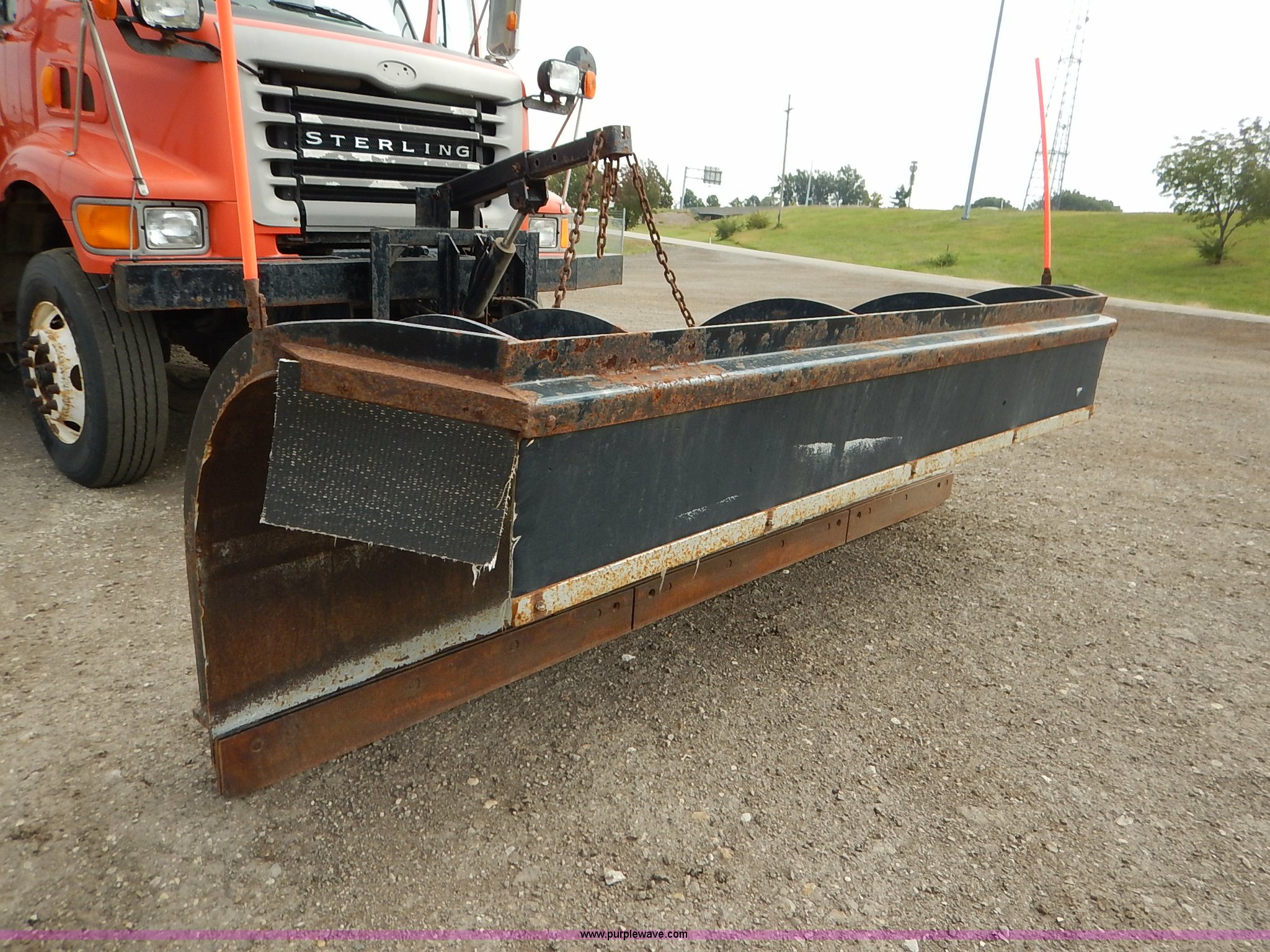 Purple Wave is selling a used Construction Dump Truck in Kansas. This item is a 2001 Sterling LT7500 dump truck with the following: 189,465 miles on odometer, 7,358 hours on meter, Caterpillar 3126 7.2L L6 turbo diesel engine, 330 HP, Eaton Fuller Autoshift transmission, Tandem axle, Inter-axle differential lock, AC and heat, AM/FM, Heated mirrors, Air suspension seat, Front mounted PTO, 13'L x 96"W steel dump bed, 45" side height, Single ram hoist, Air operated end gate, Flink snow plow, 11'W, Henke 8'W wing plow, Warren spreader, Nine cubic yard capacity, Poly pre-wet tanks, Single fuel tank, Spring suspension, Air brakes, 295/75R22.5 front tires, GVWR 53,200 lbs, FAWR 13,200 lbs, IAWR 20,000 lbs, RAWR 20,000 lbs, Brake pedal sticks, Dump bed goes up slowly, Paint faded and scratched, Needs injectors, KDOT ID 263-1210