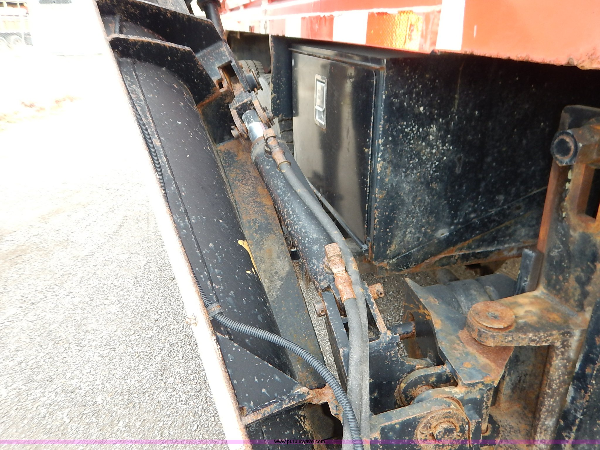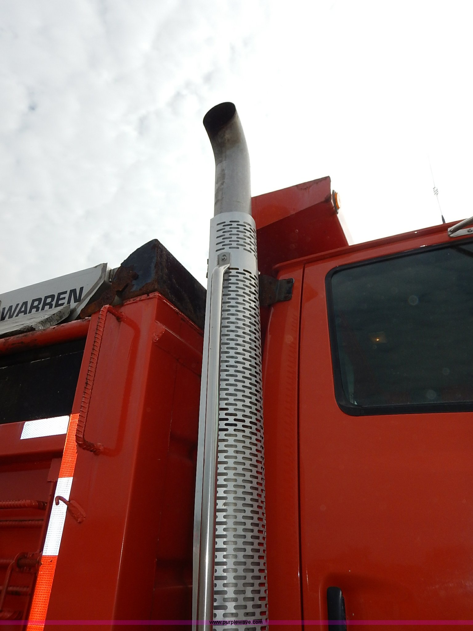 2001 Sterling LT7500 dump truck. 189,465 miles on odometer, 7,358 hours on meter, Caterpillar 3126 7.2L L6 turbo diesel engine 330 HP, Eaton Fuller Autoshift transmission, Tandem axle, Inter-axle differential lock, AC and heat, AM/FM, Heated mirrors, Air suspension seat, Front mounted PTO, 13'L x 96"W steel dump bed 45" side height, Single ram hoist, Air operated end gate, Flink snow plow 11'W, Henke 8'W wing plow, Warren spreader Nine cubic yard capacity, Poly pre-wet tanks, Single fuel tank, Spring suspension, Air brakes, 295/75R22.5 front tires, GVWR 53,200 lbs, FAWR 13,200 lbs, IAWR 20,000 lbs, RAWR 20,000 lbs, Brake pedal sticks, Dump bed goes up slowly, Paint faded and scratched, Needs injectors, KDOT ID 263-1210. Titles will be distributed after confirmation of payment and removal. 2FZHATAK91AH88855. View equipment video. Kansas Department of Transportation - Topeka. 101 Gage Blvd. Topeka, KS 66606