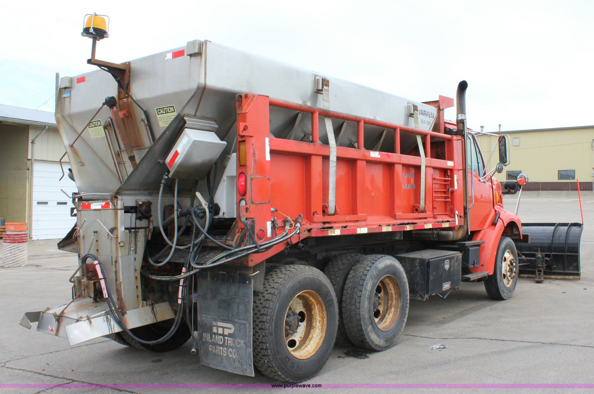 Purple Wave is selling a used Construction Dump Truck in Kansas. This item is a 2001 Sterling LT7500 dump truck with the following: 132,360 miles on odometer, 14,209 hours on meter, Caterpillar 3126 7.2L L6 turbo diesel engine, 330 HP, Allison automatic transmission, Tandem axle, Inter-axle differential lock, AC and heat, AM/FM, Heated mirrors, Air suspension seat, 13'L x 96"W steel dump bed, 45" side height, Single ram hoist, Air operated end gate, Toolboxes, Flink snow plow, 11'W, Warren spreader, 9 cubic yard capacity, Poly pre-wet tanks, Single fuel tank, Pintle hitch, Rear glad hand connections, Spring suspension, Air brakes, 177" wheelbase, 275/80R22.5 front tires, GVWR 53,200 lbs, FAWR 13,200 lbs, IAWR 20,000 lbs, RAWR 20,000 lbs, Paint faded and scratched, Oil leaks, Bed cylinder leaks, Blower motor needs replaced, Windshield cracked, Severe rust, Brake pedal sticks, KDOT ID 263-1280