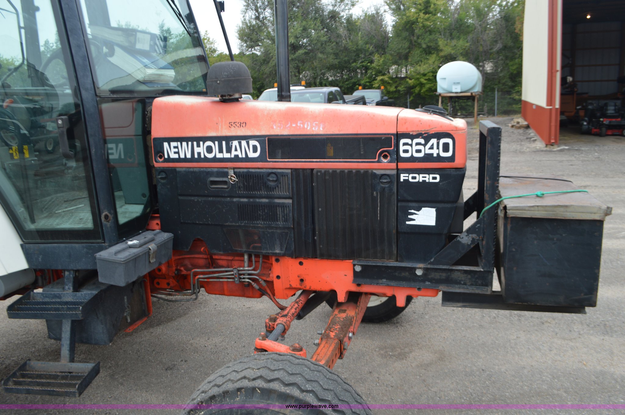 Purple Wave is selling a used Tractor in Kansas. This item is a 1998 Ford New Holland 6640SL tractor with the following: 5,406 hours on meter, Four cylinder diesel engine, Powershift transmission, 12F-12R gears, AC and heat, AM/FM, Three point, Top link, 540, rear hydraulic remote sets, 11-16 front tires, 18.4-30 rear tires, 93"W front axle, 100"W rear axle, Battery dead, Left hood hinge will not open from the outside, Serial 087506B, KDOT ID 352-5058