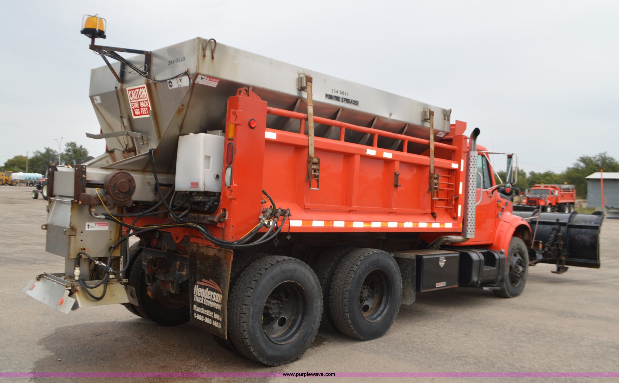 1999 International 4900 dump truck. 179,858 miles on odometer, 8,688 hours on meter, International DT530 8.7L L6 diesel engine, Allison MD3060 automatic transmission, Tandem axle, Inter-axle differential lock, Heat, Cruise, Heated mirrors, Air suspension seat, Block heater, Front mounted PTO, 13'L x 8'W steel dump bed 42" side board height, Monroe snow plow 11'W, Monroe stainless steel spreader Nine cubic yard capacity, Single fuel tank, Pintle hitch, Spring suspension, Air brakes, 176" wheelbase, 275/80R22.5 tires, Rust, Difficult to start, Vehicle will not idle, Tires worn, Batteries dead, KDOT ID 264-5049. Titles will be distributed after confirmation of payment and removal. 1HTSHADR7XH678937. View equipment video. Kansas Department of Transportation - Hutchinson. 500 N Hendricks. Hutchinson, KS 67504