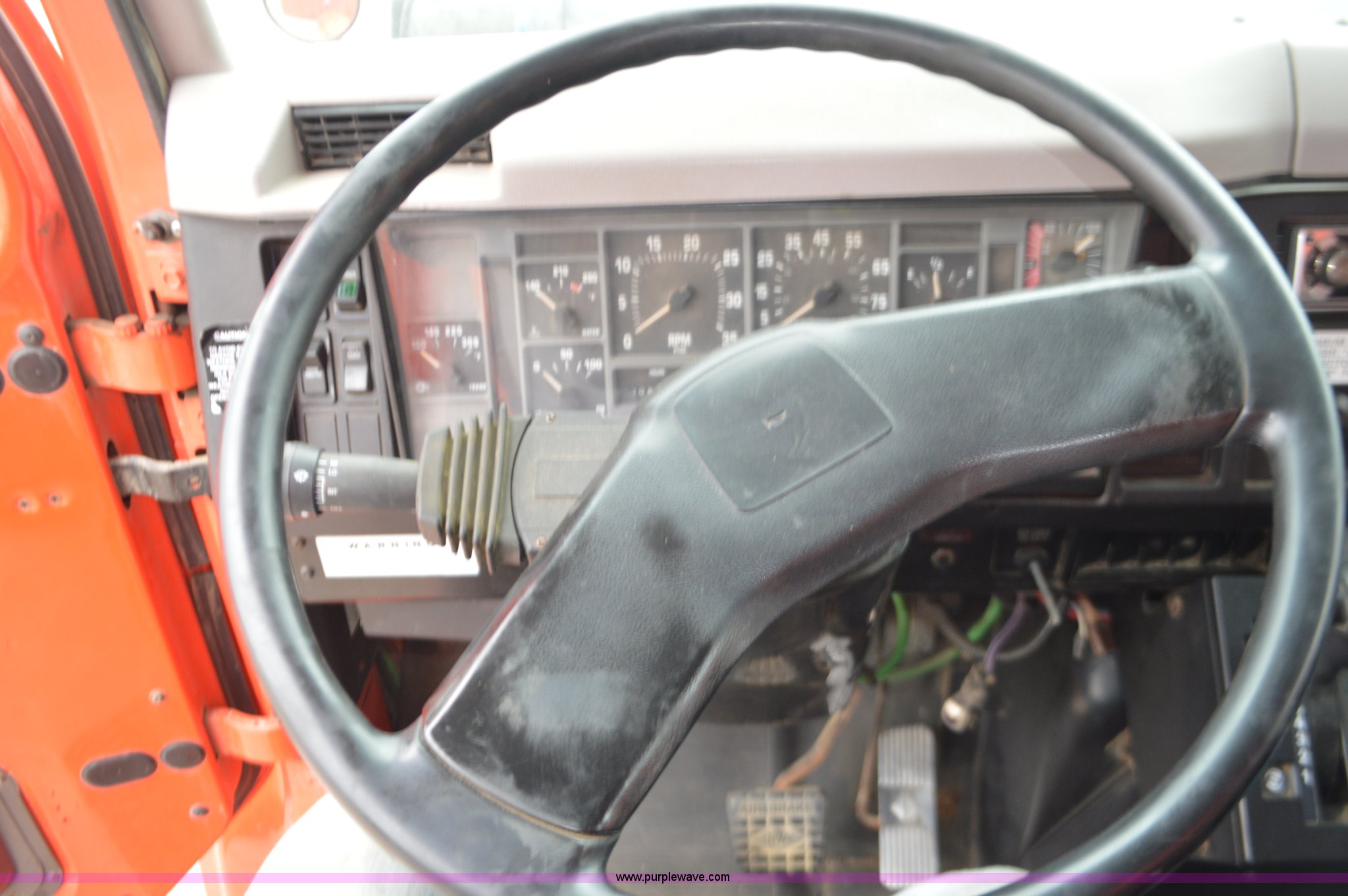 Purple Wave is selling a used Construction Dump Truck in Kansas. This item is a 1999 International 4900 dump truck with the following: 179,858 miles on odometer, 8,688 hours on meter, International DT530 8.7L L6 diesel engine, Allison MD3060 automatic transmission, Tandem axle, Inter-axle differential lock, Heat, Cruise, Heated mirrors, Air suspension seat, Block heater, Front mounted PTO, 13'L x 8'W steel dump bed, 42" side board height, Monroe snow plow, 11'W, Monroe stainless steel spreader, Nine cubic yard capacity, Single fuel tank, Pintle hitch, Spring suspension, Air brakes, 176" wheelbase, 275/80R22.5 tires, Rust, Difficult to start, Vehicle will not idle, Tires worn, Batteries dead, KDOT ID 264-5049