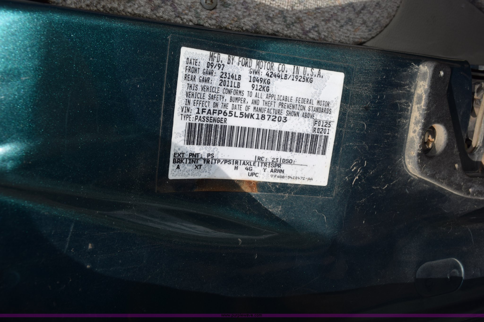 1998 Ford Contour LX. 152,755 miles on odometer, 2.5L V6 DOHC 24V gas engine, Automatic transmission, AC and heat, Tilt, Cruise, AM/FM/cassette, Manual windows and locks, Cloth interior, 185/65R14 tires, Interior/exterior cosmetic damage, Cracked windshield, Case# 15C035714. Vehicle is abandoned. Condition and history are unknown. No additional information is available. Vehicle does not have keys unless notated otherwise in the item listing.. View City Of Wichita Terms for title acquisition and item removal requirements.. 1FAFP65L5WK187203. Tow Service Inc.. 3760 South Broadway. Wichita, KS 67216