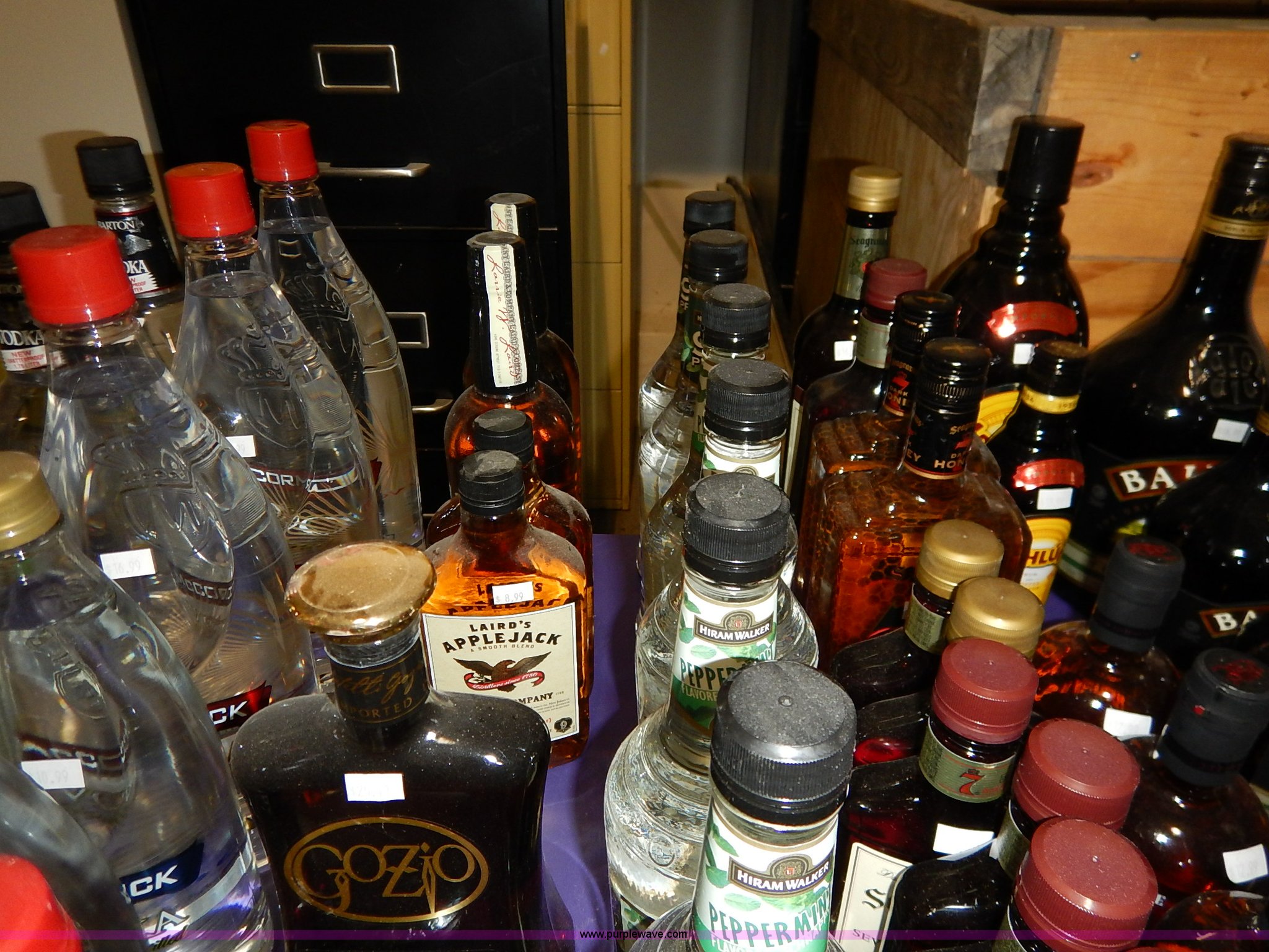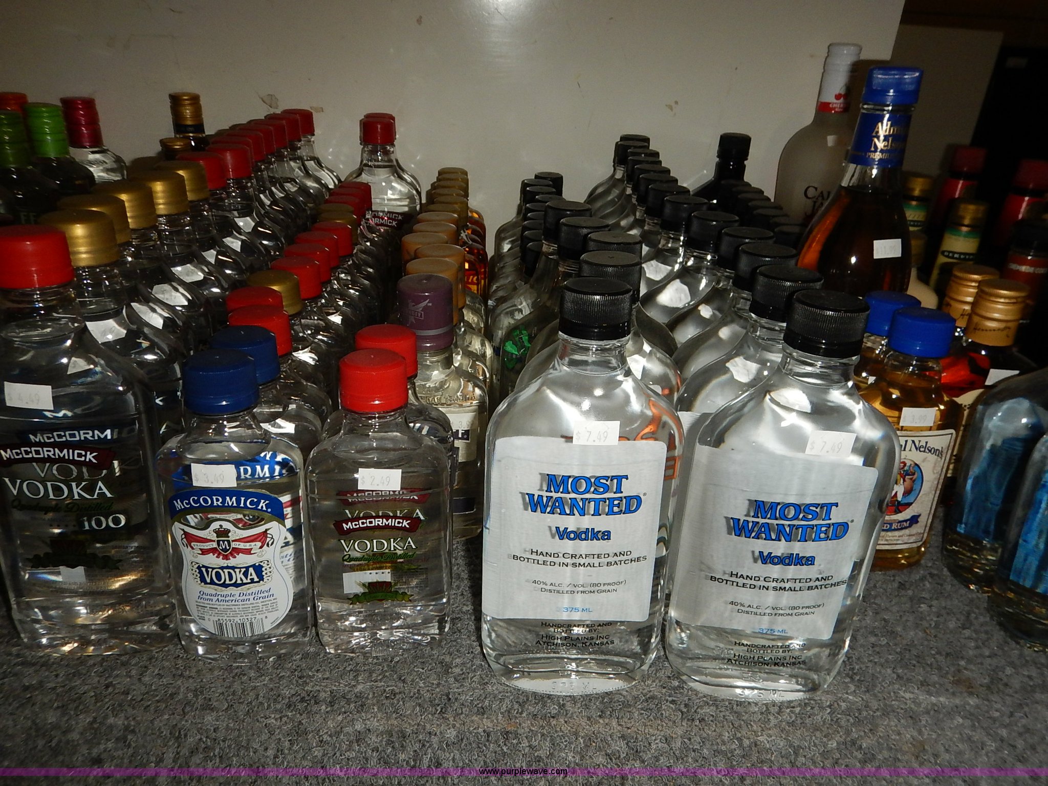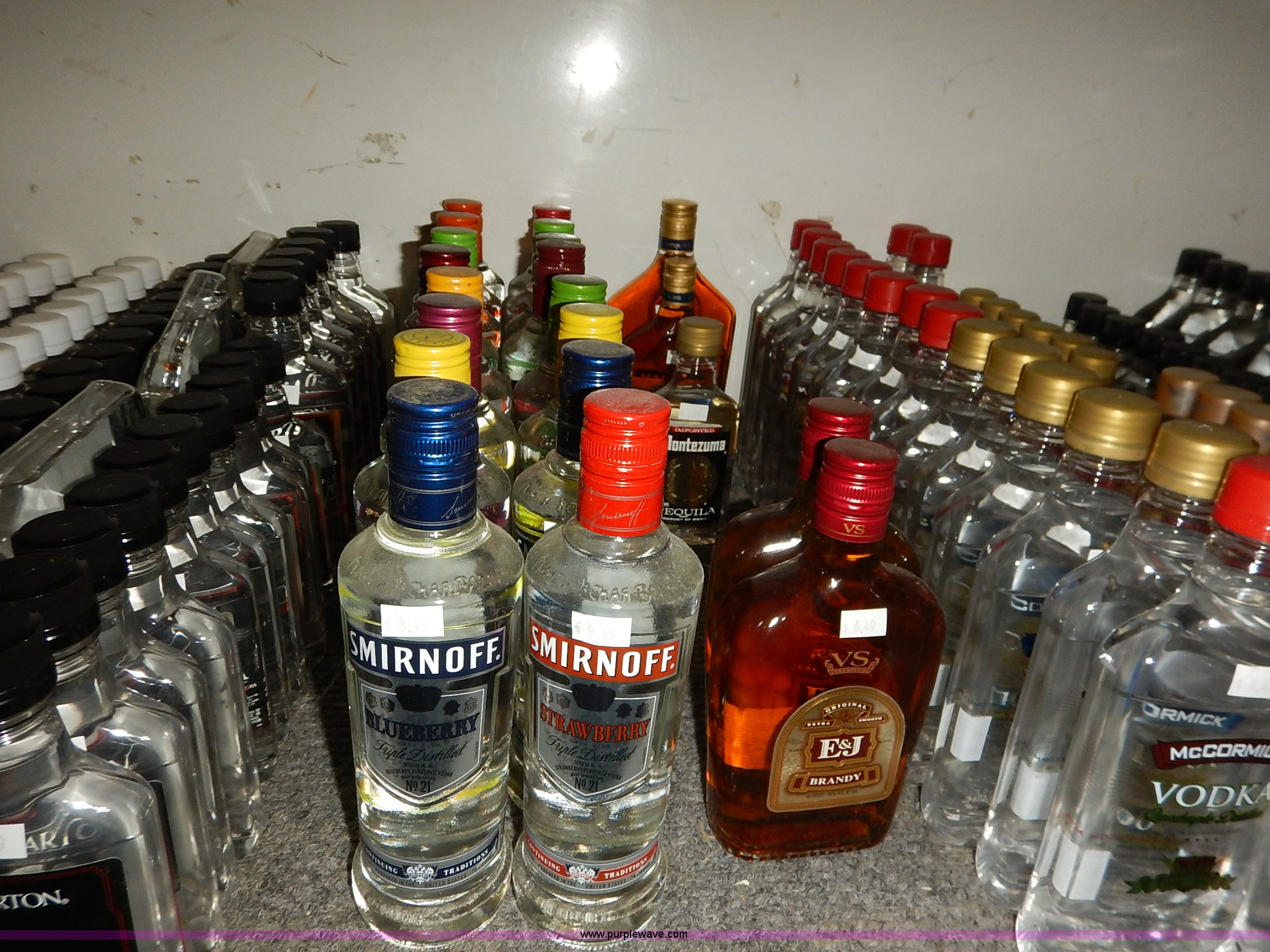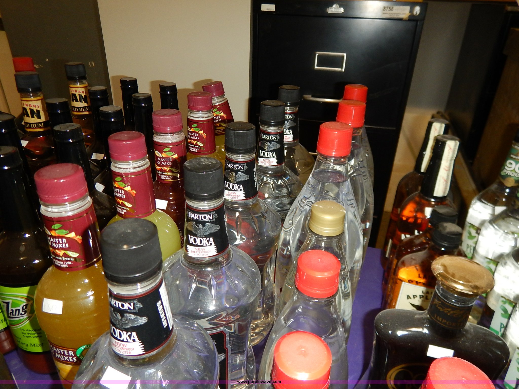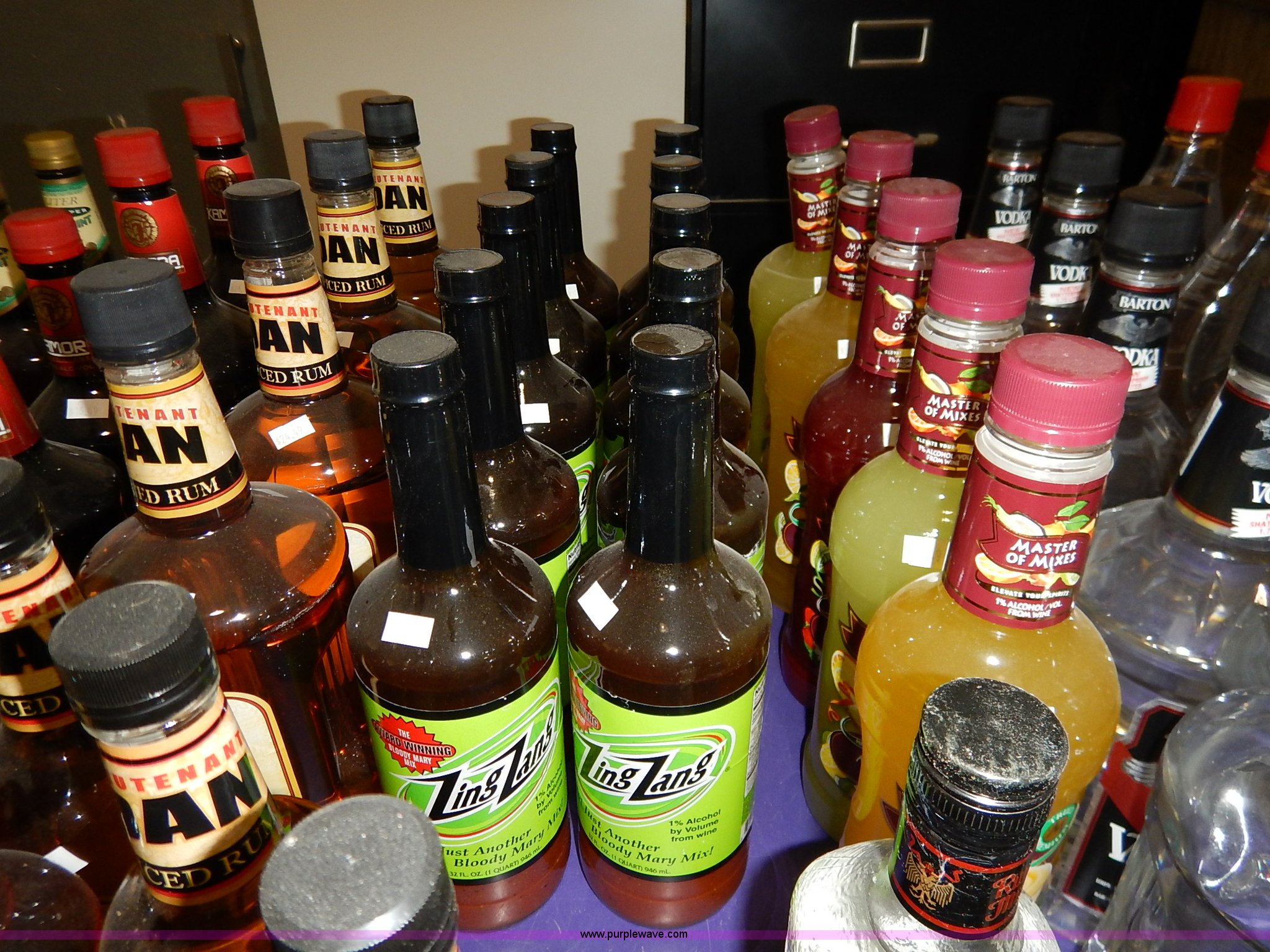 Purple Wave is selling a used All Other Household Items in Kansas. This item is a Assorted alcohol with the following: (4) Makers Mark whiskey 50 ml, (2) Snake River Stampede Canadian whiskey 50 ml, Pendleton Canadian whiskey 50 ml, (2) Buffalo Trace Kentucky whiskey 50 ml, (9) Chivas Regal Scotch whiskey 50 ml, Most Wanted, (3) vodka 50 ml, (10) Pioneer whiskey 50 ml, (2) moonshine 50 ml, (8) various Shark Attack freeze tubes, Viaka vodka, 1.75 liter, (9) 375 ml, (35) 200 ml, Barton vodka, (6) 375 ml, (31) 200 ml, Smirnoff flavorded vodka, Strawberry 375 ml, Watermelon 375 ml, (2) orange 375 ml, (2) blueberry 375 ml, Passion fruit 375 ml, Raspberry 375 ml, (2) citrus 375 ml, (2) green apple 375 ml, Cherry 375 ml, Cranberry 375 ml, (2) lime 375 ml, (2) E&J brandy 375 ml, Montezuma tequila 200 ml, Martell V.S. fine cognac 200 ml, Martell V.S. fine cognac 375 ml, McCormick vodka, (11) original 375 ml, (11) original 200 ml, (5) 100 proof 375 ml, (3) 100 proof 200 ml, (2) Blue label 200 ml, Smirnoff flavored vodka, Black cherry 200 ml, (5) vanilla 200 ml, (6) McCormick Special Reserve American whiskey 200 ml, Most Wanted vodka, (14) 375 ml, (8) 200 ml, (2) Most Wanted gin 375 ml, (2) Most Wanted tequila 375 ml, (2) New Amsterdam vodka 375 ml, (2) Hennessy Very Special cognac 200 ml, Bartenders Bananna 200 ml, Ice 101 peppermint schnapps 375 ml, Calico Jack cherry rum 750 ml, Admiral Nelsons spiced rum, 750 ml, (2) 200 ml, Dekuyper flavored schnapps, Hot cinnamon 375 ml, (3) peachtree 200 ml, Buttershots 200 ml, (3) hot cinnamon 200 ml, (4) Canadian Mist whiskey 200 ml, Dekuyper Creme de Cocoa 750 ml, Dekuyper spearmint schnapps, 750 ml, (2) 1 liter, Kamora Coffee liqueur, (5) 375 ml, (2) 750 ml, (2) 1.75 liter, Lieutenant Dan spiced rum, (4) 1.75 liter, (8) 750 ml, (10) Zing Zang bloody mary mix 946 ml, Rumple Minze pepermint schnapps, 375 ml, 750 ml, (7) Barton vodka 1.75 liter, Master of mixers, Sweet-n-sour 1 liter, Margarita 1 liter, Strawberry 1 liter, Sweet-n-sour 1.75 liter, Margarita 1.75 liter, Gozio Amaretto 750 ml, Licor 43 Cuarenta Y Tres 750 ml, McCormick vodka, (3) original 1.75 liter, (6) original 750 ml, (2) 100 proof 750 ml, Lairds Apple Jack brandy, (2) 375 ml, (2) 750 ml, Hirm Walker peppermint schnapps, (6) 750 ml, (5) 375 ml, (3) 200 ml, Disaronno Italian liquer, (2) 200 ml, 375 ml, (2) Wild Turkey American Honey whiskey 375 ml, Cruzan rum, (3) 9 spiced 750 ml, (2) 151 proof 750 ml, (2) coconut 750 ml, Bananna 750 ml, (2) vanilla 750 ml, Strawberry 750 ml, Ice 101 peppermint schnapps 750 ml, Cafe Boheme vanilla creme coffee vodka 750 ml, Carolans Irish cream 750 ml, Copa De Oro coffee liqueur, 750 ml, (2) 1 liter, 1.75 liter, Cragganmore Single Speyside malt 750 ml, Baileys Original Irish Cream, 375 ml, 750 ml, 1 liter, Dekuyper Vanilla Delight liqueur, 750 ml, 1 liter, Alize Wild Passion French cognac 750 ml, Saint Brendans Irish creme whiskey 375 ml, (4) Pendleton Canadian whiskey 375 ml, Kahlua rum, 375 ml, 1.75 liter, Seagrams whiskey, (2) V.O. Canadian 200 ml, (3) 7 American 200 ml, (2) V.O. Canadian 375 ml, (5) 7 American 375 ml, (2) Dark Honey 750 ml, 7 American 750 ml, V.O. Canadian 750 ml, Jose Cuervo Especial Gold tequila 200 ml, El Jimador Reposado tequila, (2) 200 ml, (2) 375 ml, Bombay Sapphire London dry gin, (2) 375 ml, 750 ml, 1 liter, Crown Royal whiskey, (2) 4.75 liter with box, (2) 1 liter with box, (4) 750 ml with box, (3) 375 ml with pouch, (5) 200 ml, Meletti Limoncello liqueur 750 ml, The Kraken black spiced rum 1.75 liter, (2) Bacardi Puerto Rican rum 1.75 liter, Norther Lights Canadian whiskey, 750 ml, 375 ml, (7) 200 ml, Romana black liquer 750 ml, Amarula cream liqueur 750 ml, (2) Beef Eater London dry gin 750 ml, Rum Chata, (2) 750 ml, (6) 375 ml, Mele Hi Italian liqueur, Cioccolate 750 ml, (2) Sambuca 750 ml, Hiram Walker flavored brandy, Sambuca 750 ml, (2) Original 750 ml, (3) cherry 375 ml, Blackberry 375 ml, Peach 375 ml, (2) apricot 375 ml, Southern Comfort, (3) 200 ml, (2) 375 ml, Sailor Jerry spiced rum, (2) 200 ml, (2) 375 ml, Lord Calvert Canadian whiskey, (4) 200 ml, (3) 375 ml, Christian Brothers V.S. brandy, (4) 200 ml, (4) 375 ml, Jagermeister German liqueur, 1 liter, 750 ml, (2) 375 ml, (11) 200 ml, (11) Knickers Irish cream 750 ml, Sobieski vodka, (5) 200 ml, (4) 375 ml, Fleischmanns extra dry gin, (6) 200 ml, (12) 375 ml, McCormick Special Reserve whiskey, 750 ml, (6) 7.75 liter