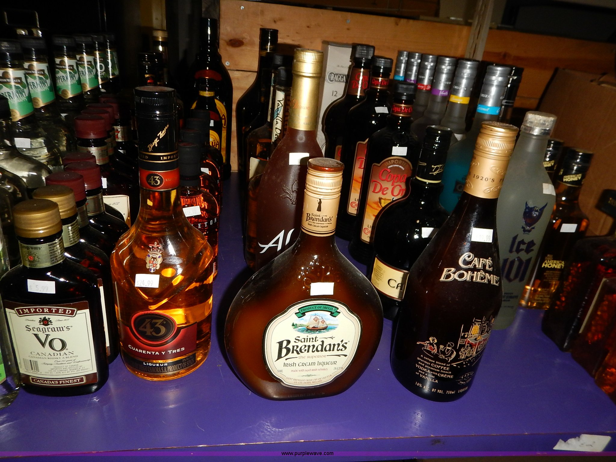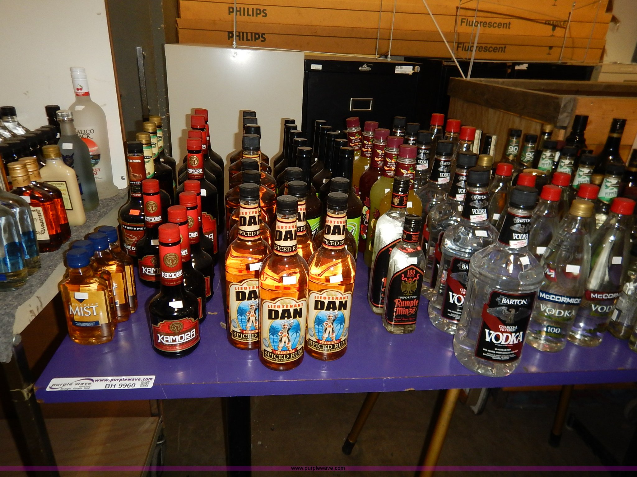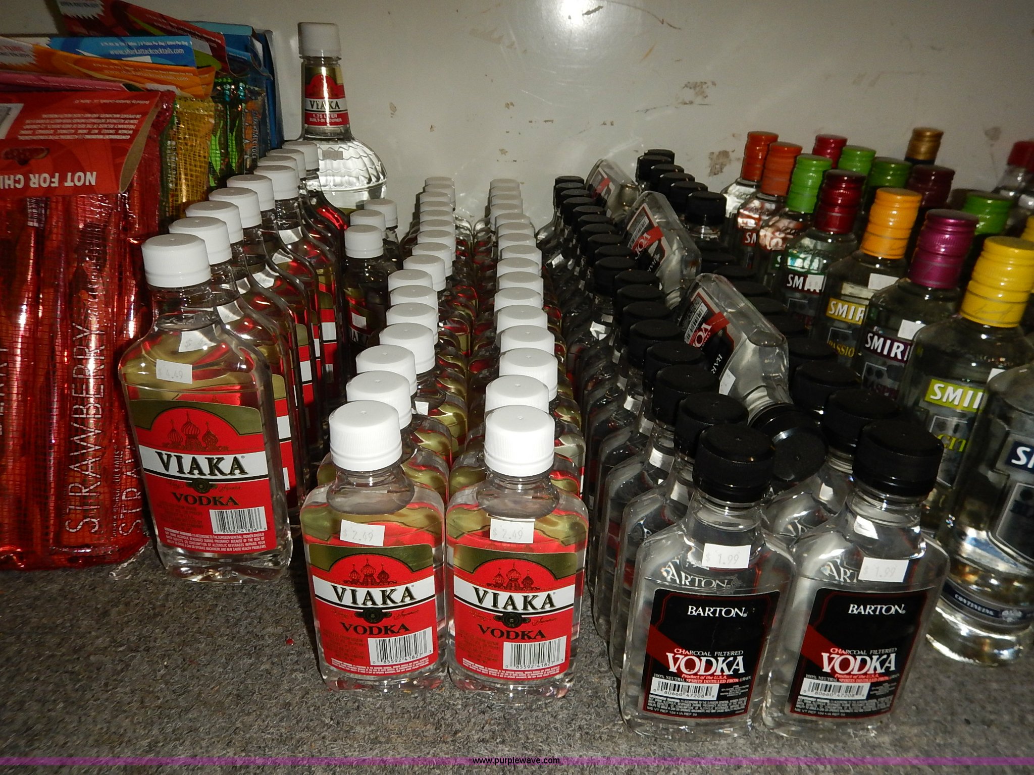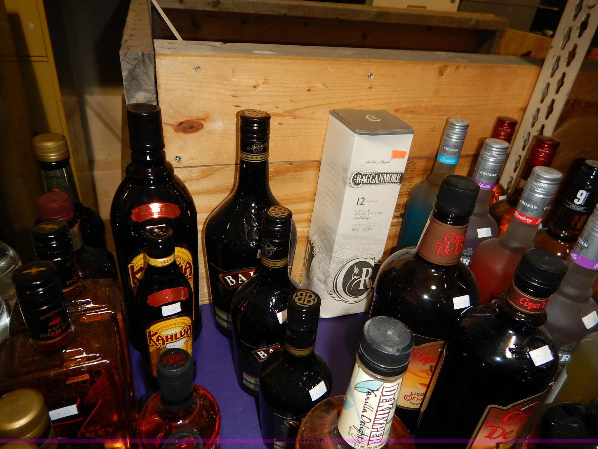 Purple Wave is selling a used All Other Household Items in Kansas. This item is a Assorted alcohol with the following: (4) Makers Mark whiskey 50 ml, (2) Snake River Stampede Canadian whiskey 50 ml, Pendleton Canadian whiskey 50 ml, (2) Buffalo Trace Kentucky whiskey 50 ml, (9) Chivas Regal Scotch whiskey 50 ml, Most Wanted, (3) vodka 50 ml, (10) Pioneer whiskey 50 ml, (2) moonshine 50 ml, (8) various Shark Attack freeze tubes, Viaka vodka, 1.75 liter, (9) 375 ml, (35) 200 ml, Barton vodka, (6) 375 ml, (31) 200 ml, Smirnoff flavorded vodka, Strawberry 375 ml, Watermelon 375 ml, (2) orange 375 ml, (2) blueberry 375 ml, Passion fruit 375 ml, Raspberry 375 ml, (2) citrus 375 ml, (2) green apple 375 ml, Cherry 375 ml, Cranberry 375 ml, (2) lime 375 ml, (2) E&J brandy 375 ml, Montezuma tequila 200 ml, Martell V.S. fine cognac 200 ml, Martell V.S. fine cognac 375 ml, McCormick vodka, (11) original 375 ml, (11) original 200 ml, (5) 100 proof 375 ml, (3) 100 proof 200 ml, (2) Blue label 200 ml, Smirnoff flavored vodka, Black cherry 200 ml, (5) vanilla 200 ml, (6) McCormick Special Reserve American whiskey 200 ml, Most Wanted vodka, (14) 375 ml, (8) 200 ml, (2) Most Wanted gin 375 ml, (2) Most Wanted tequila 375 ml, (2) New Amsterdam vodka 375 ml, (2) Hennessy Very Special cognac 200 ml, Bartenders Bananna 200 ml, Ice 101 peppermint schnapps 375 ml, Calico Jack cherry rum 750 ml, Admiral Nelsons spiced rum, 750 ml, (2) 200 ml, Dekuyper flavored schnapps, Hot cinnamon 375 ml, (3) peachtree 200 ml, Buttershots 200 ml, (3) hot cinnamon 200 ml, (4) Canadian Mist whiskey 200 ml, Dekuyper Creme de Cocoa 750 ml, Dekuyper spearmint schnapps, 750 ml, (2) 1 liter, Kamora Coffee liqueur, (5) 375 ml, (2) 750 ml, (2) 1.75 liter, Lieutenant Dan spiced rum, (4) 1.75 liter, (8) 750 ml, (10) Zing Zang bloody mary mix 946 ml, Rumple Minze pepermint schnapps, 375 ml, 750 ml, (7) Barton vodka 1.75 liter, Master of mixers, Sweet-n-sour 1 liter, Margarita 1 liter, Strawberry 1 liter, Sweet-n-sour 1.75 liter, Margarita 1.75 liter, Gozio Amaretto 750 ml, Licor 43 Cuarenta Y Tres 750 ml, McCormick vodka, (3) original 1.75 liter, (6) original 750 ml, (2) 100 proof 750 ml, Lairds Apple Jack brandy, (2) 375 ml, (2) 750 ml, Hirm Walker peppermint schnapps, (6) 750 ml, (5) 375 ml, (3) 200 ml, Disaronno Italian liquer, (2) 200 ml, 375 ml, (2) Wild Turkey American Honey whiskey 375 ml, Cruzan rum, (3) 9 spiced 750 ml, (2) 151 proof 750 ml, (2) coconut 750 ml, Bananna 750 ml, (2) vanilla 750 ml, Strawberry 750 ml, Ice 101 peppermint schnapps 750 ml, Cafe Boheme vanilla creme coffee vodka 750 ml, Carolans Irish cream 750 ml, Copa De Oro coffee liqueur, 750 ml, (2) 1 liter, 1.75 liter, Cragganmore Single Speyside malt 750 ml, Baileys Original Irish Cream, 375 ml, 750 ml, 1 liter, Dekuyper Vanilla Delight liqueur, 750 ml, 1 liter, Alize Wild Passion French cognac 750 ml, Saint Brendans Irish creme whiskey 375 ml, (4) Pendleton Canadian whiskey 375 ml, Kahlua rum, 375 ml, 1.75 liter, Seagrams whiskey, (2) V.O. Canadian 200 ml, (3) 7 American 200 ml, (2) V.O. Canadian 375 ml, (5) 7 American 375 ml, (2) Dark Honey 750 ml, 7 American 750 ml, V.O. Canadian 750 ml, Jose Cuervo Especial Gold tequila 200 ml, El Jimador Reposado tequila, (2) 200 ml, (2) 375 ml, Bombay Sapphire London dry gin, (2) 375 ml, 750 ml, 1 liter, Crown Royal whiskey, (2) 4.75 liter with box, (2) 1 liter with box, (4) 750 ml with box, (3) 375 ml with pouch, (5) 200 ml, Meletti Limoncello liqueur 750 ml, The Kraken black spiced rum 1.75 liter, (2) Bacardi Puerto Rican rum 1.75 liter, Norther Lights Canadian whiskey, 750 ml, 375 ml, (7) 200 ml, Romana black liquer 750 ml, Amarula cream liqueur 750 ml, (2) Beef Eater London dry gin 750 ml, Rum Chata, (2) 750 ml, (6) 375 ml, Mele Hi Italian liqueur, Cioccolate 750 ml, (2) Sambuca 750 ml, Hiram Walker flavored brandy, Sambuca 750 ml, (2) Original 750 ml, (3) cherry 375 ml, Blackberry 375 ml, Peach 375 ml, (2) apricot 375 ml, Southern Comfort, (3) 200 ml, (2) 375 ml, Sailor Jerry spiced rum, (2) 200 ml, (2) 375 ml, Lord Calvert Canadian whiskey, (4) 200 ml, (3) 375 ml, Christian Brothers V.S. brandy, (4) 200 ml, (4) 375 ml, Jagermeister German liqueur, 1 liter, 750 ml, (2) 375 ml, (11) 200 ml, (11) Knickers Irish cream 750 ml, Sobieski vodka, (5) 200 ml, (4) 375 ml, Fleischmanns extra dry gin, (6) 200 ml, (12) 375 ml, McCormick Special Reserve whiskey, 750 ml, (6) 7.75 liter