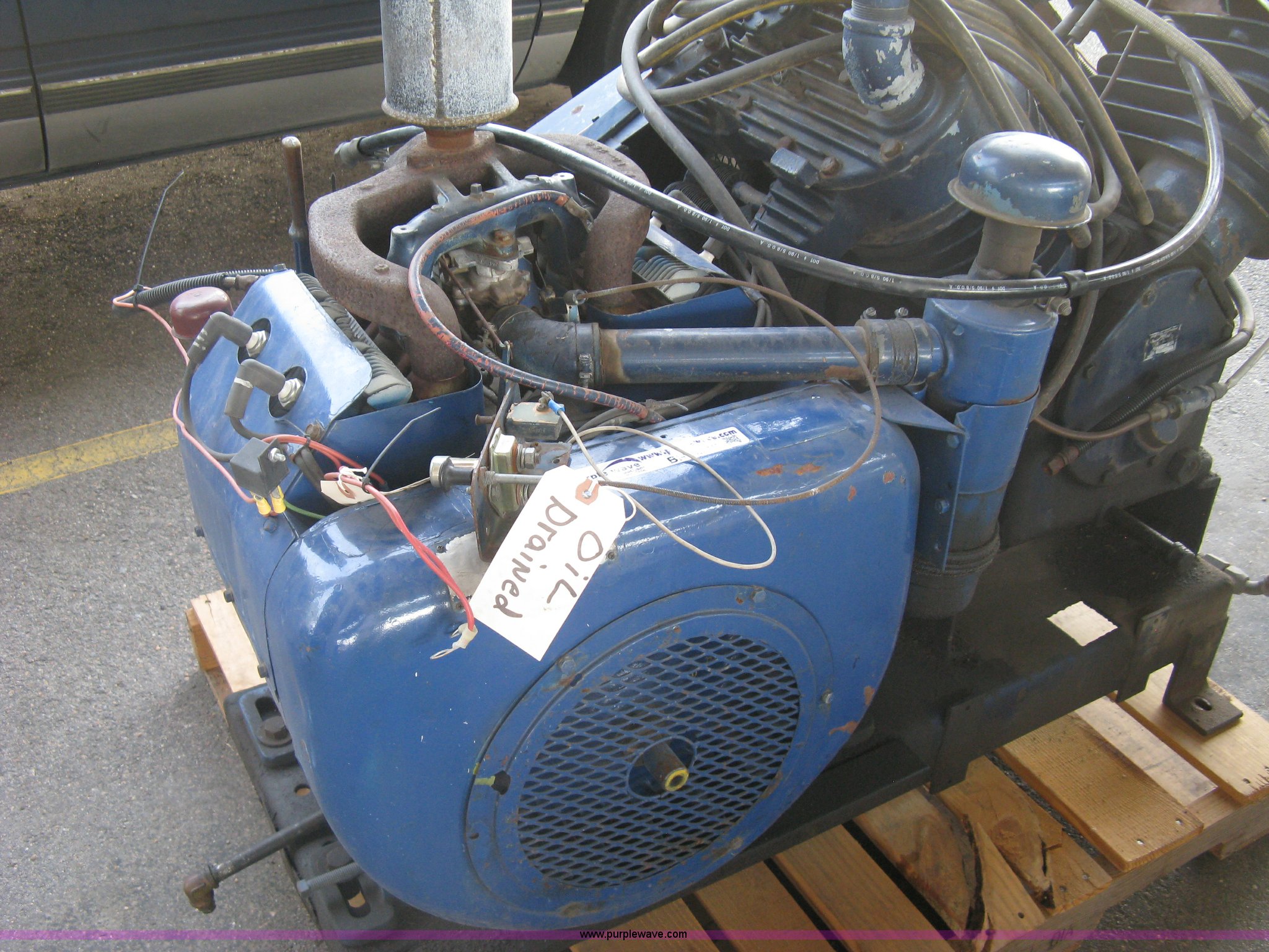 Purple Wave is selling a used Air Compressor in Kansas. This item is a Kellogg American air compressor with the following: Four cylinder gas engine, Four cylinder compressor, 30 HP, Non-operational unit, Serial 7897