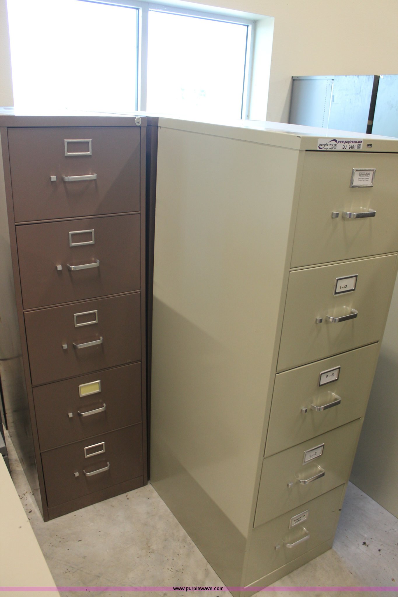 Purple Wave is selling a used Office Supplies and Equip. in Texas. This item is a Assorted five drawer metal filing cabinets with the following: 18" x 60"