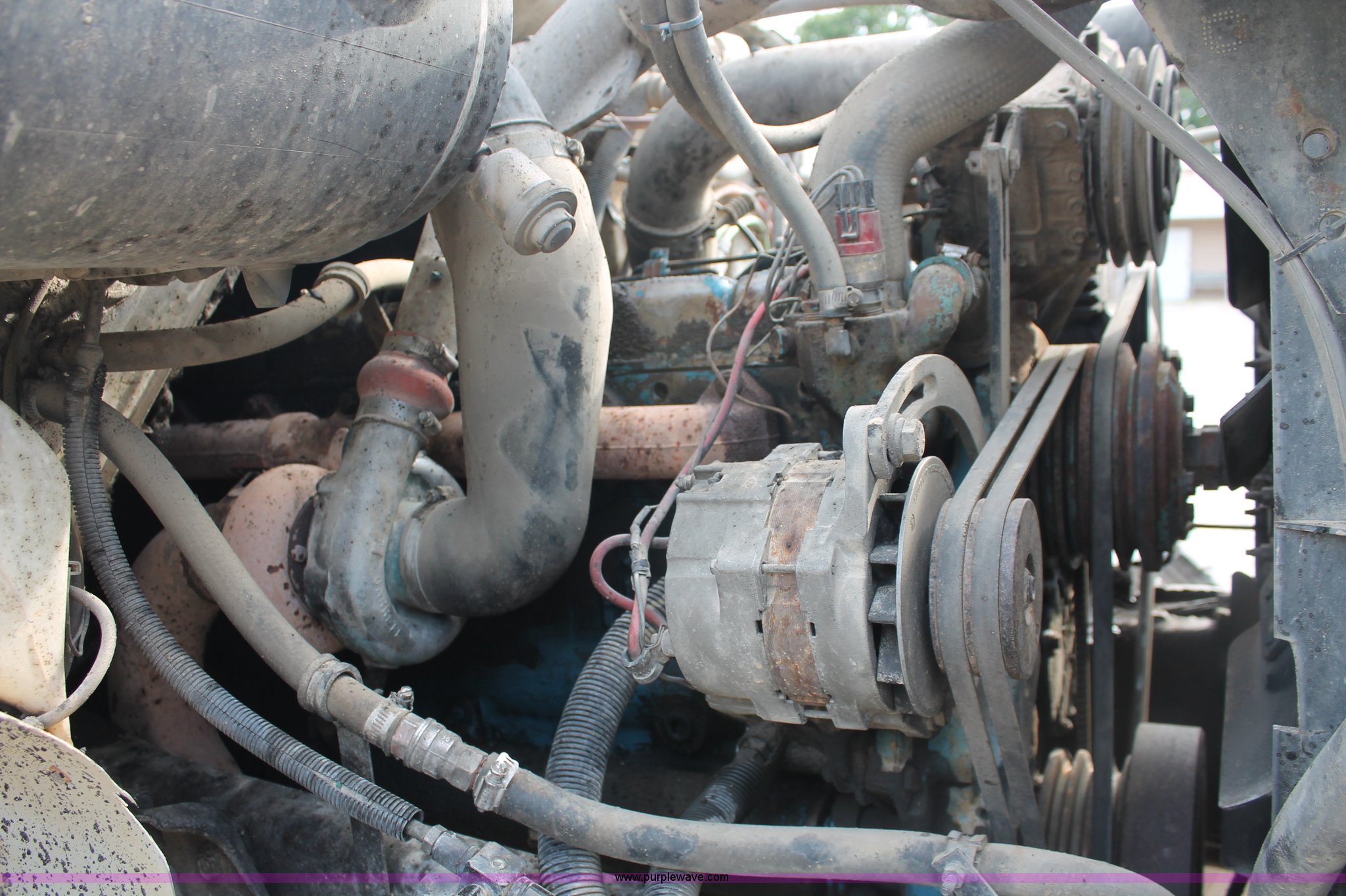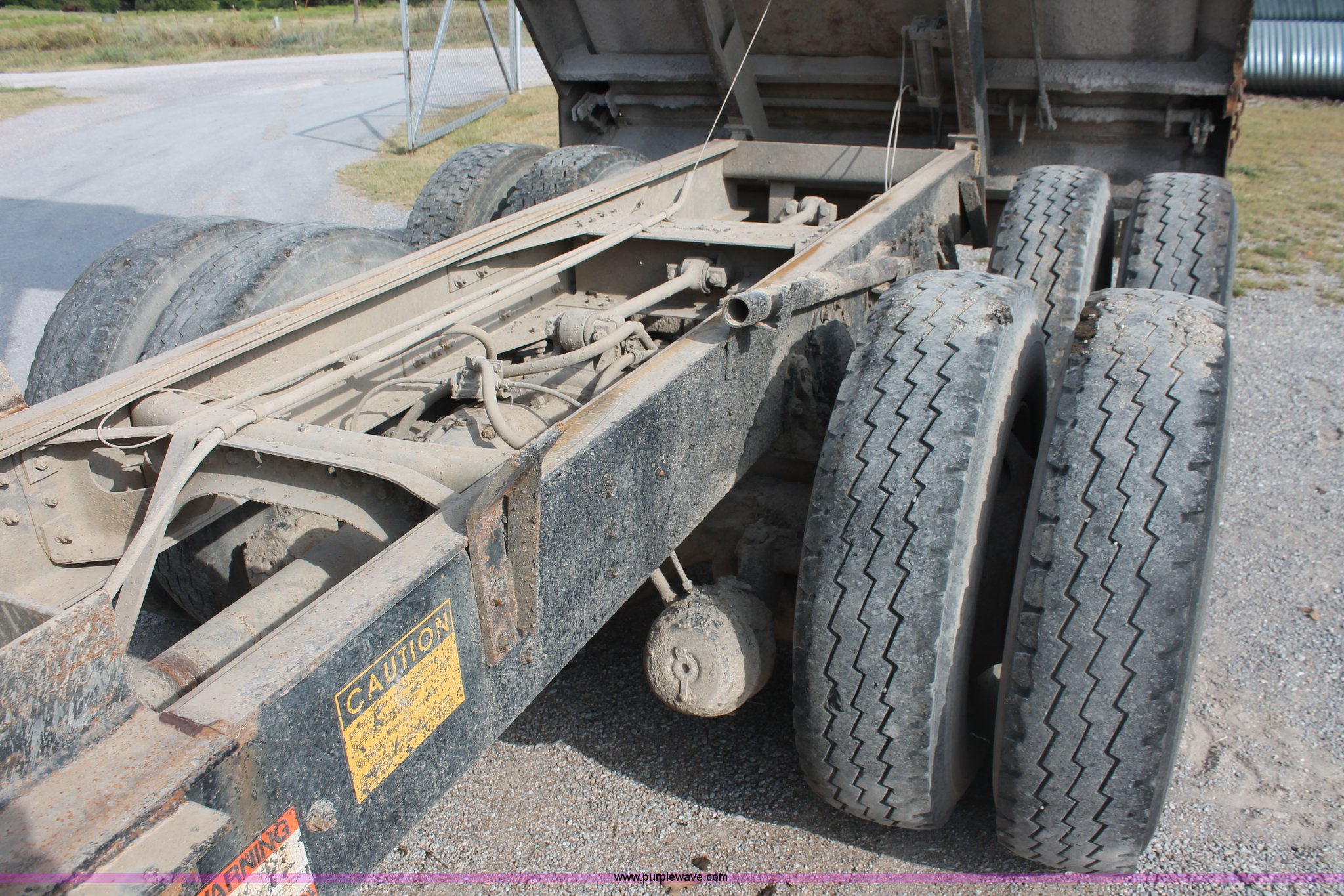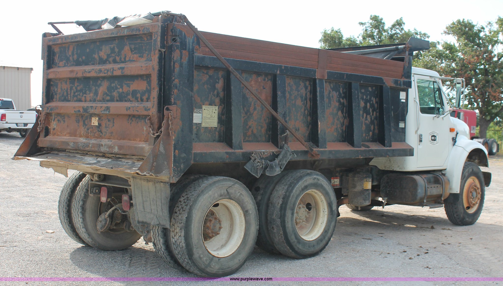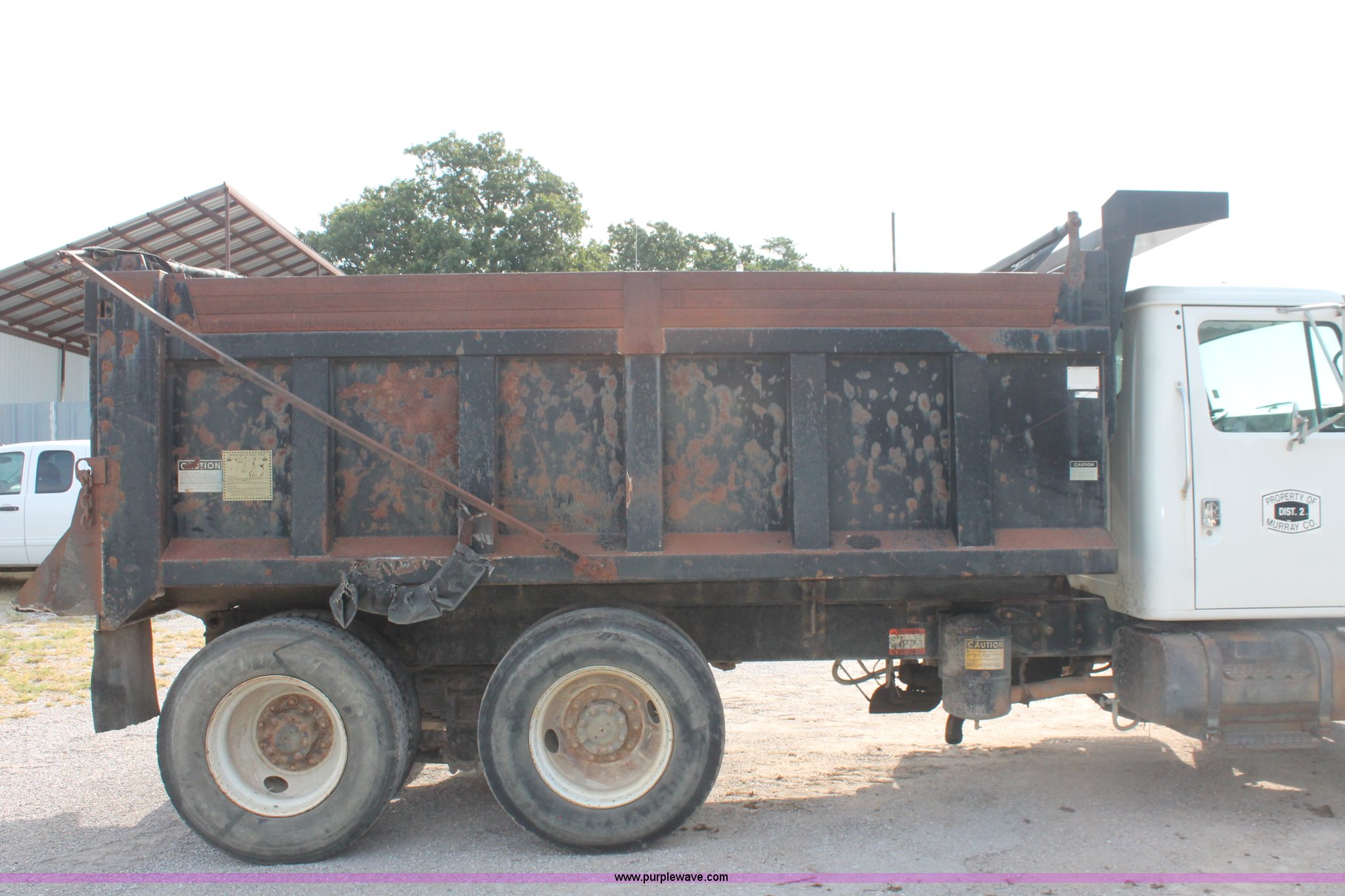 Purple Wave is selling a used Construction Dump Truck in Oklahoma. This item is a 1993 International 4900 dump truck with the following: 108,723 miles on odometer, International DT466 7.6L L6 turbo diesel engine, Eaton Fuller 10 speed speed manual transmission, Inter-axle differential lock, PTO, Galion 502F-2 steel dump bed, 14'L x 96"W, 30" side height, 10" side board height, 12 cubic yard capacity, Single ram hoist, Air operated end gate, Roll-over tarp, Dual fuel tanks, Tandem axle, 188" wheelbase, Camelback spring suspension, Air brakes, 11R22.5 tires, GVWR 52,000 lbs, FAWR 12,000 lbs, IAWR 20,000 lbs, RAWR 20,000 lbs, Tarp needs repair, Unit# D2-302-21