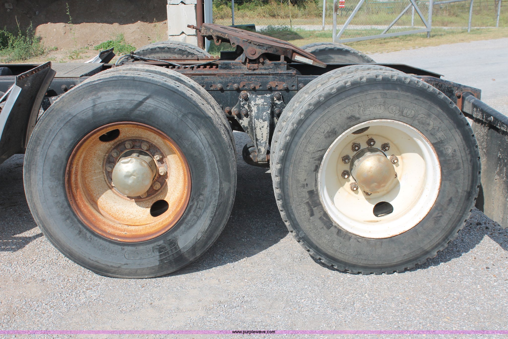 Purple Wave is selling a used Truck Tractor in Oklahoma. This item is a 1990 Freightliner FLA086 semi truck with the following: 646,778 miles on odometer, Caterpillar 3406 14.6L L6 turbo diesel engine, Eaton Fuller Road Ranger nine speed manual transmission, Inter-axle differential lock, AC and heat, Heated mirrors, Air suspension seat, 72" sleeper, Single bed, Ether start, Exterior visor, Single rear exhaust stack, Dual fuel tanks, Aluminum deck plate, Aluminum quarter fenders, Mud flaps, Tandem axle, Air suspension, Air brakes, 180" wheelbase, 11R24.5 tires, GVWR 52,000 lbs, FAWR 12,000 lbs, IAWR 20,000 lbs, RAWR 20,000 lbs, Glass cracked, Unit# D2-302-26