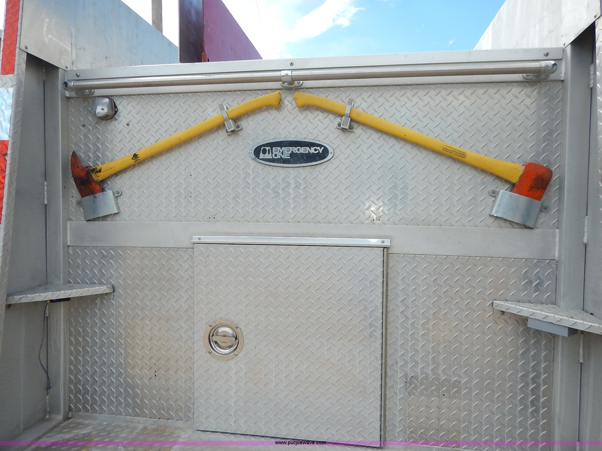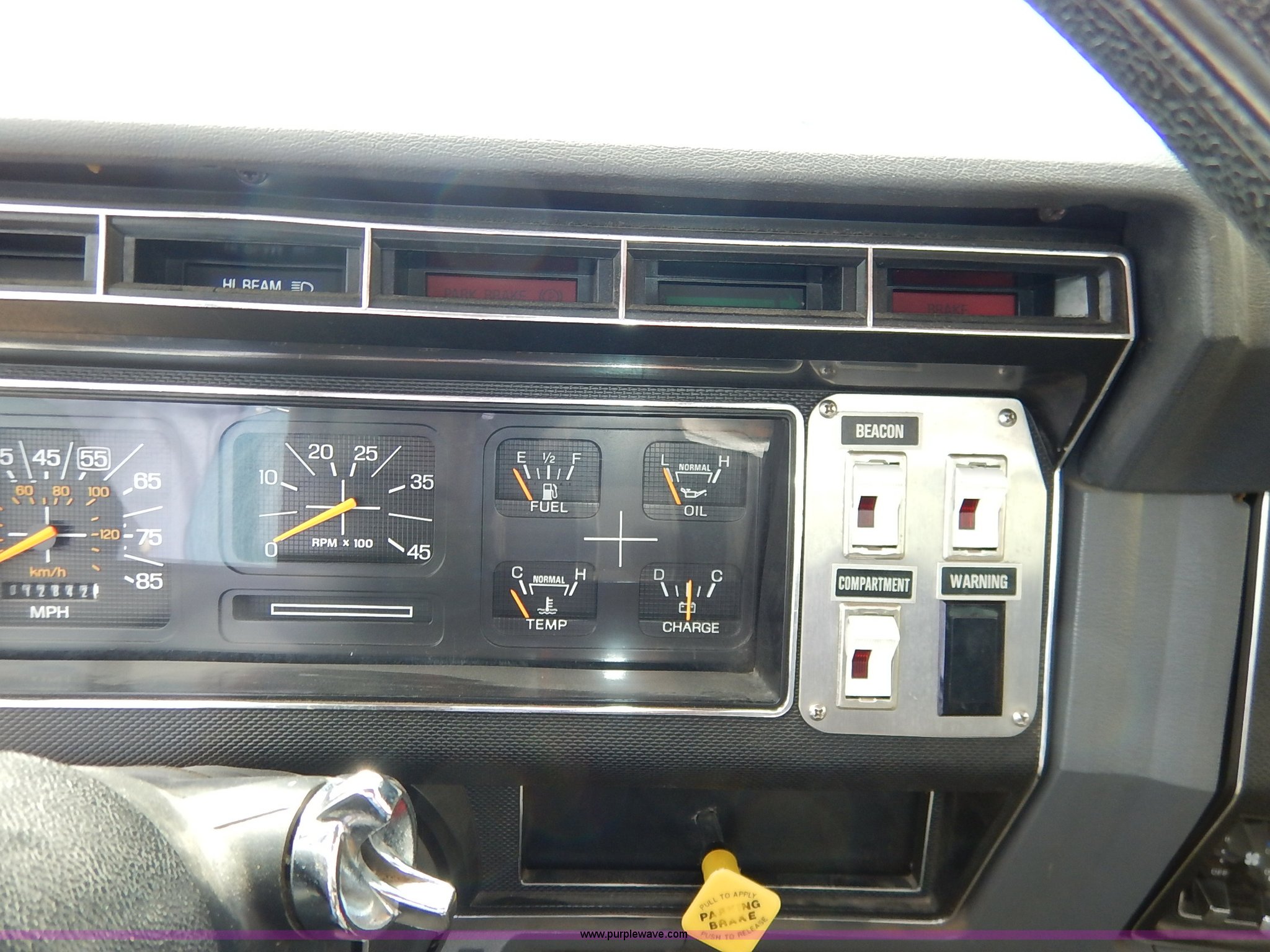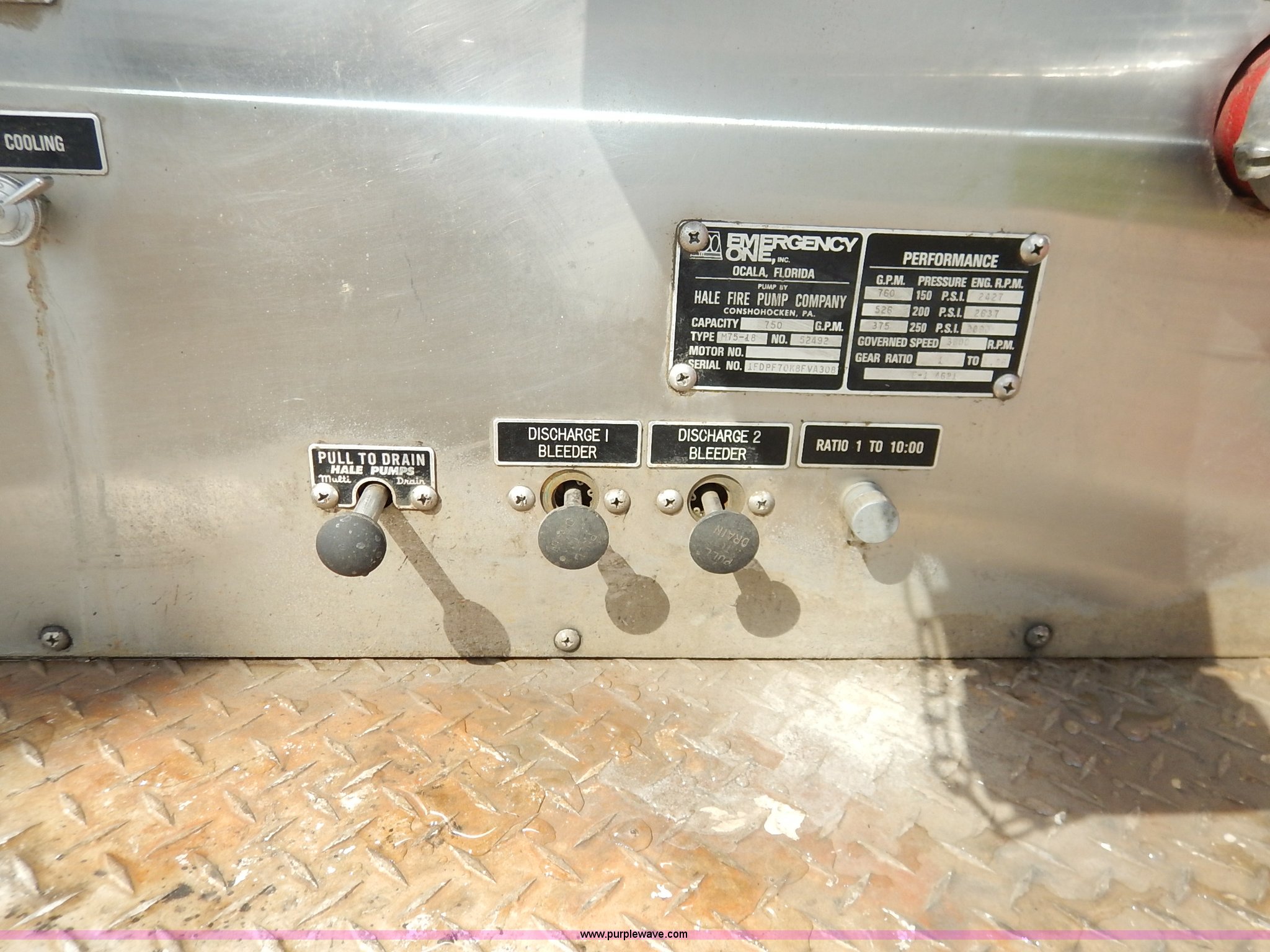Purple Wave is selling a used Fire Truck or Emergency Vehicle in Kansas. This item is a 1985 Ford F700 fire truck with the following: 12,842 miles on odometer, 7.0L V8 gas engine, Five speed manual transmission, Two speed rear end, Single axle, Heat, AM/FM, Vinyl interior, Front tow hooks, Light bar, Southern VP SA-400 control unit, E-One body, Driver side high side, Officer low side, (2) 10' 5" suction hoses, Hale 750 gpm pump, Tested in October 2014, 750 gallon fiberglass tank, Driver side pump panel, (3) 2.5" discharges, No. 1 and 2 on driver's side, No. 3 on officer side, 1.5" cross lay, 24' aluminum extension ladder, 14" aluminum roof ladder, 10' pike pole, Pike and flat axes, Kochek 5" low level strainer, Task Force 5" ball intake valve with 4" Storz, Spring suspension, Hydraulic brakes, 172" wheelbase, 10.00R20 tires, GVWR 28,000 lbs, FAWR 9,000 lbs, RAWR 19,000 lbs, Fire apparatus inspection completed in October 2014, View pump and inspection report, Robwen foam proportioner inoperable, Decals will be painted over prior to auction, Dents, Scratches