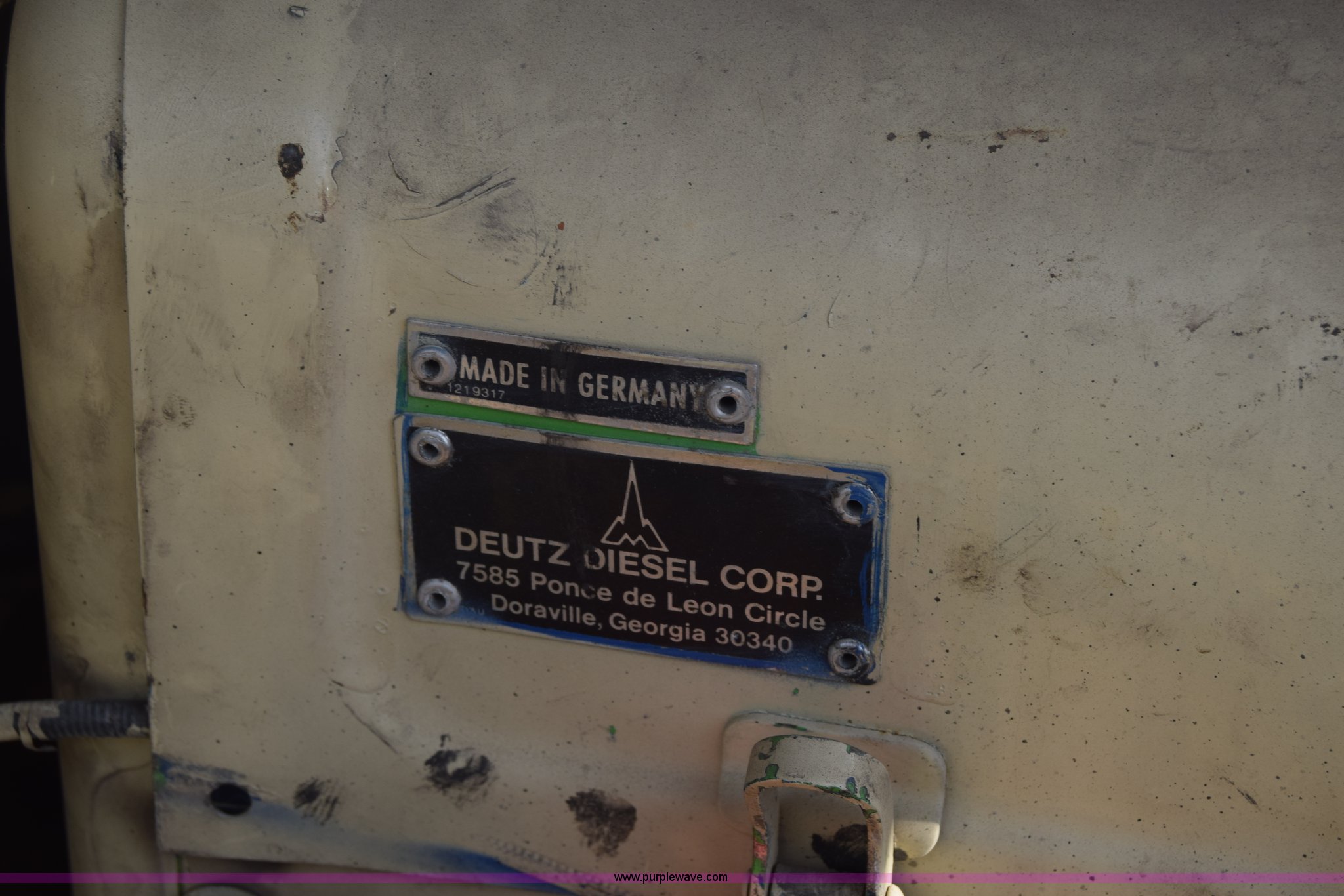 Purple Wave is selling a used Air Compressor in Kansas. This item is a Ingersoll Rand 175 air compressor with the following: 1,999 hours on meter, Deutz F3L912HD three cylinder diesel engine, 2,500 RPM, 12'L x 6'3"W x 4'11"H, 175 cfm, Spring suspension, Pintle hitch, 225/75R15 tires, 2,784 lbs