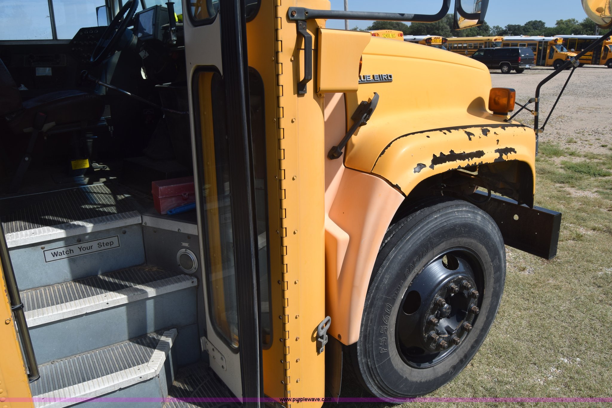 Purple Wave is selling a used Bus in Kansas. This item is a 1995 Chevrolet Bluebird school bus with the following: 191,343 miles on odometer, Caterpillar 3116 6.6L L6 diesel engine, Five speed manual transmission, Heat, Vinyl interior, 56 passenger capacity, Side emergency egress door, 10R22.5 tires, Body No. M70487, CB radio not included, Seats torn, Paint peeling