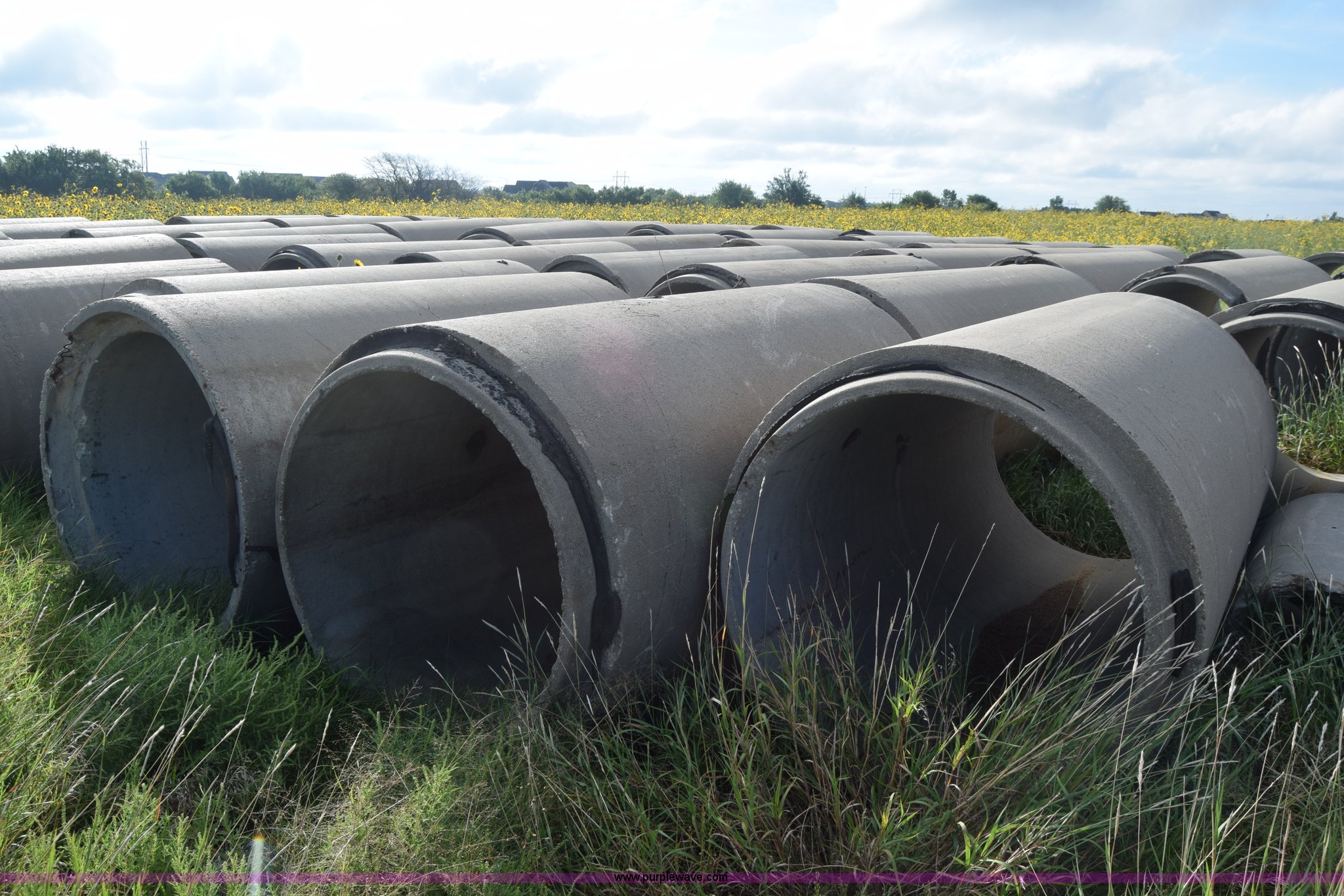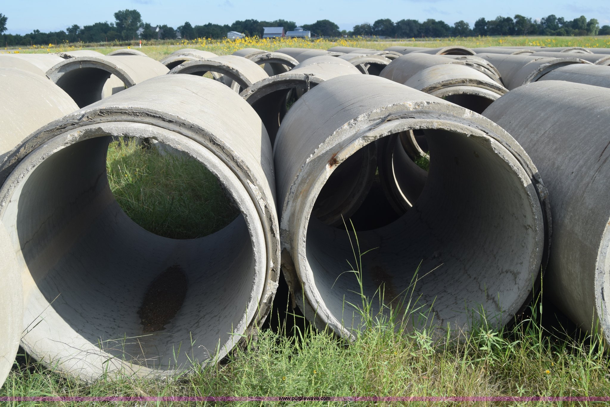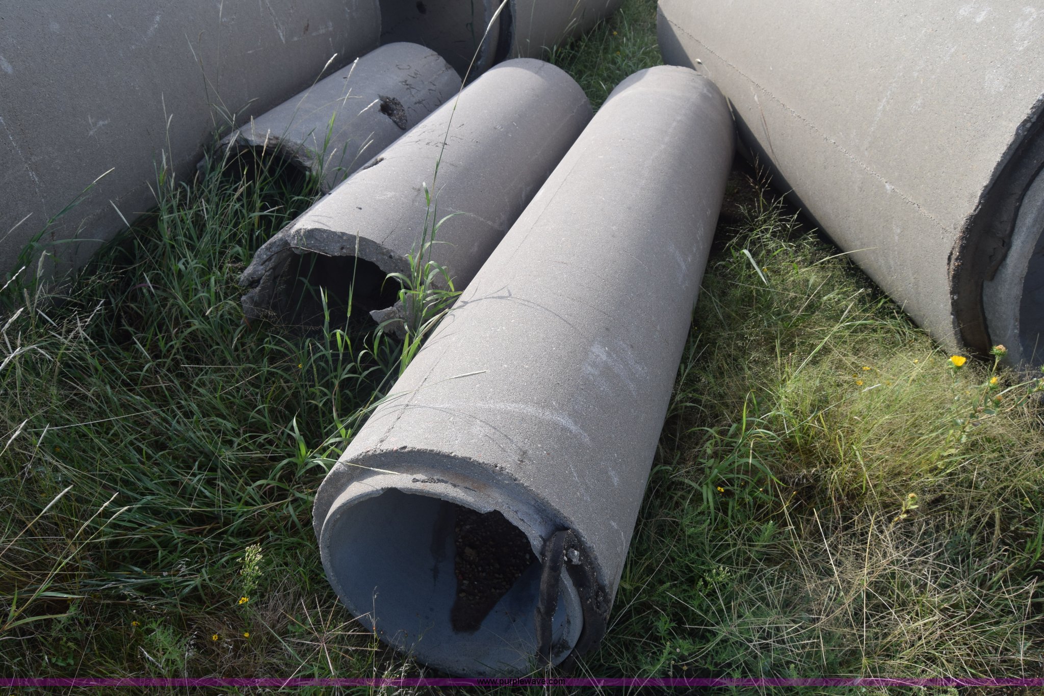 Purple Wave is selling a used Pipe in Kansas. This item is a Concrete culverts with the following: (66) 8'L x 4' diameter, 8'L x 2' diameter, 68"L x 2' diameter, 4'L x 2' diameter