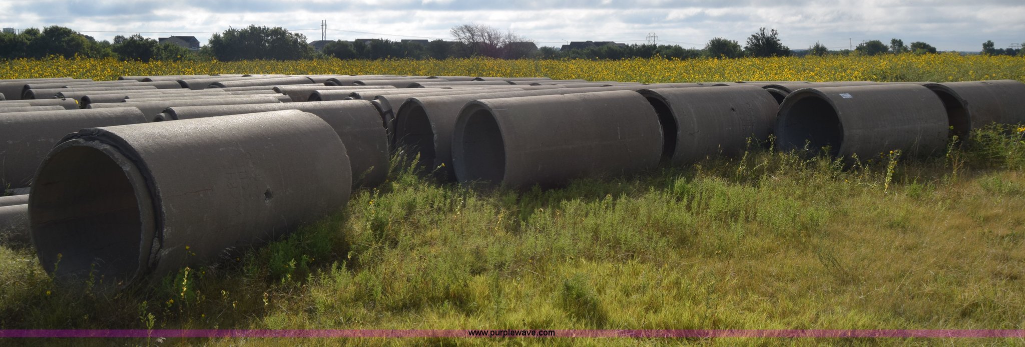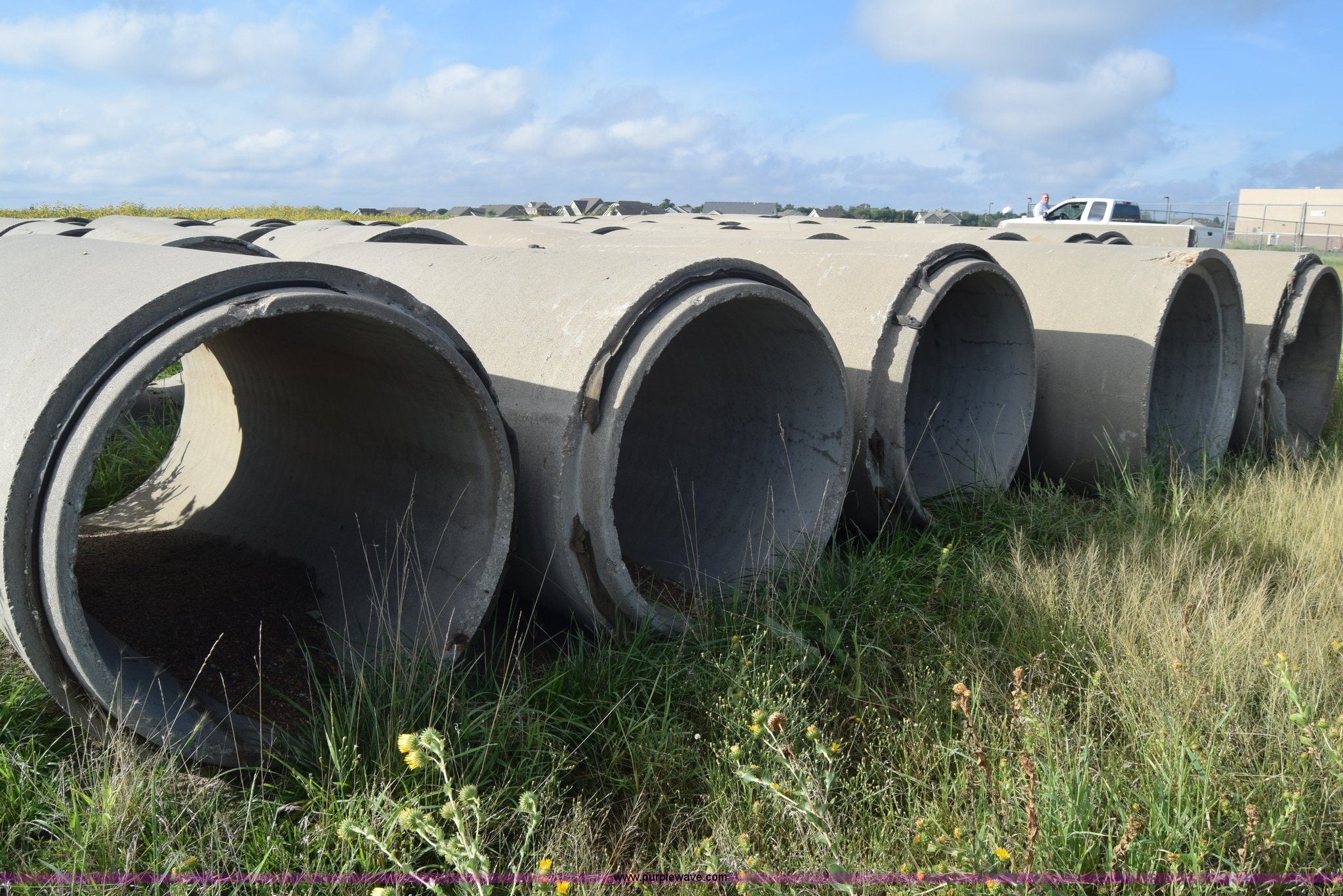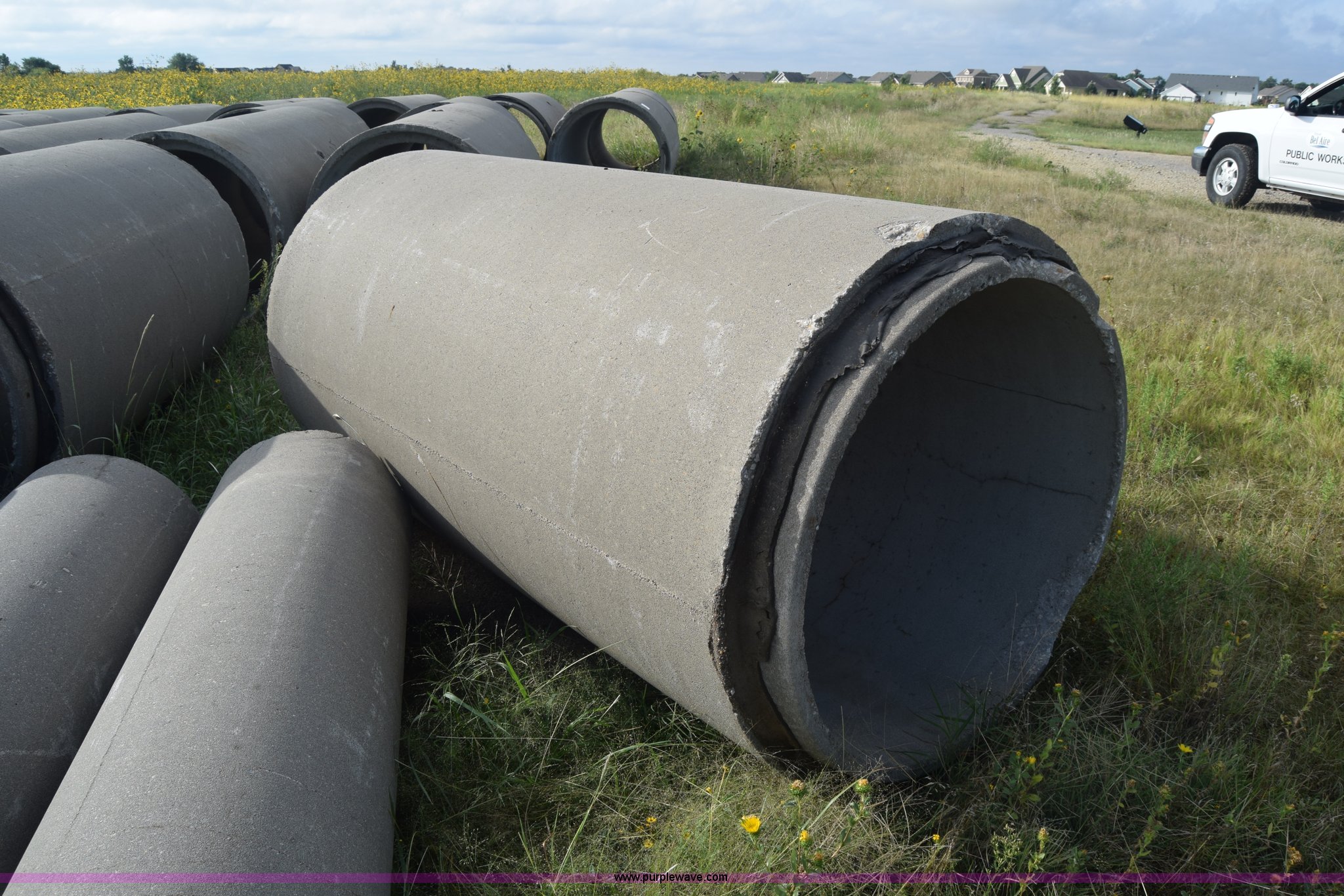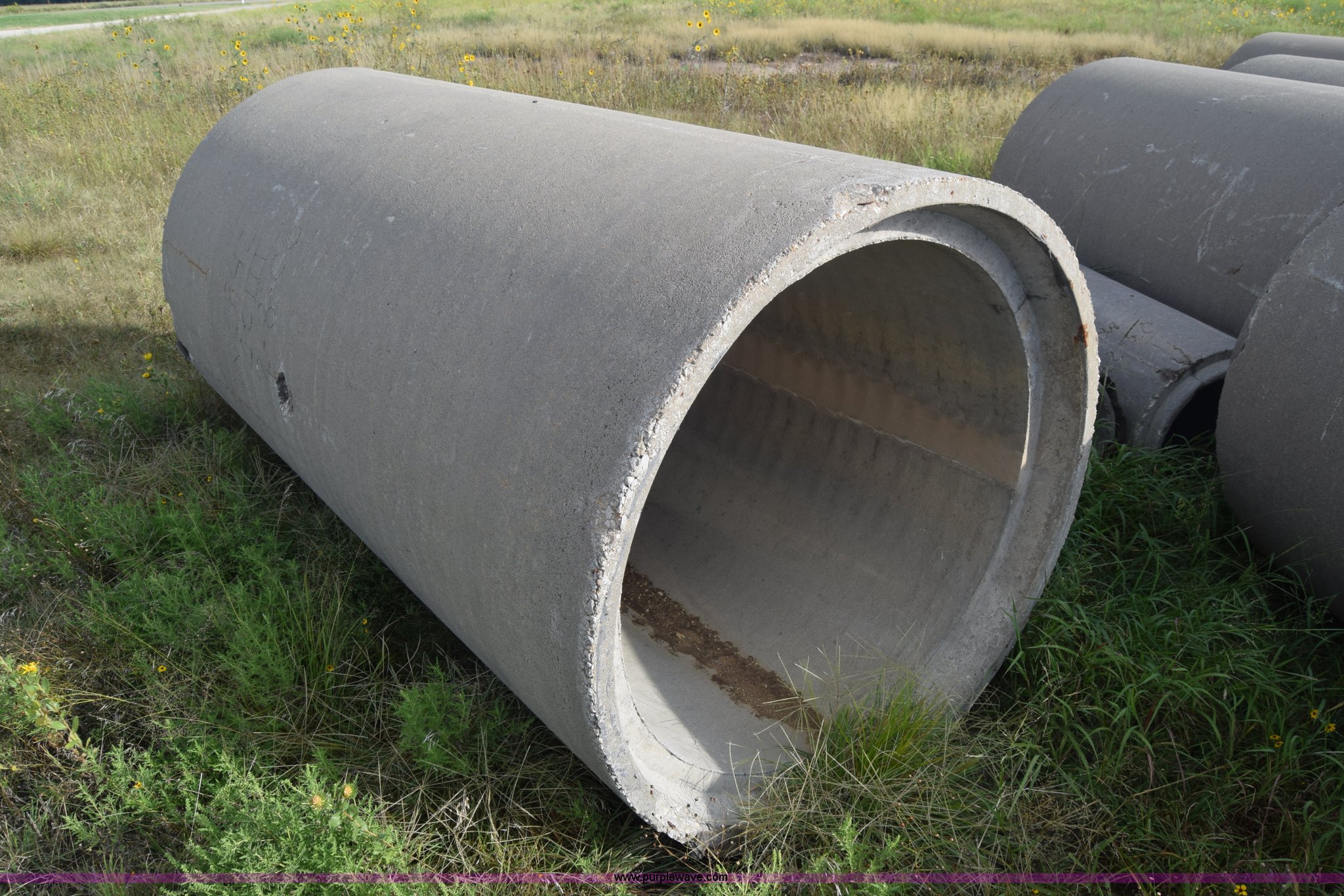 Purple Wave is selling a used Pipe in Kansas. This item is a Concrete culverts with the following: (66) 8'L x 4' diameter, 8'L x 2' diameter, 68"L x 2' diameter, 4'L x 2' diameter