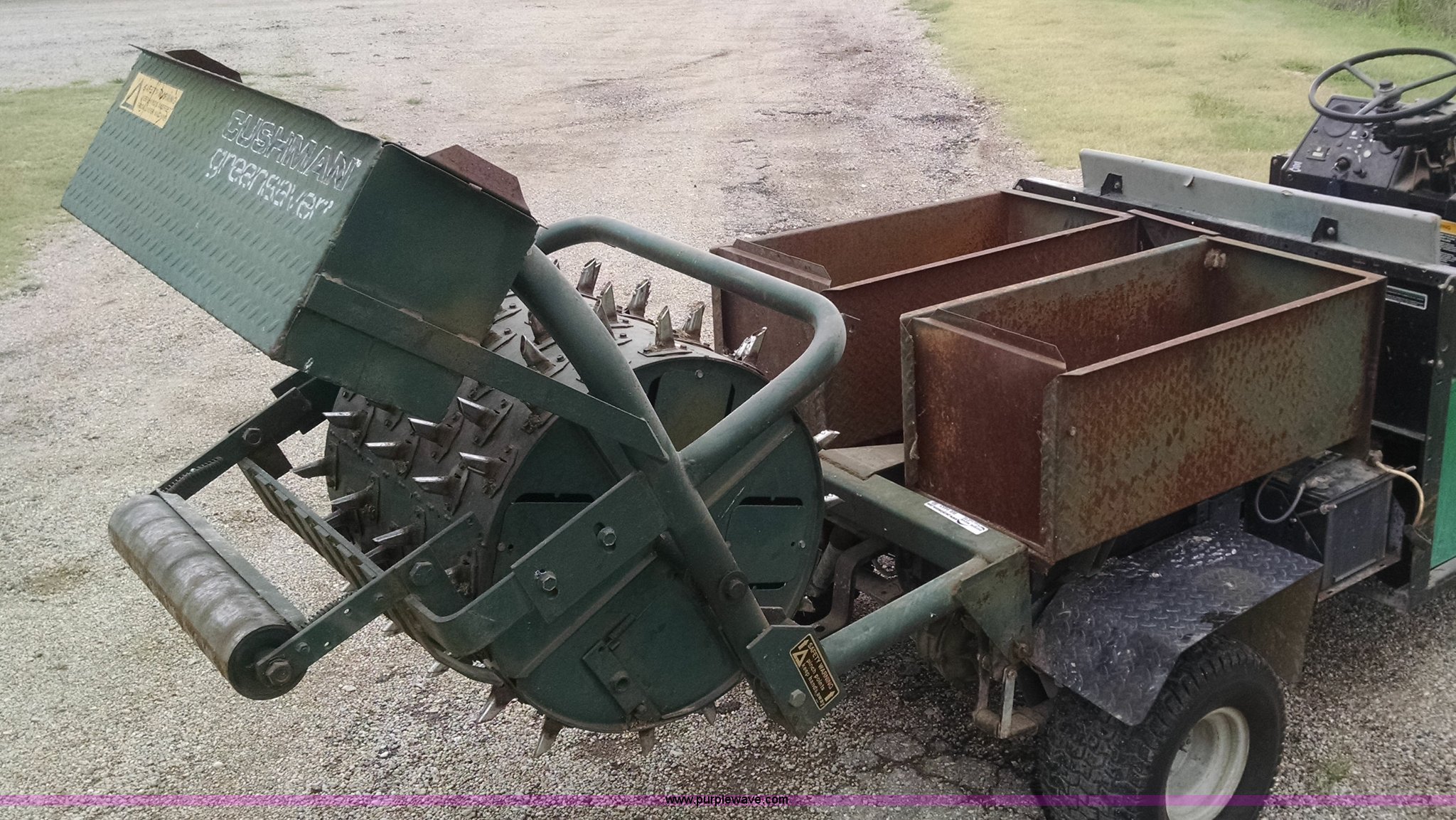 Purple Wave is selling a used Utility Vehicle in Kansas. This item is a Turf aerator with the following: Side mounted toolboxes, Previously used with Cushman Jr Turf-Truckster utility vehicle