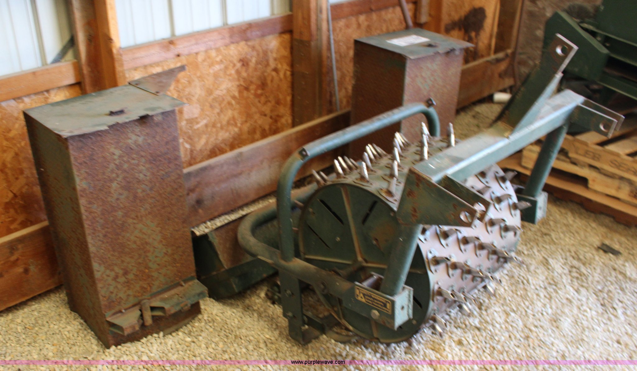 Turf aerator. Side mounted toolboxes, Previously used with Cushman Jr Turf-Truckster utility vehicle. City of Chapman. Chapman, KS 67431