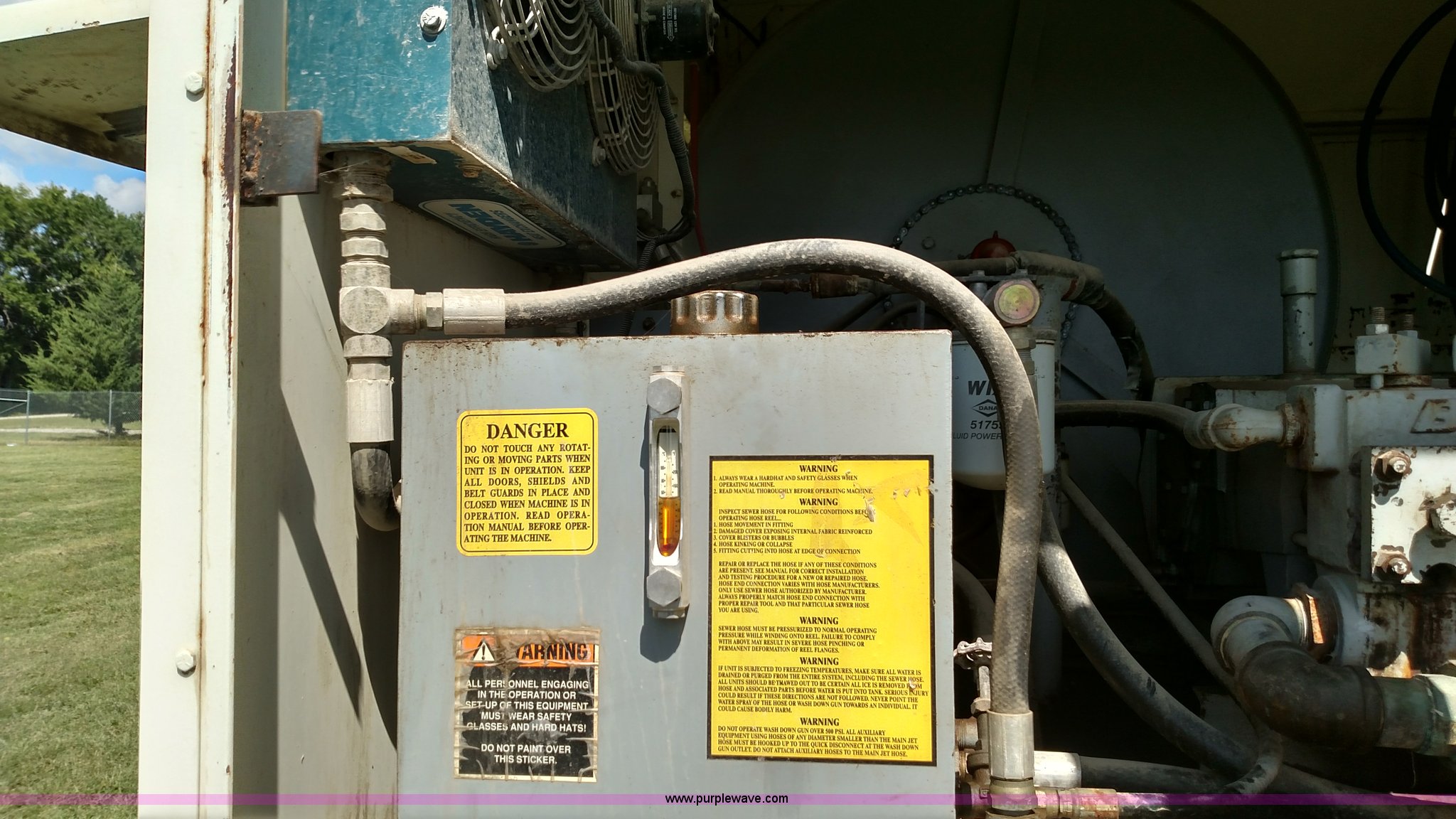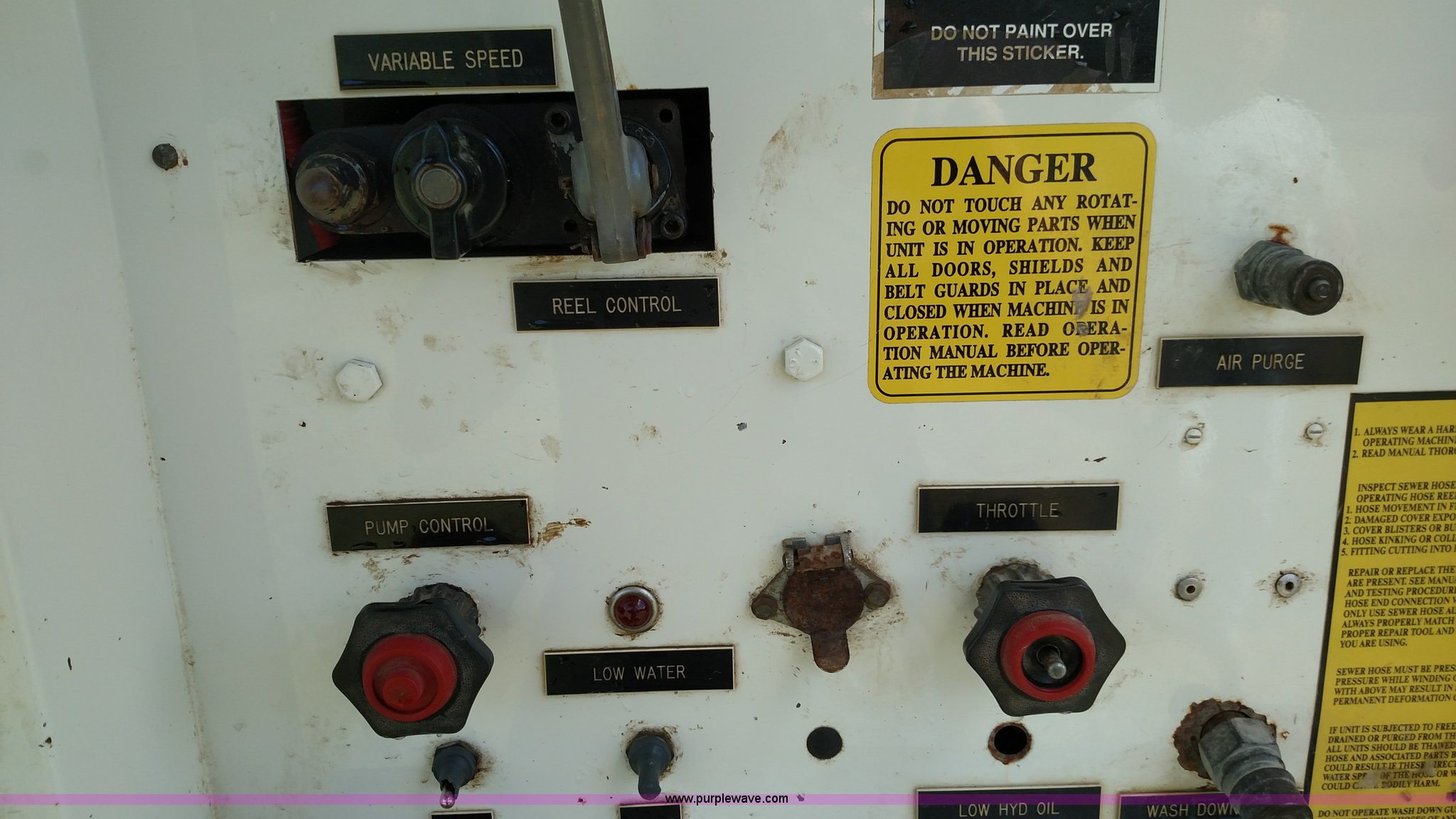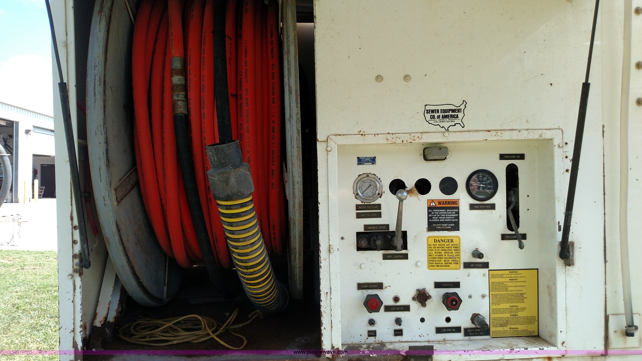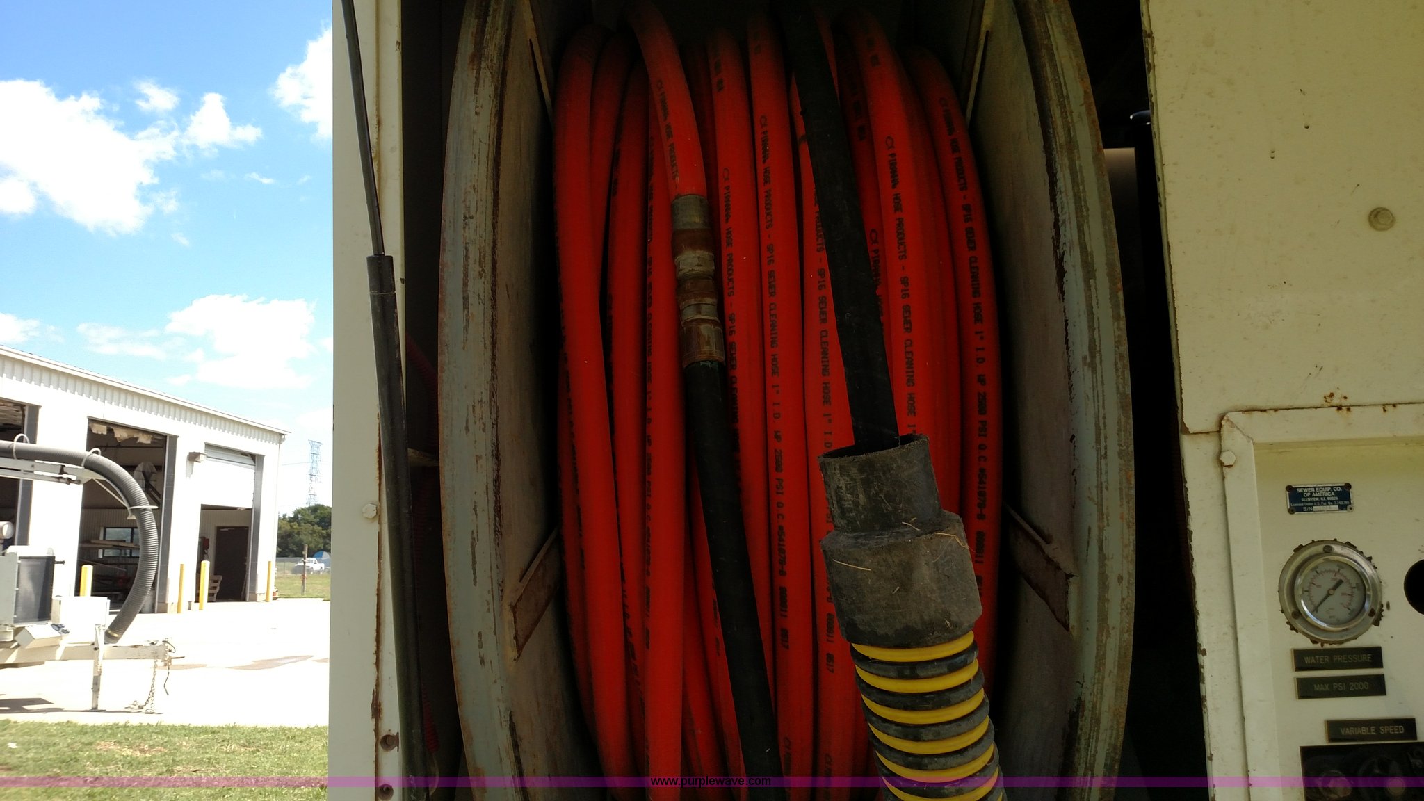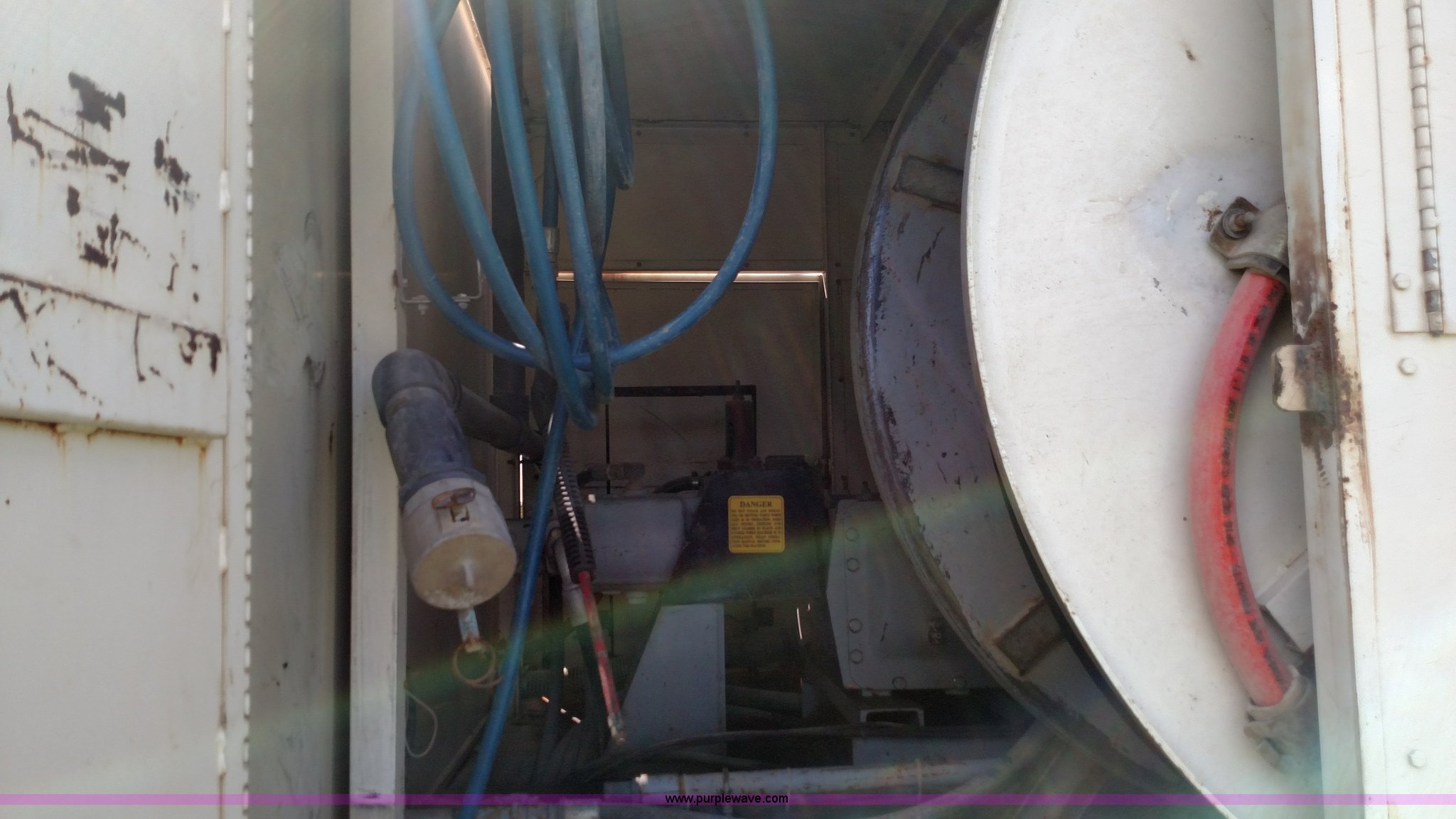 Purple Wave is selling a used Vacuum Truck in Kansas. This item is a 1995 Ford F800 sewer rodder truck with the following: 47,622 miles on odometer, 3,195 hours on meter, Cummins ISC 5.9L L6 diesel engine, Automatic transmission, Manual windows and locks, Vinyl interior, Approximately 700'L sewer hose, 1" diameter, Bean pump, 65 gallon per minute at 2,000 psi capacity, 1,500 gallon water tank, GAWR 31,300 lbs, Rebuilt transmission and PTO
