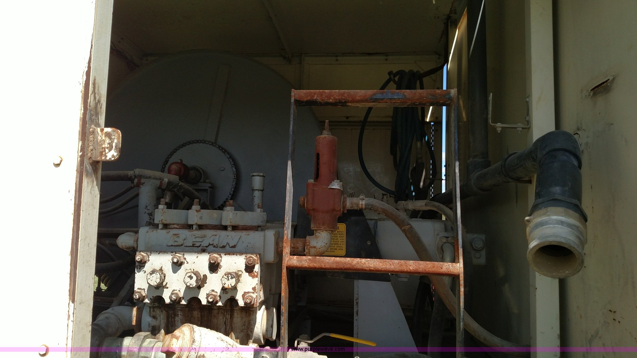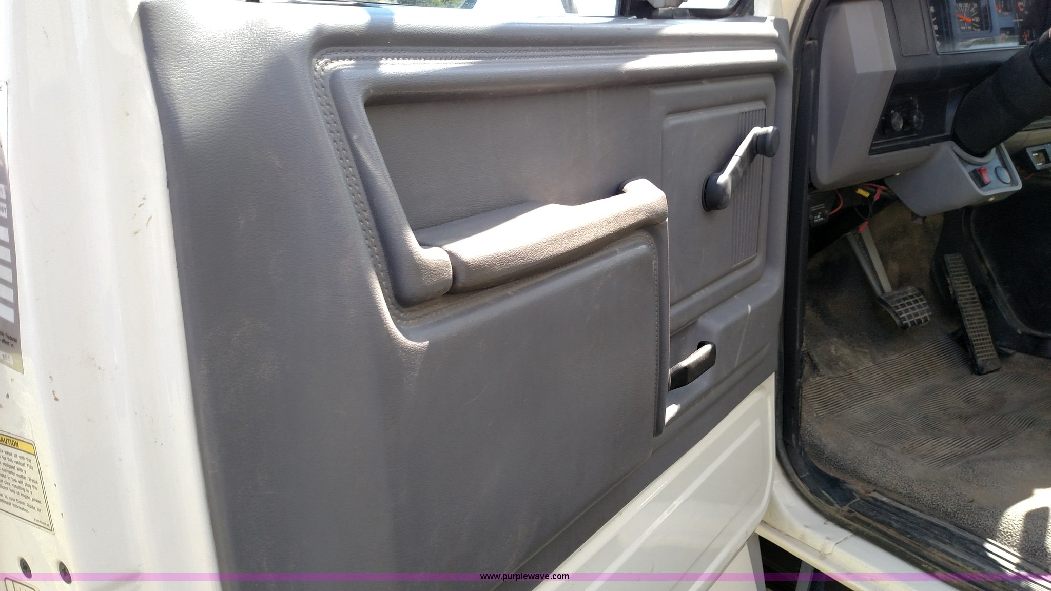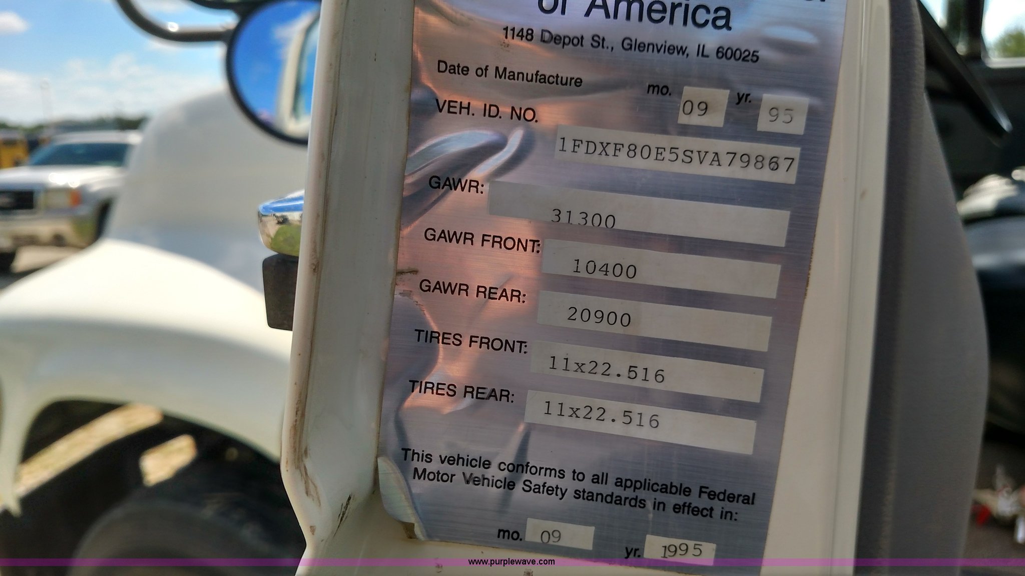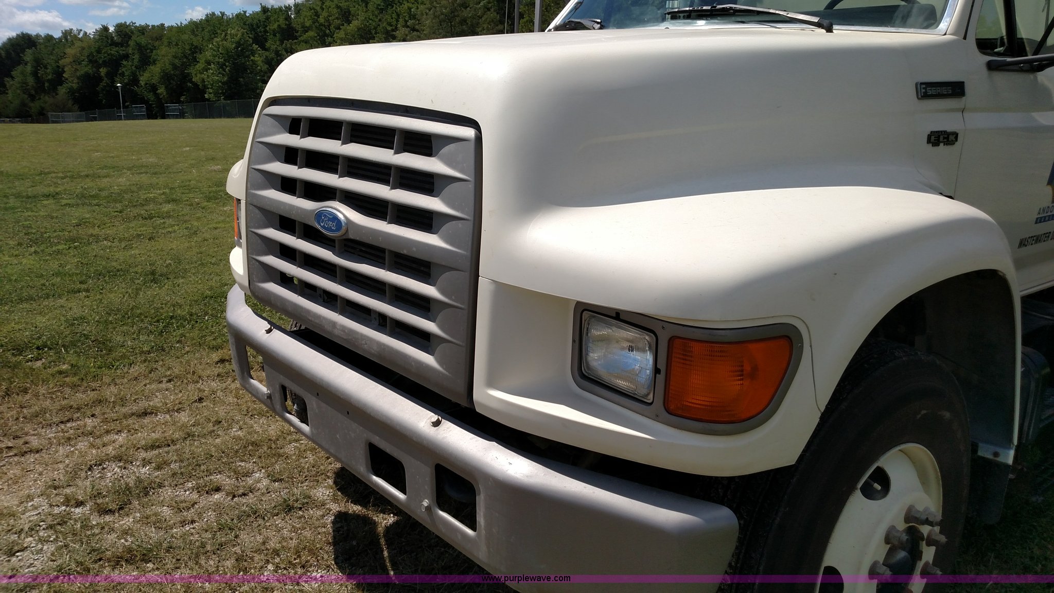 Purple Wave is selling a used Vacuum Truck in Kansas. This item is a 1995 Ford F800 sewer rodder truck with the following: 47,622 miles on odometer, 3,195 hours on meter, Cummins ISC 5.9L L6 diesel engine, Automatic transmission, Manual windows and locks, Vinyl interior, Approximately 700'L sewer hose, 1" diameter, Bean pump, 65 gallon per minute at 2,000 psi capacity, 1,500 gallon water tank, GAWR 31,300 lbs, Rebuilt transmission and PTO